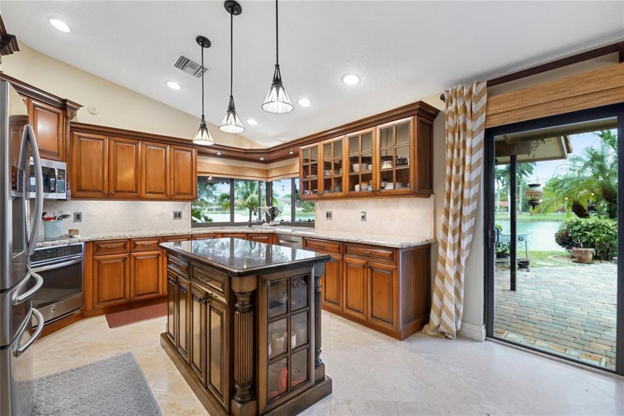 Exquisite 2-story lakefront pool home nestled on a serene cul-de-sac lot with stunning water and sunset views in highly sought-after Glen Oaks! This rare find boasts over 3,600 sqft under air, plenty of room to add a 5th BR if needed, marble floors, double-sided stone fireplace, high ceilings, custom kitchen, upgraded baths, impact windows & doors, washer & dryer & 2-car garage. Enormous primary ste encompassing the entire 2nd flr feat a private terrace overlooking the lake. Additional rooms include an open kitchen/family room and formal living/dining. Spectacular FENCED, tropical backyard with in-ground pool and lush foliage is serene & perfect for entertaining. Vivint home security system w/ electric keypad-coded front door lock & camera. Truly a gem near major highways, schools, etc ++