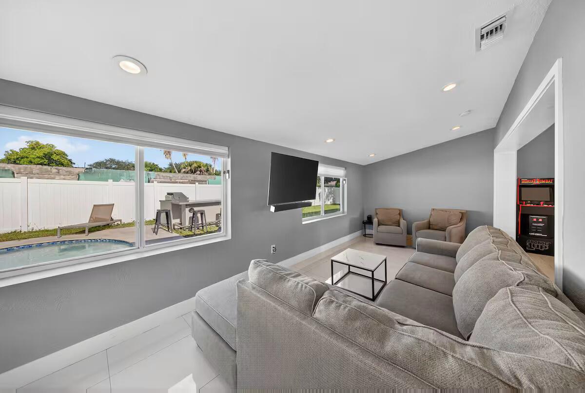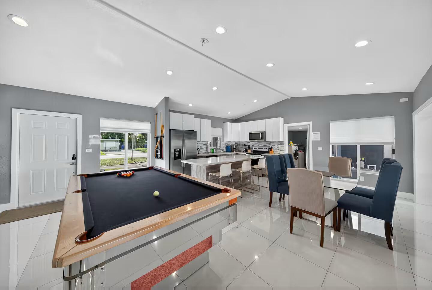 Discover this stunning one-story pool home retreat in the heart of Fort Lauderdale's desirable Lake Aire Palm View neighborhood. New Roof as 2024, and new Island! Perfect blend of vintage, charm and contemporary flair. Perfect for investors, already Airbnb Ready!! Newly updated, this bright and breezy 3 bed, 2 bath home spans generous 9,610 sq ft corner lot. Modern Italian-inspired kitchen featuring sleek quartz countertops, stainless-steel appliances, and an open layout that effortlessly flows into a spacious family rooms. Ideal for gatherings and entertaining. Resort-style backyard complete with a shimmering pool and spa, expansive patio, built-in BBQ and bar setup with your private paradise for relaxing under the Florida sun. All Furniture will be included! Yes the pool table is incl!
