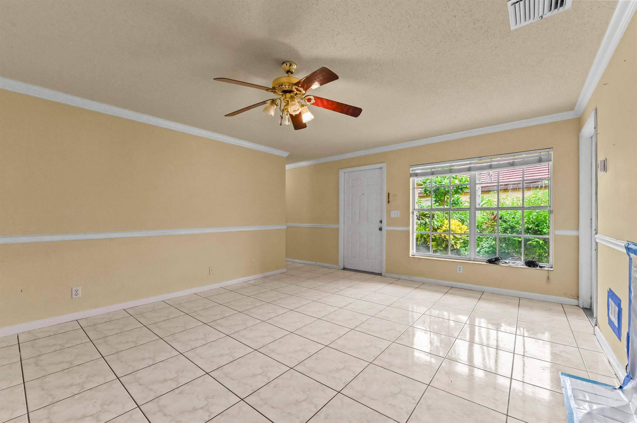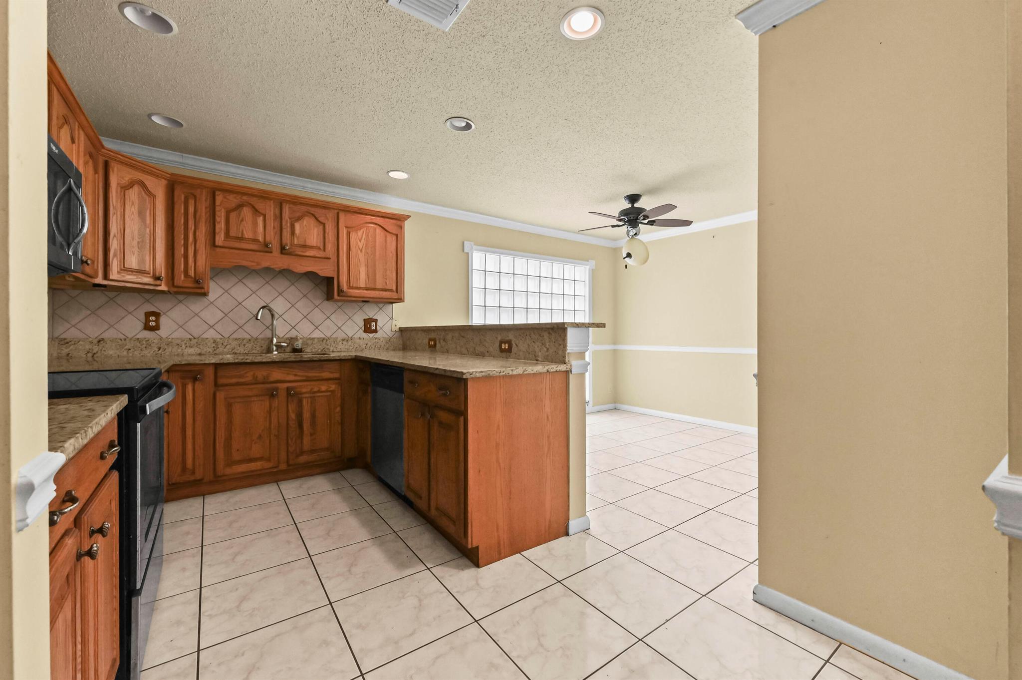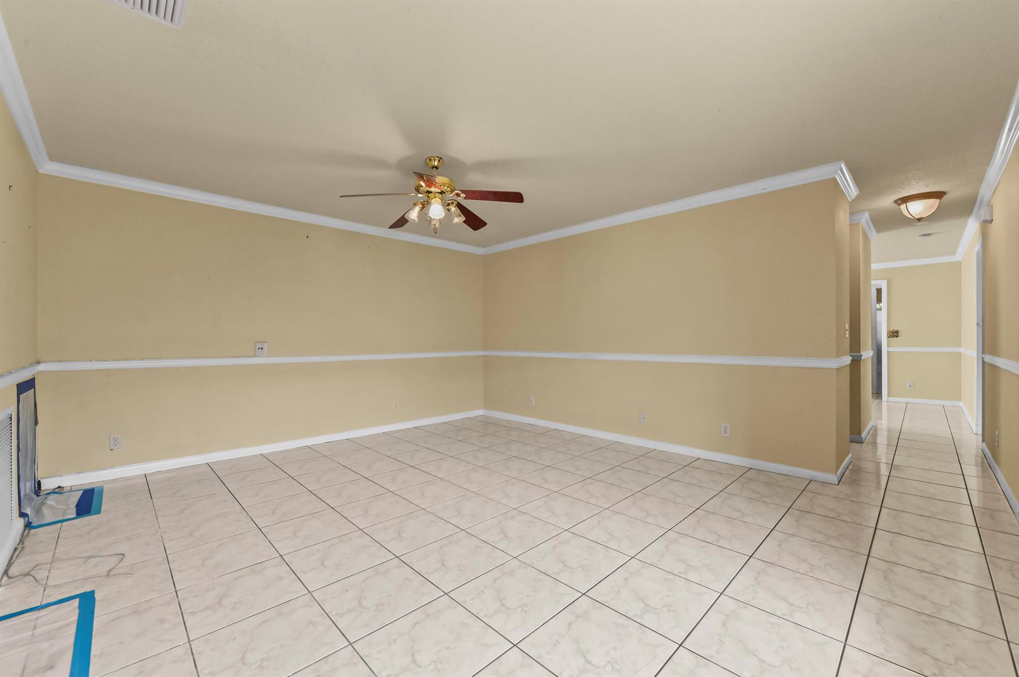 Welcome to Wellington Downs, where comfort and convenience meet in this well-maintained 1-story home offering 1,259 sqft of living space. This property features 3 bedrooms and 2 bathrooms, designed with a split bedroom layout for added privacy.The inviting interior boasts tiled floors throughout, recessed lighting, and crown molding for a modern touch. The kitchen comes equipped with appliances, wood cabinets, counters with bar seating, and plenty of space for meal prep and entertaining.