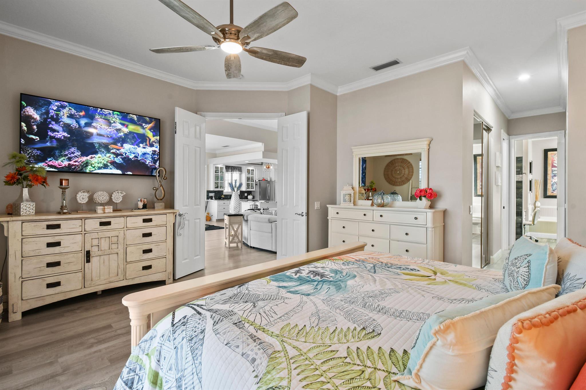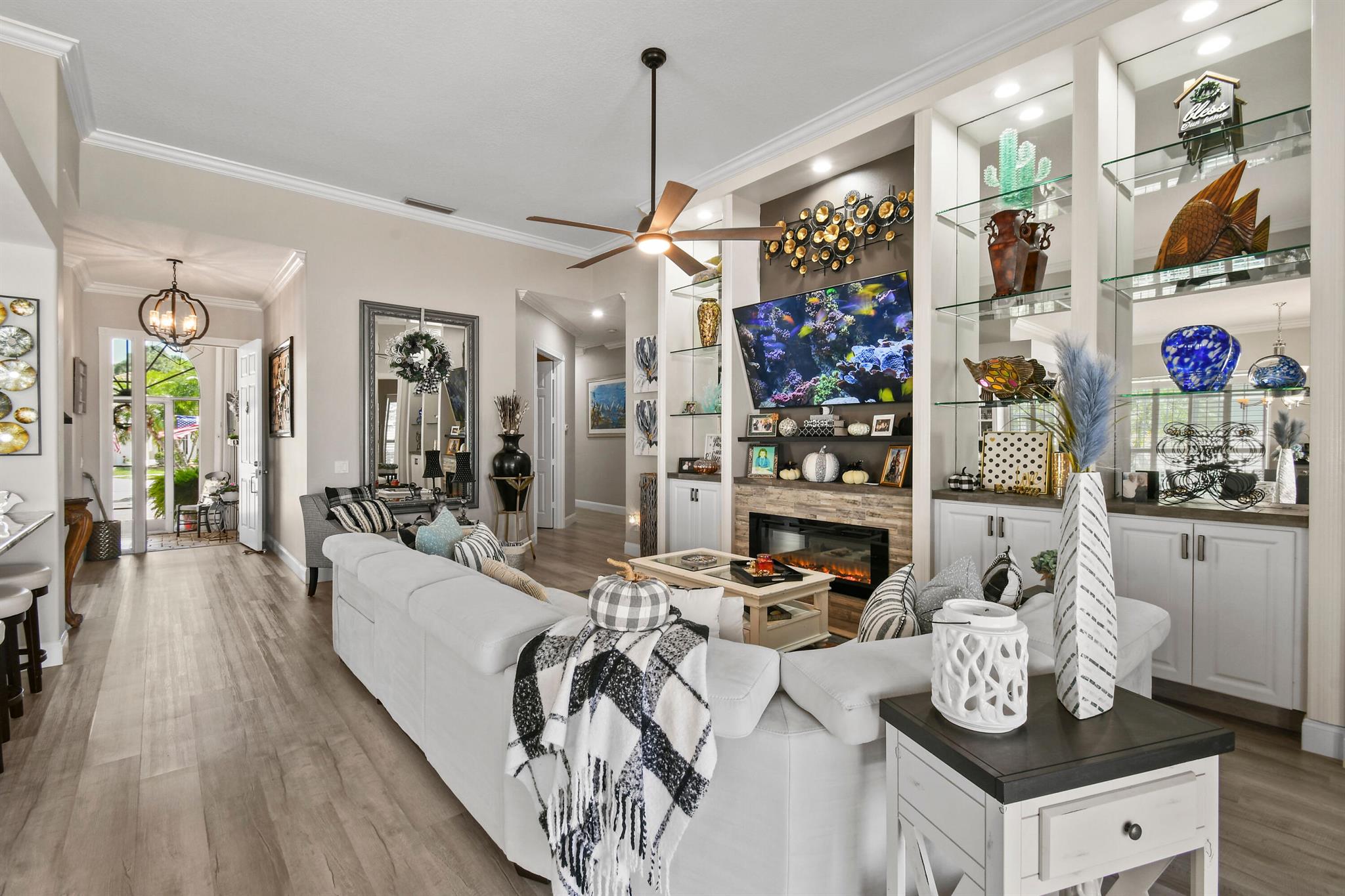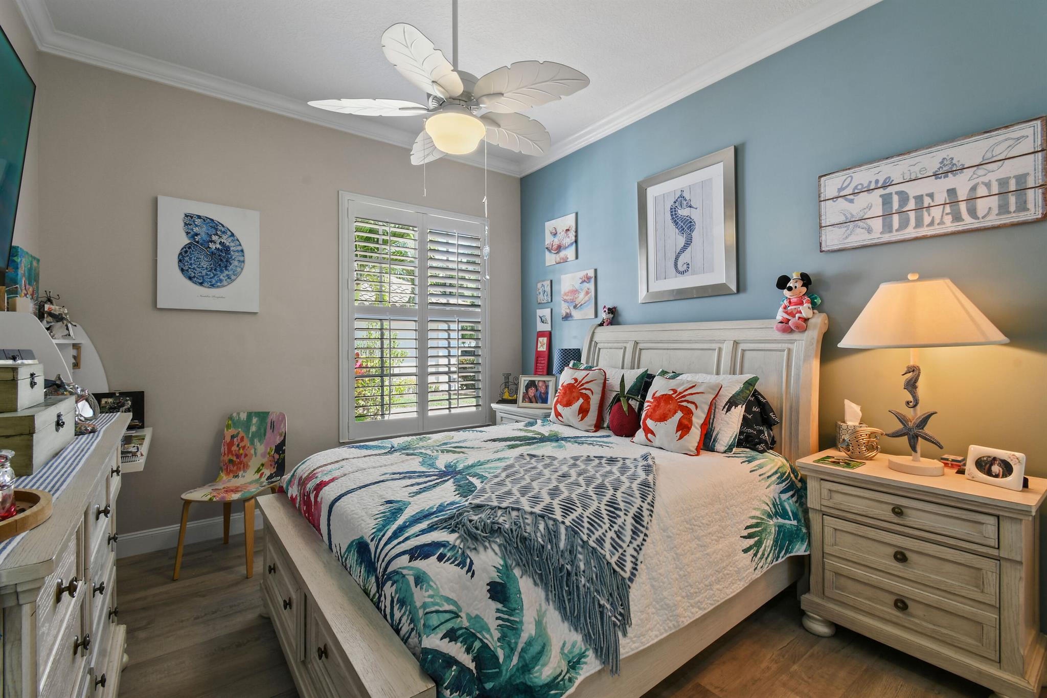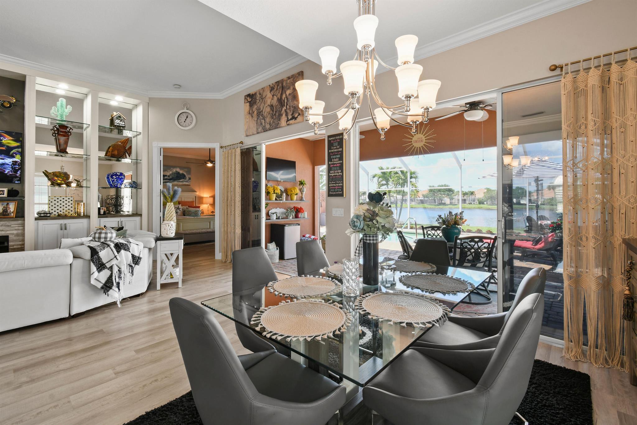 Tucked away, In a Gated Enclave. on a quiet street, This beautifully updated home offers stunning lake views, sparkling pool, and the perfect blend of tranquility and community living. Featuring 3 spacious bedrooms plus a flex room, this residence is designed for both comfort and functionality--ideal for unwinding in style. Step inside to an open-concept floor plan highlighted by stylish modern LVP flooring throughout, creating a warm, inviting atmosphere perfect for relaxing or entertaining. This modern style updated home is a must see.The screened in patio offers a peaceful setting to enjoy your morning coffee or unwind poolside. Close to Spectacular Hobe Sound Beach , Shopping , & Restaurants.