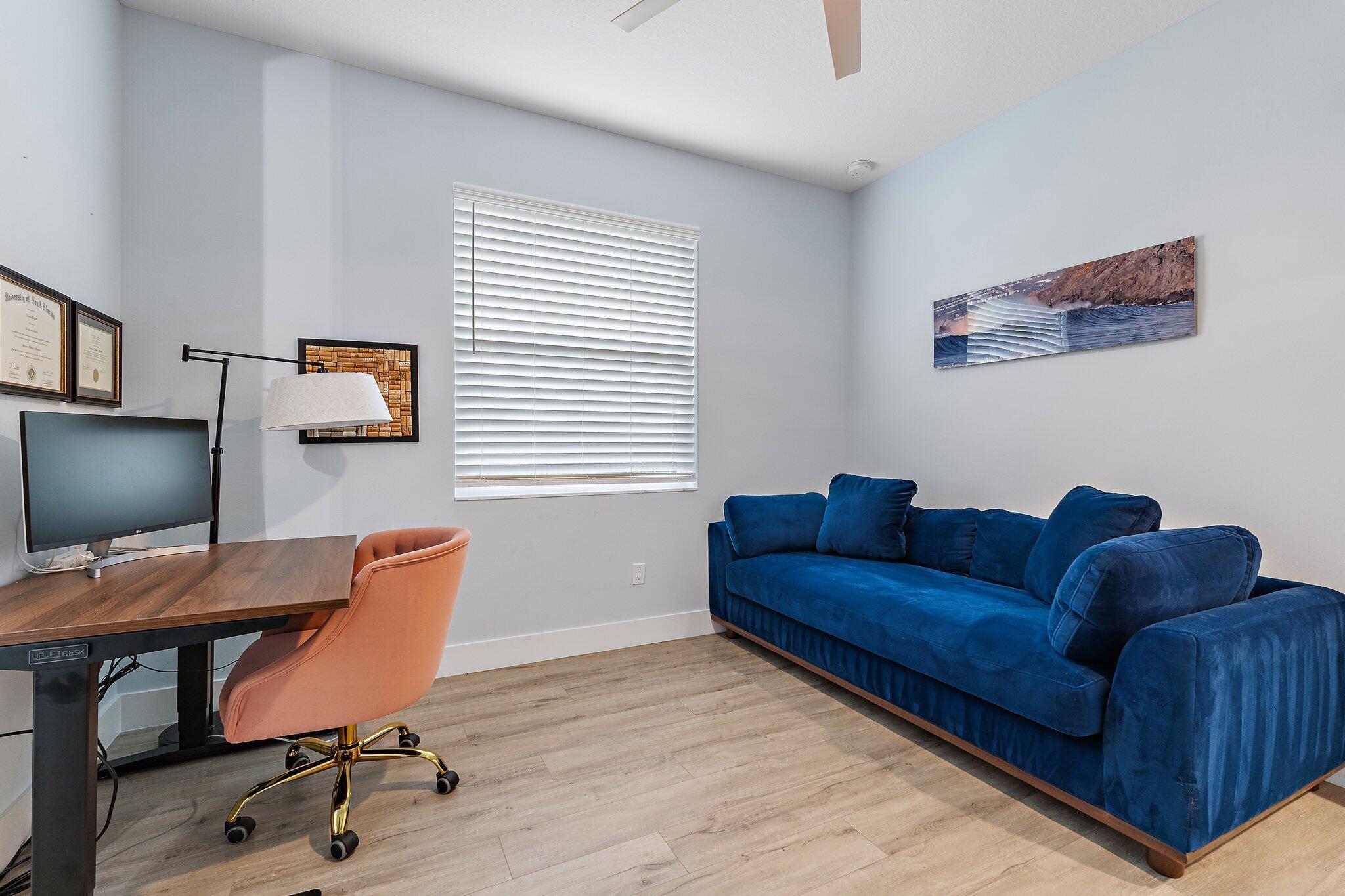 Jupiter Farms home built in 2021 with over $200k of upgrades in 2023-2024 including your very own pickleball court! New driveway, new fencing, Tesla solar + Powerwalls, and new automatic shades for the back porch are just a couple of examples of recent improvements. Take advantage of 1.5 acres of solitude while still being minutes to I-95 and Juno Beach.Offering 4 bedrooms plus a den, 4.5 bathrooms, and 3,051 sq. ft. under air (4,415 total), this home blends clean architectural design with modern comfort. The open layout features wide-plank laminate hardwood flooring, high ceilings, and natural light throughout. The kitchen shines with premium appliances, upgraded lighting, and expansive counters, perfect for entertaining. The primary suite offers a spa-style bath, custom finishes,