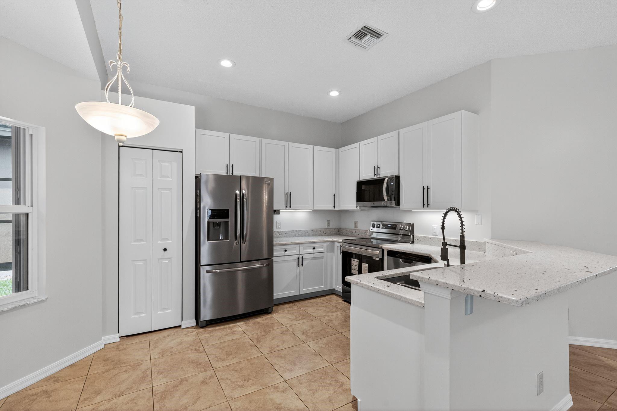 Discover this beautifully updated 3 Bedroom, 2 Bath home offering 1,598 sq ft of comfortable living space in one of the area's most desirable communities. Featuring a brand-new Kitchen with modern counters, cabinets and appliances, this home also boasts fresh paint throughout, a brand-new tile roof (installed 8/25) and a new water heater. Enjoy peace of mind with storm shutters on all windows and the convenience & added storage of a 2-car garage. Basic cable and lawn maintenance included, along with in-lawn sprinklers to keep your yard looking its best. Located on a scenic preserve, the community offers fantastic amenities including a heated community pool w/enclosed patio, tennis, pickleball and basketball courts and a low HOA. move-in ready home you'll be excited to call it your own!