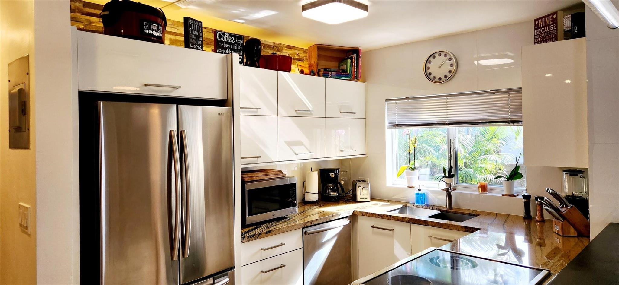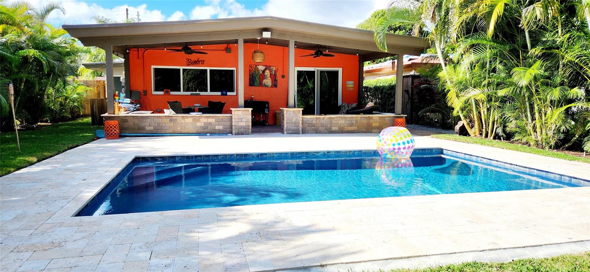 Charming East FTL bungalow offers the best of South Florida living with its tranquil backyard paradise! This backyard is an absolute gem, fenced & landscaped for privacy. It is perfect for relaxing pool side or enjoying the shade of the oversized covered brick patio. Pool added in 2022 (salt). The interior has been upgraded recently & features a sleek white kitchen with high end stainless steel appliances, granite counter tops & a custom raised serving bar over looking the living room. Impact windows and doors throughout. 2 bedrooms, built in closets & an updated spa style bathroom featuring granite countertops, this is the perfect starter home & has plenty of room to add on! Bring your boat/RV! 10 minutes from the beach/Las Olas.