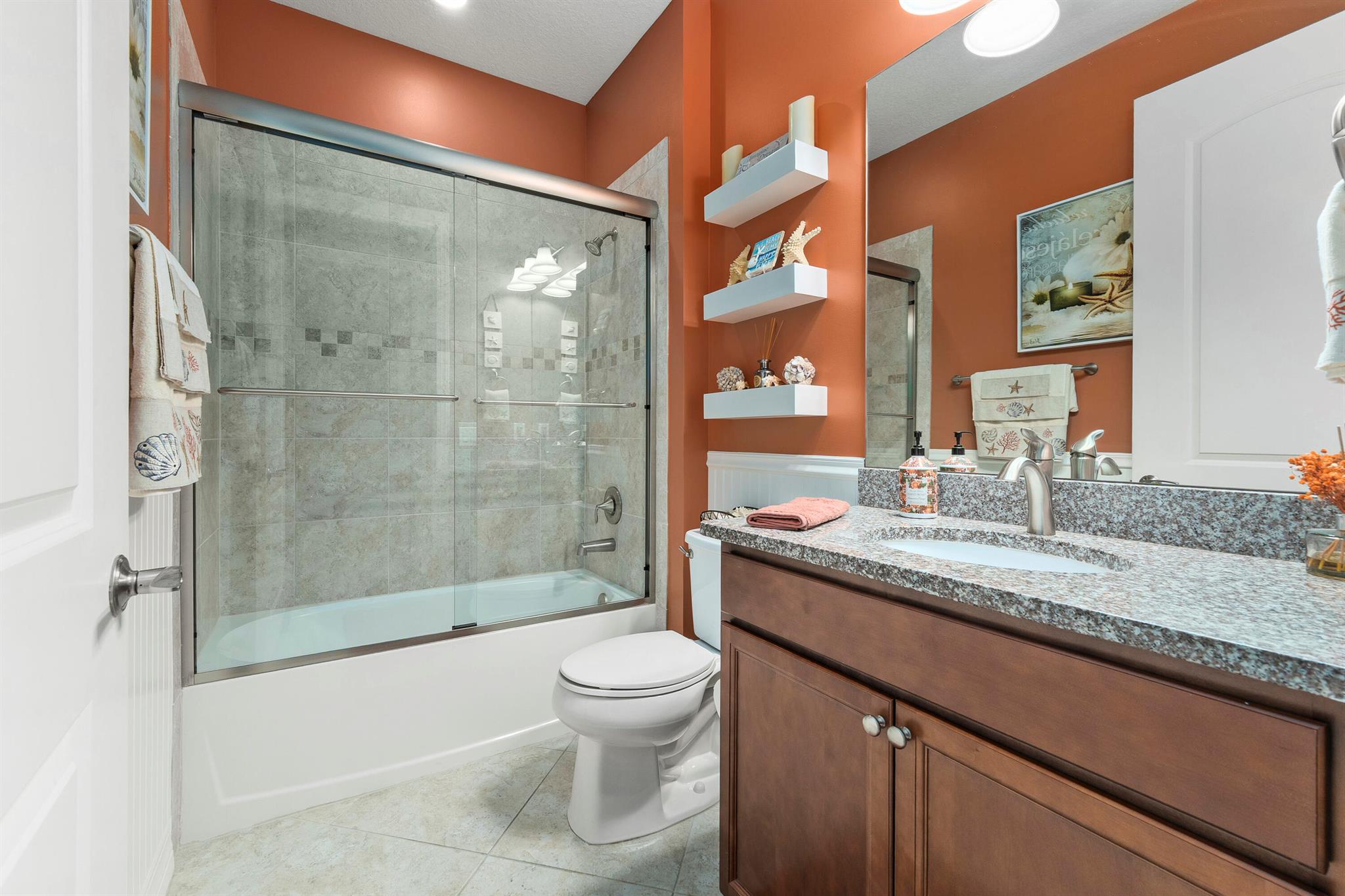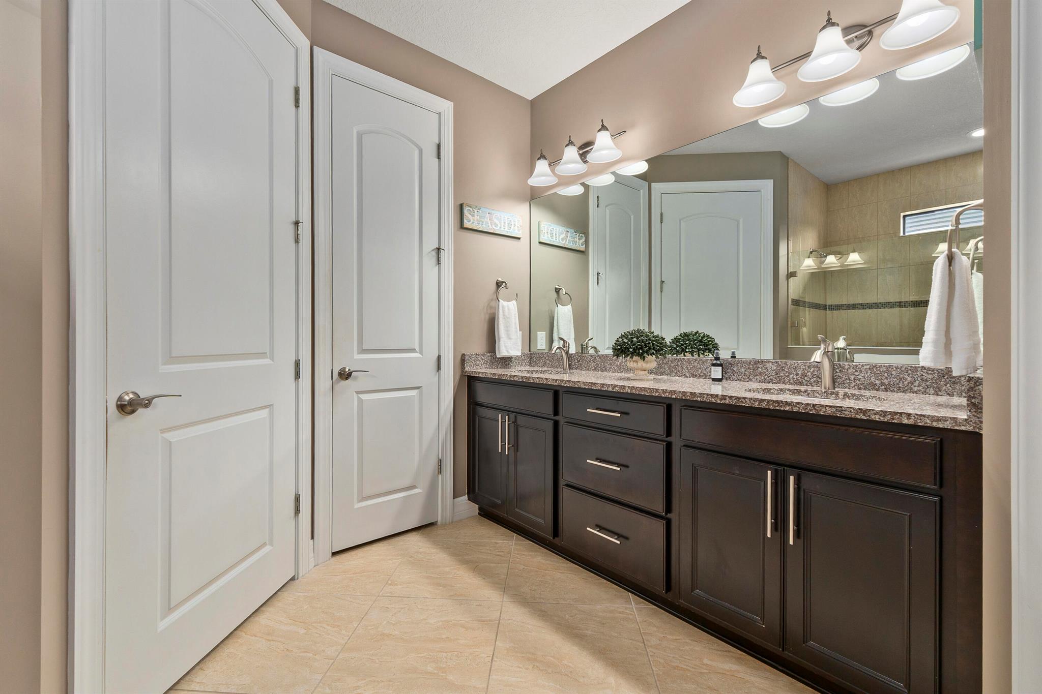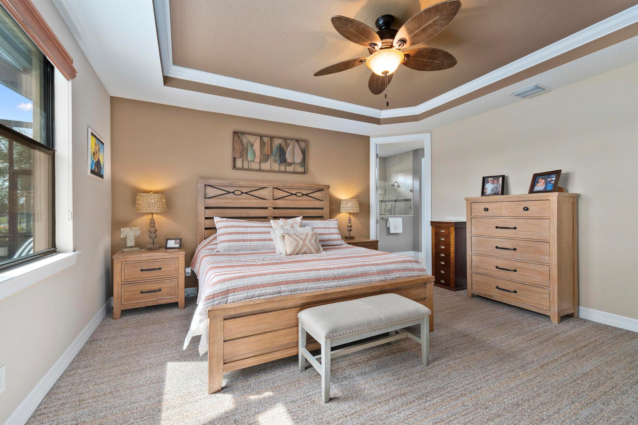 CBS 3Bed + Office 2Bath 2 Car Gar with long lake views. Screened & Gas Heated swimming pool with paver patio. Island Kitchen features 36'' Espresso cabinets, 3CM granite counters, SS appliances, pantry, tile backsplash, gas range, bar area w/beverage cooler, crown molding, pendant lights & title floors. Impact Windows, high ceilings, shiplap accent & built in cabinetry. Built in entertainment center with LED lighting & 60'' TS LED digital fireplace. Master suite features built-in custom closet cabinetry; Main bath has dual sinks & large tiled shower. Patio features retractable electric screen. Clubhouse amenities include Heated resort style pool, Hot Tub, Gym, tennis, playground, kitchen, indoor & outdoor bar, fire pit, BBQ, bocce & dog park.
