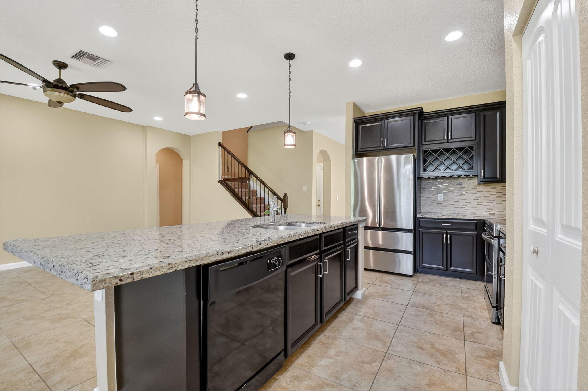 PRICED TO SELL! Beautifully maintained 5 bedroom, 3 bath home with 2,855 living square footage in the desirable Abbington gated community in Lake Worth! Built in 2016, this bright two-story home with two-car garage, boasts the privacy of being one of the northernmost home in the community, on a quiet end street!Enter through the grand living room and dining room space, offering high ceilings and neutral tiled flooring. Ceiling heights and flooring continue in to the spacious family room aside the open gourmet kitchen offering granite countertops, a tiled backsplash, stunning espresso wood cabinetry, large chefs island with sink, stainless steel appliances and a substantially sized breakfast area. Another exceptional property highlight is ...
