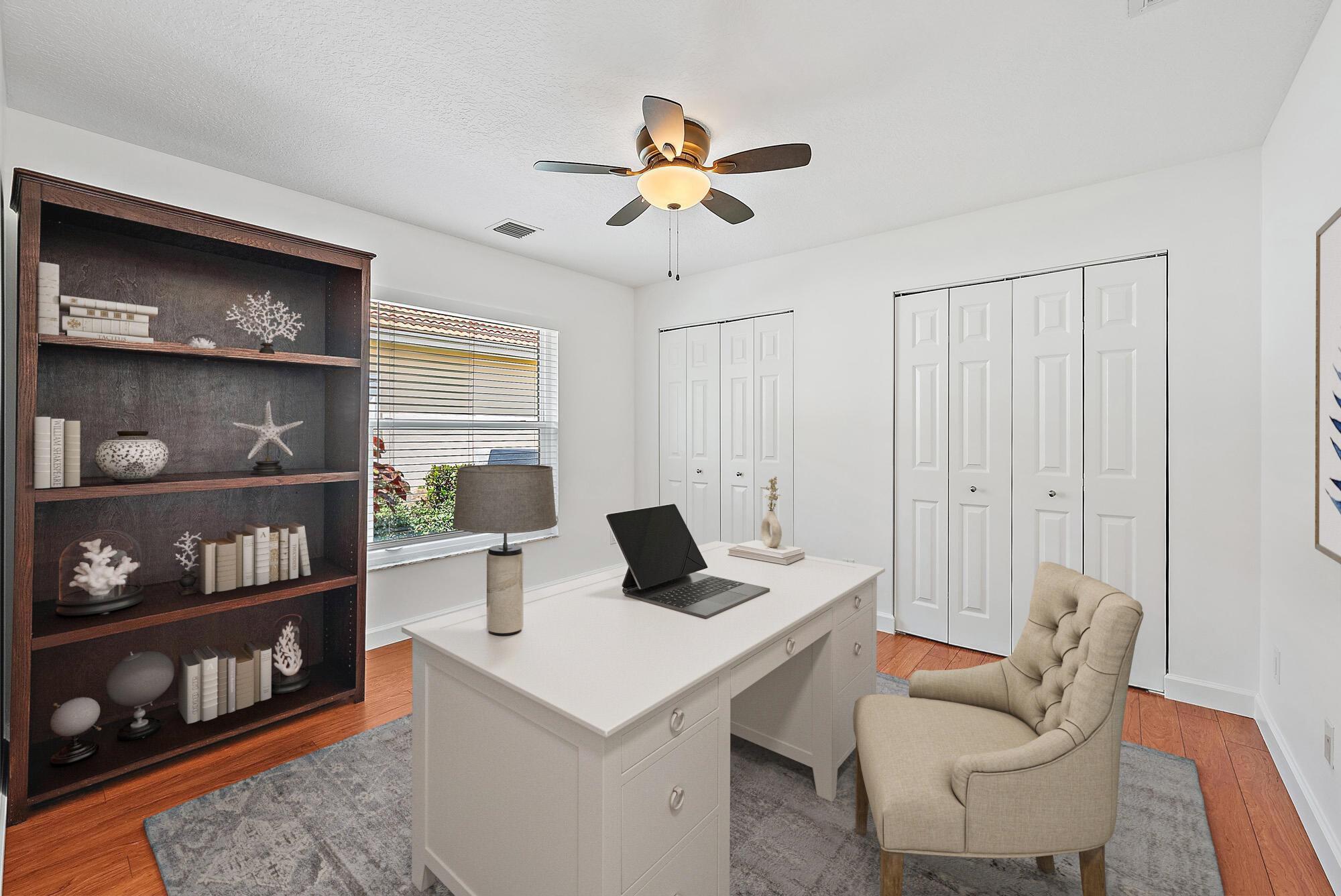 Built in 2001 with solid CBS construction, this home offers quality, comfort, and peace of mind with all the major upgrades already complete. Situated on a large corner lot with a private backyard, it features a 4-bedroom plus den, cathedral ceilings, and a welcoming double-door entry. The spacious kitchen offers abundant storage, stainless steel appliances, granite countertops, a gas range, and water filtration at the sink. All bathrooms are finished with marble countertops, and the primary suite boasts two walk-in closets. Major upgrades include a 2024 A/C with UV system, new roof and gutters (2025), full impact glass windows and doors (2020), tankless water heater (2019), Propane tank (2019), Hunter Douglas plantation shutters, and attic insulation (2019).