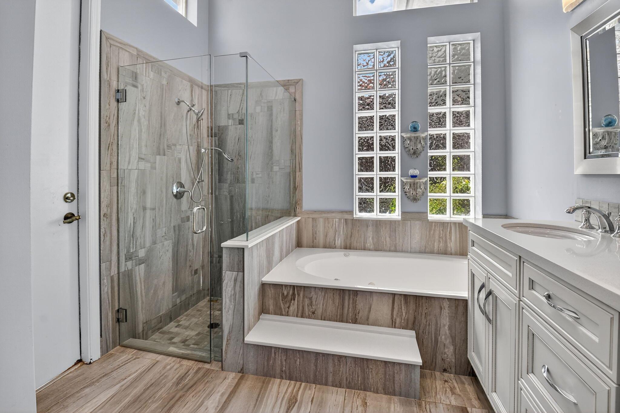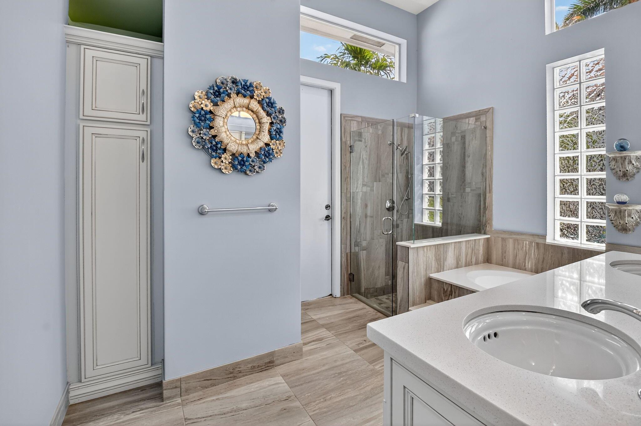 Welcome to this spacious one-story townhome in the beautiful village of Timbermill at Broken Sound Country Club. Offering 3 bedrooms, 3 full bathrooms, and 1,835 sq ft of living space, this residence combines comfort, elegance, and an easy flow for everyday living. Step inside to find porcelain tile floors throughout and a split-bedroom floor plan that provides privacy and functionality. The open-concept kitchen, living room, and dining room are filled with natural light and overlook the courtyard with a private pool, creating the perfect setting for entertaining or relaxing. The primary suite features a walk-in closet and a beautifully appointed en suite bath with a soaking tub and a frameless walk-in shower. Located in the heart of Broken Sound, this home offers not only a private