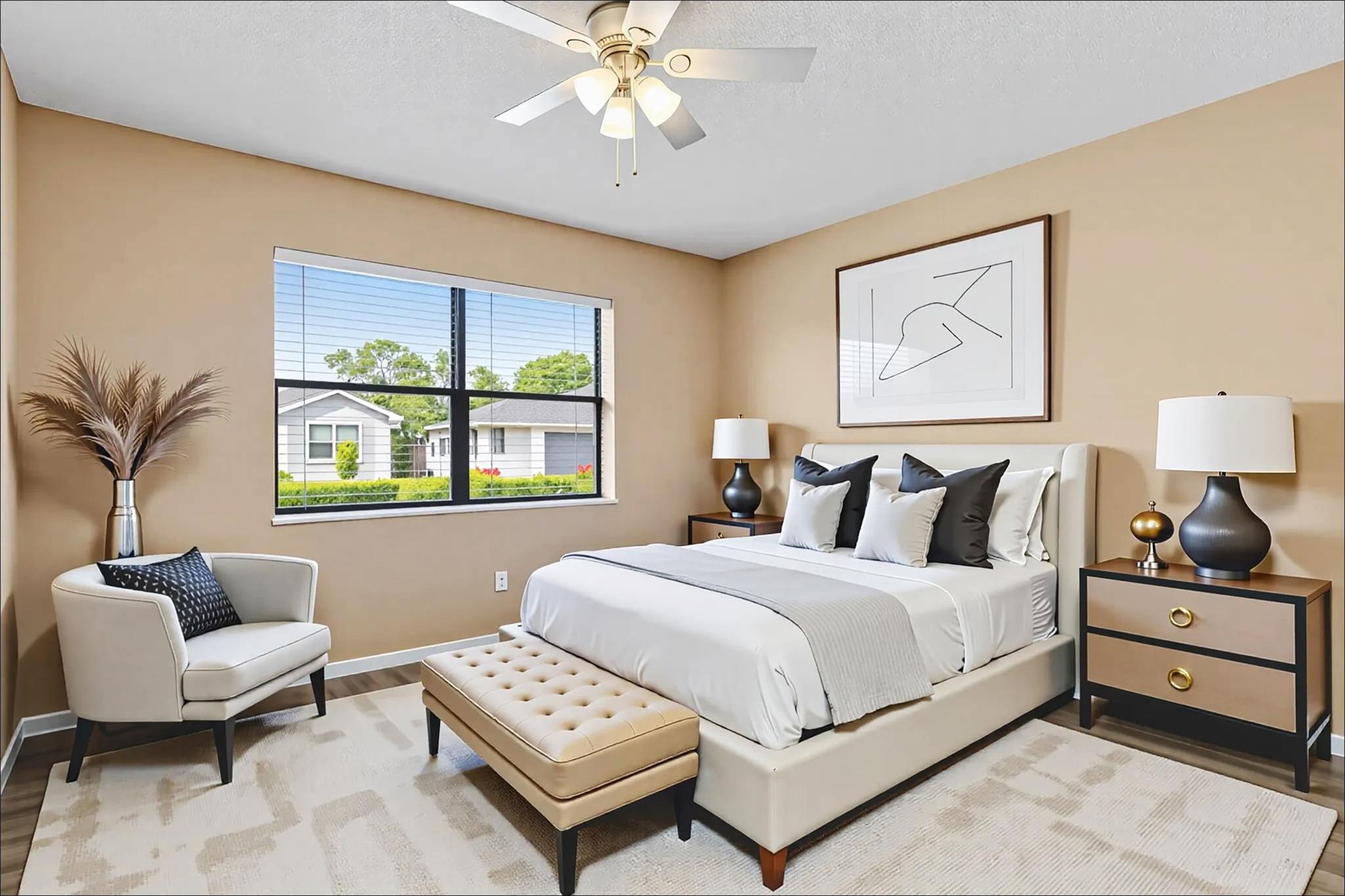 Amazing opportunity to own a spacious 3-bedroom, 2-bath home in an all-ages community with NO HOA! This property features a renovated, oversized kitchen with double oven & snack bar for bar stools—perfect for entertaining. Highlights include a split bedroom floor plan, neutral tile flooring throughout, new roof (2022), brand-new hot water heater (2025), and a paver driveway. Enjoy the large backyard with a concrete slab, ideal for your BBQ or patio setup. This home truly has it all—a must see!
