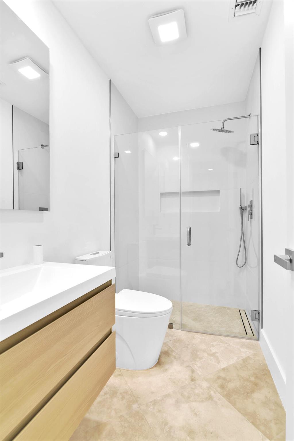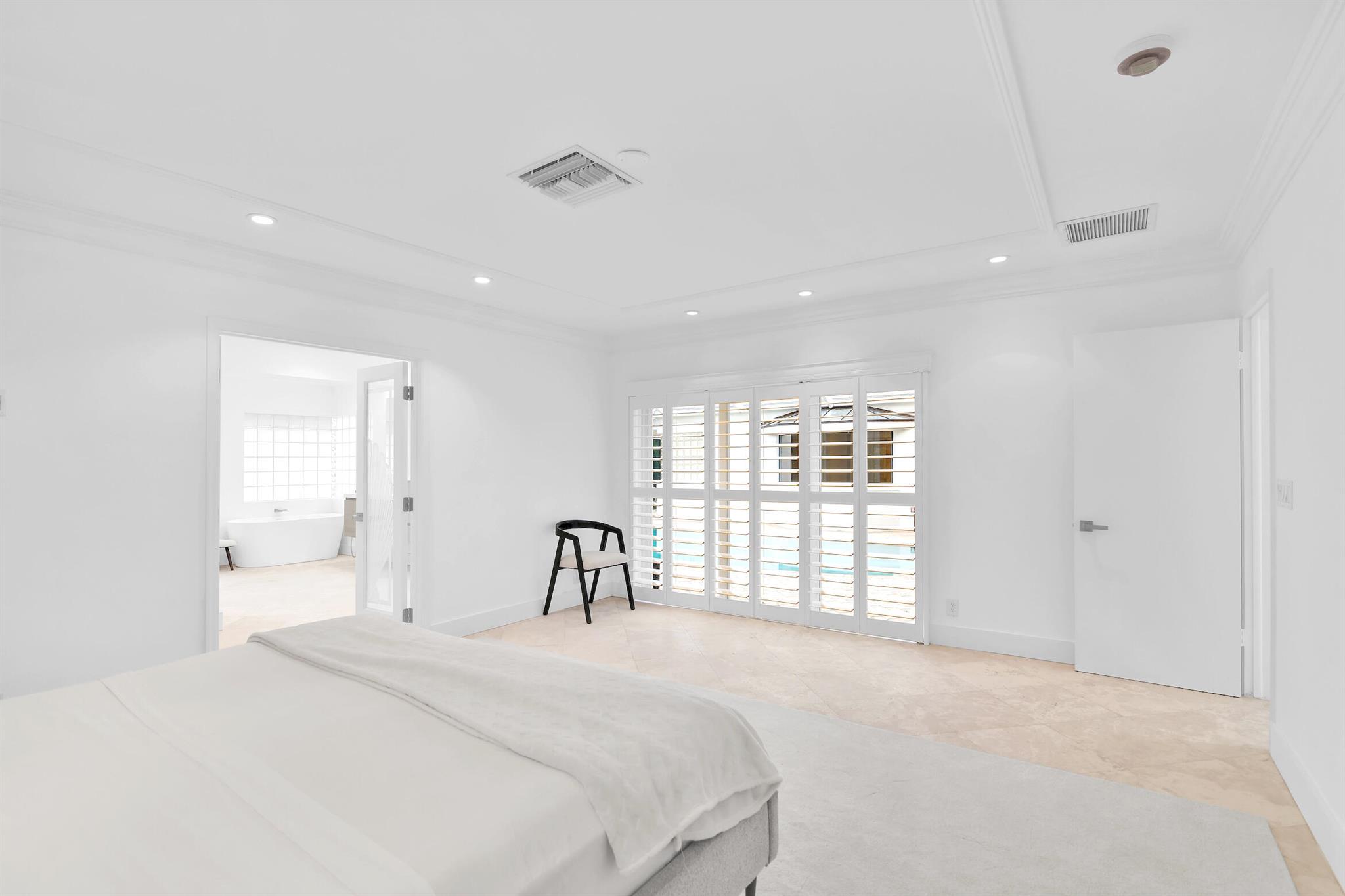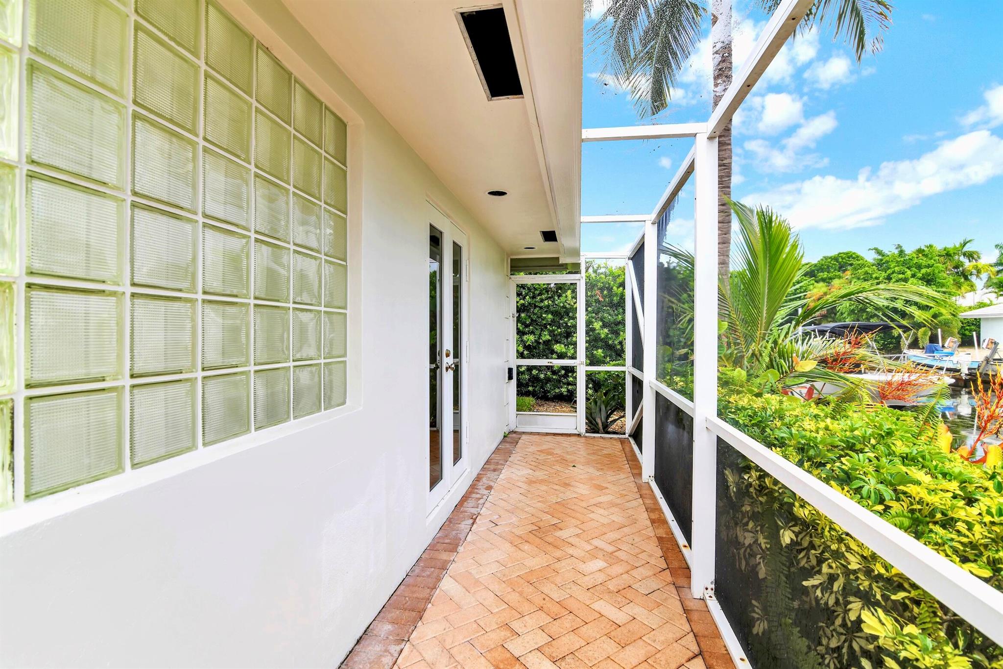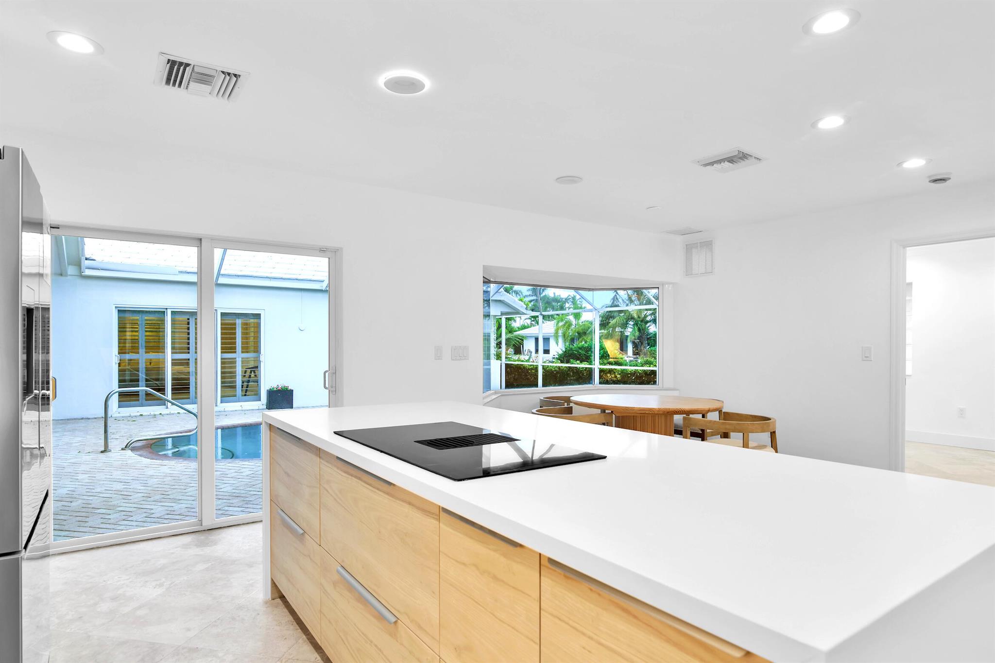 A rare, newly renovated Camino Gardens waterfront residence with 85+/- ft of frontage and ocean access. Features include a new kitchen and baths, sleek marble floors, vaulted-ceiling living room, contemporary chef's kitchen with island and casual dining, plus a versatile office/guest suite/gym. The primary suite offers pool access, a spa bath with freestanding tub, curbless shower, and custom closet. Two guest bedrooms have walk-ins. Outdoor living shines with a screened lanai, saltwater pool, and dock with lift and dual ramps. Additional perks: Wi-Fi irrigation, 2-bay garage with EV charger, new AC, new sewer pipelining, and newer roof. Ideally close to Mizner Park, dining, beaches, and A-rated schools.