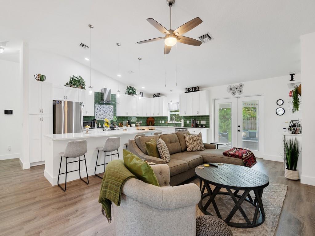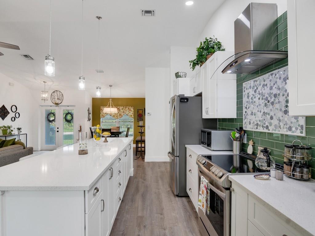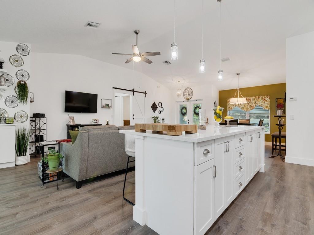 SHOW STOPPER! This 2022 built home is a dream come true. The open floor plan, chef's kitchen with shaker cabinets, a huge island and quartz countertops make this home perfect for entertaining. Other features include vinyl flooring, carpet in bedrooms, large master closet, and impact windows and doors. Enjoy the outdoors relaxing on the covered patio or spending time with the family in the spacious backyard. This lot is not part of the community POA, Buyer can join for access to community amenities.