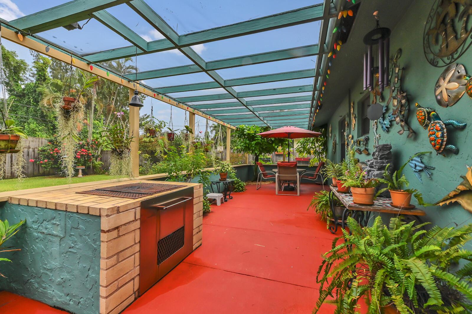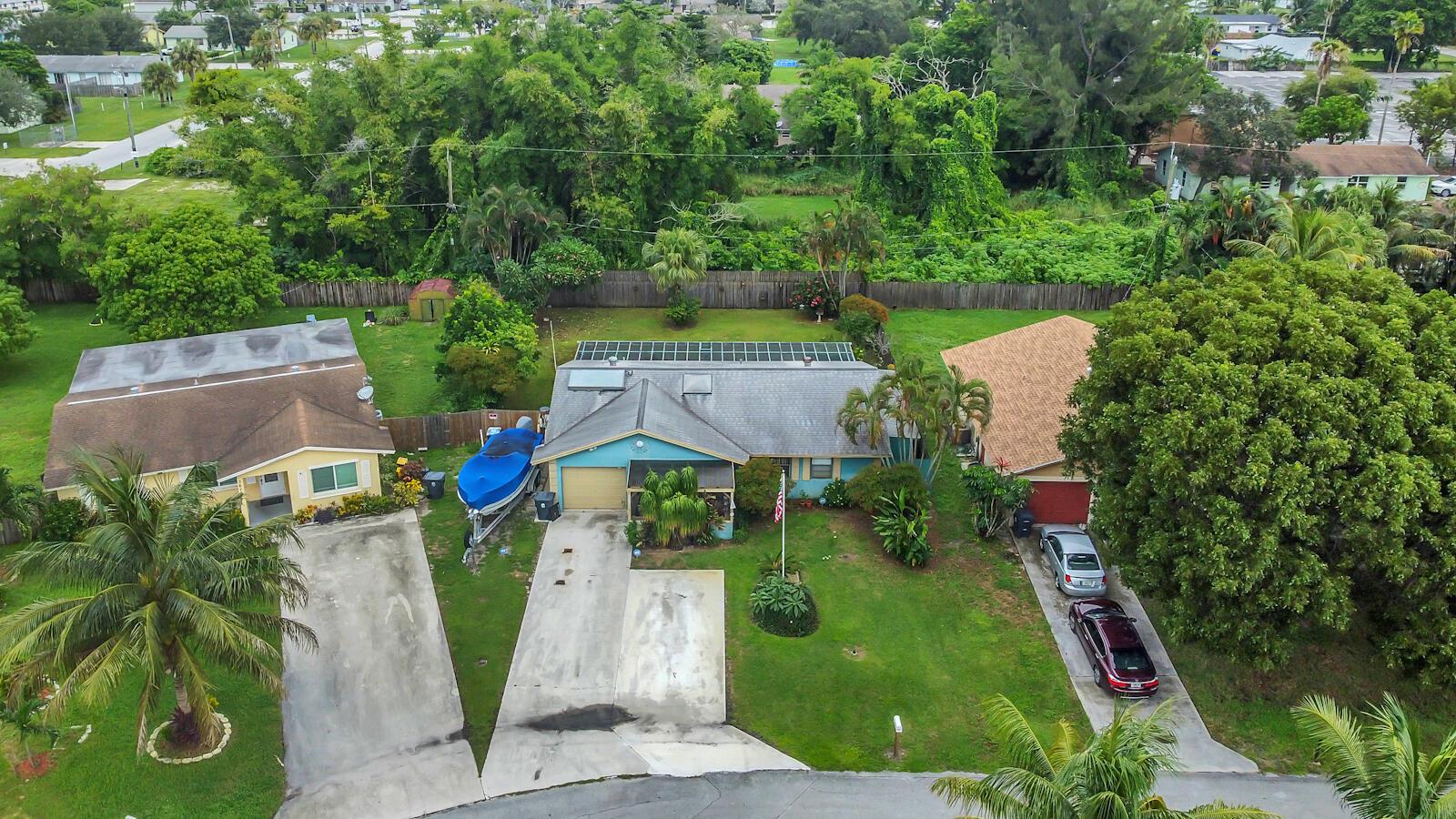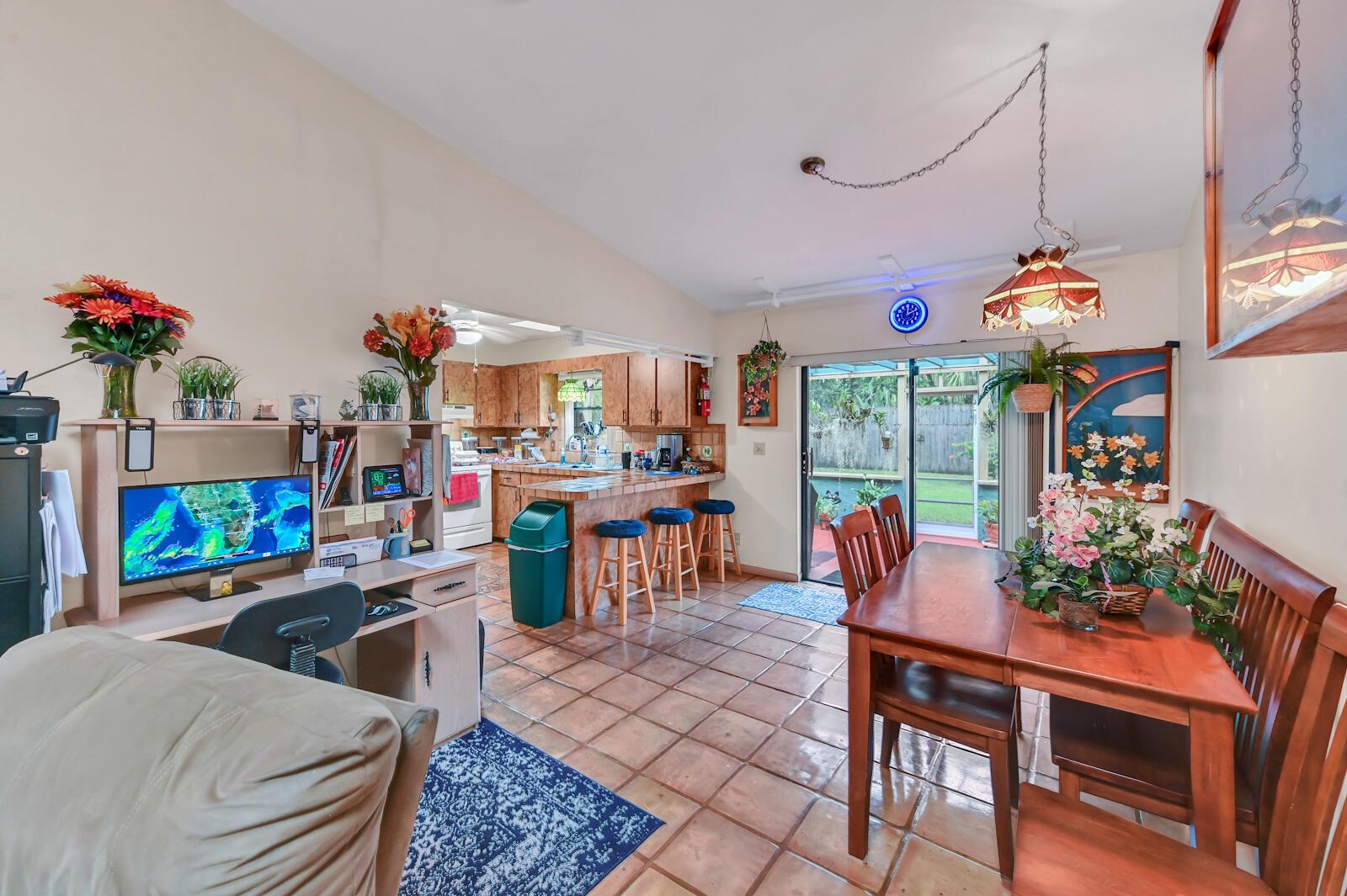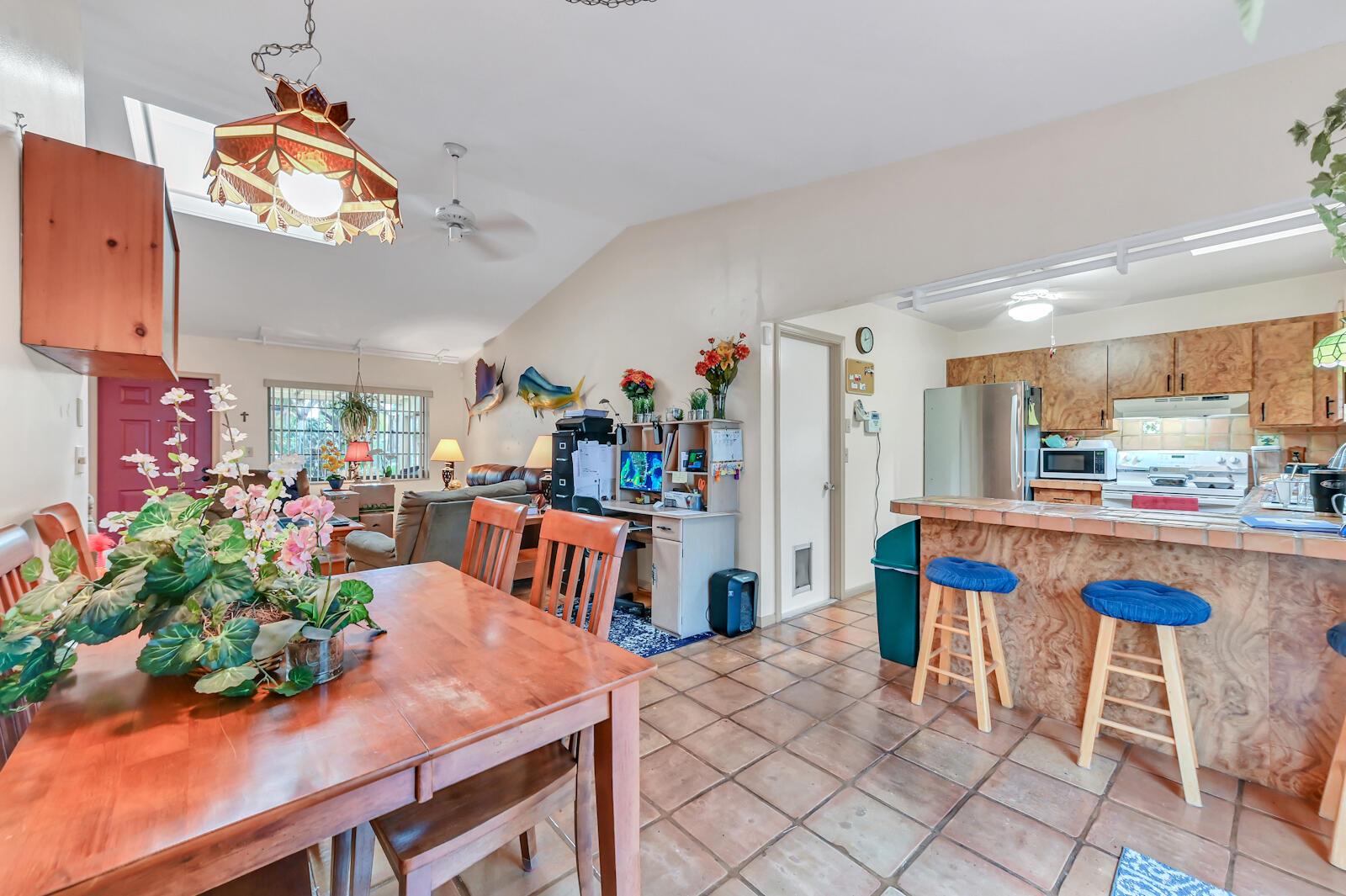 Welcome to Palm Beach Farms, where this charming 1-story home offers comfort & convenience with no HOA. Featuring 2 beds, 2 baths and 1,140 sq ft. of living space, this residence includes a 1-car attached garage, permanent shed solar powered hot water heater, and a large driveway perfect for a boat or RV.Inside, you'll find tile flooring throughout, a kitchen with appliances including fridge, dishwasher and range/oven, cabinet storage & a countertop with bar seating. Natural light flows in from skylights in the living room, kitchen and dining area, creating a bright and welcoming feel.
