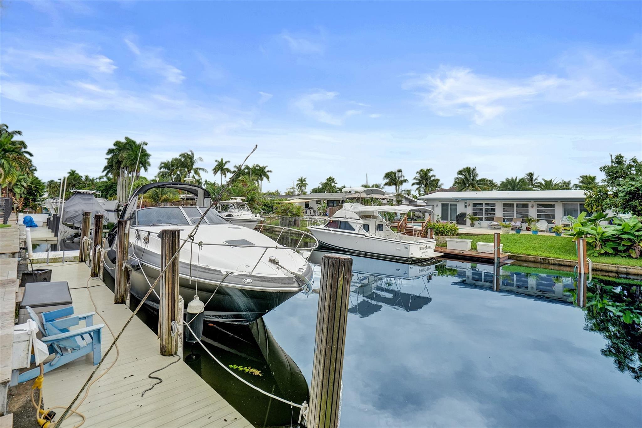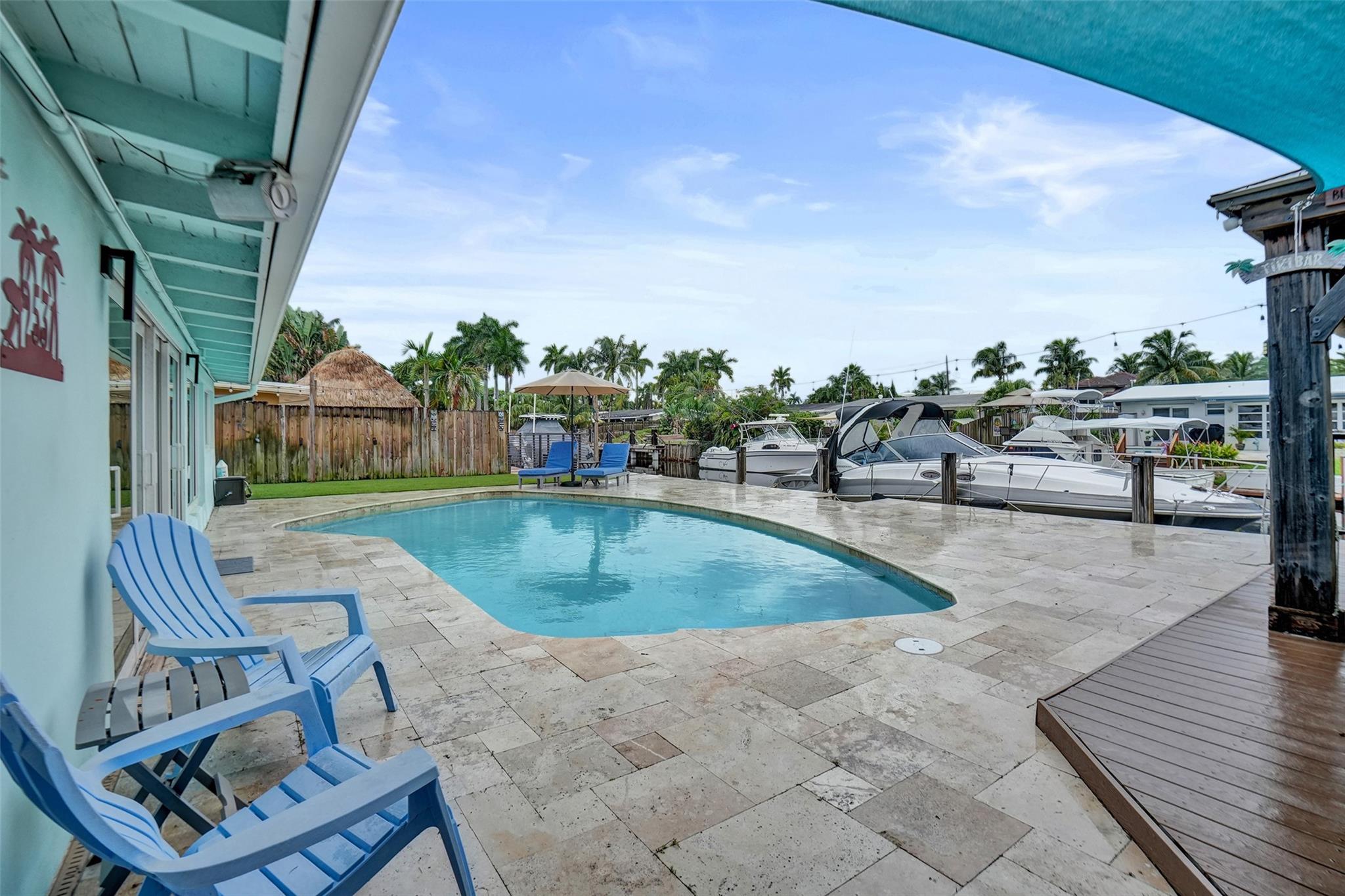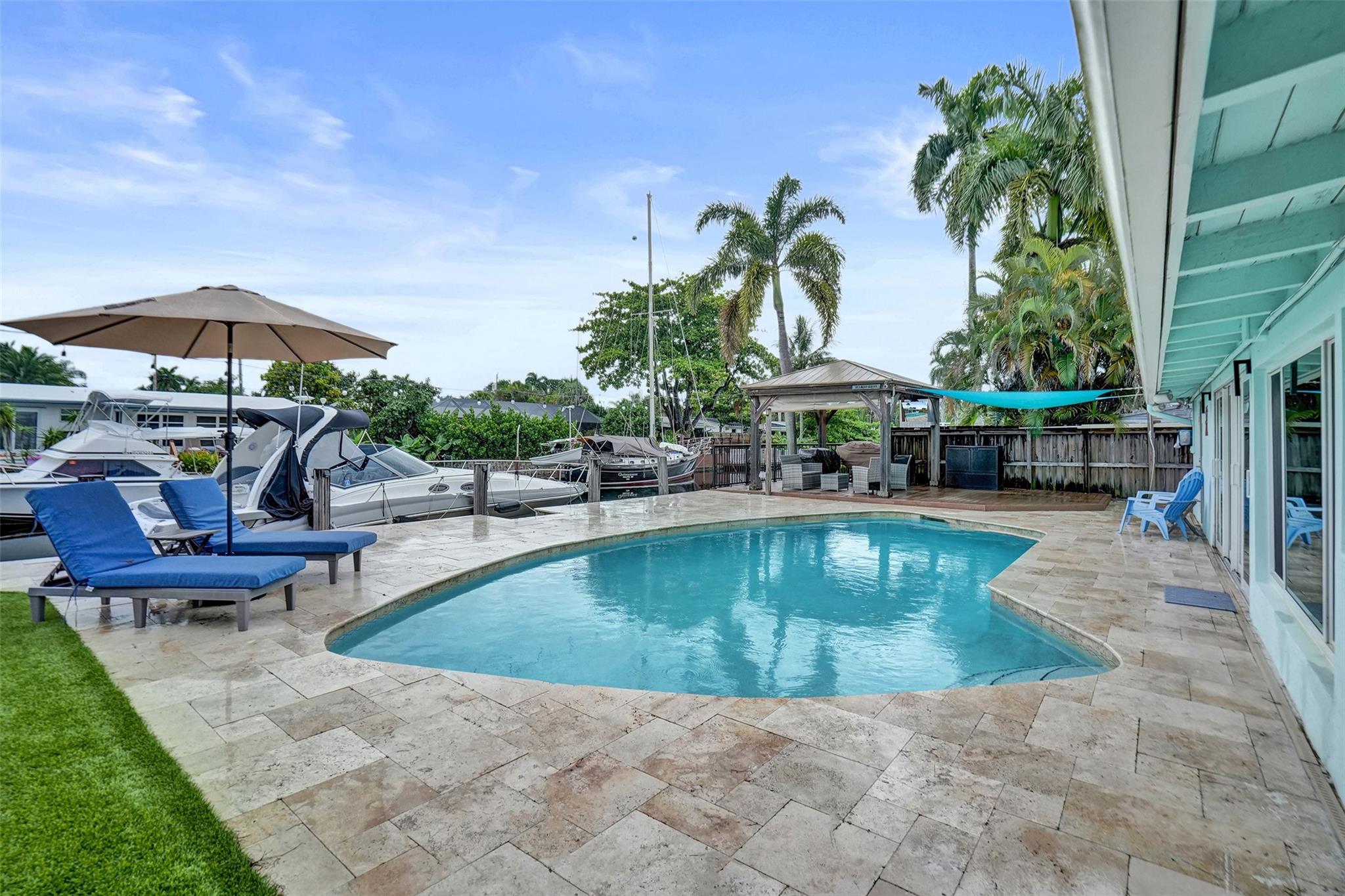 Fabulous 3 bedroom, 2 bath home in the sought after neighborhood of Lauderdale Isles. Home features 65 feet of ocean access, no fixed bridges waterfront, private dock with composite decking, Open floorplan, stainless steel appliances, updated kitchen with breakfast bar, impact windows and doors, 1 car garage, paver driveway with extra parking, pool with Travertine pavers, wood deck, and gazebo for entertaining, large main bedroom with private bath, mini split AC's in every room, separate office area, centrally located to all major highways and shopping.