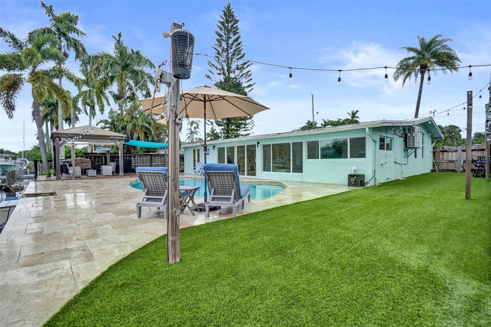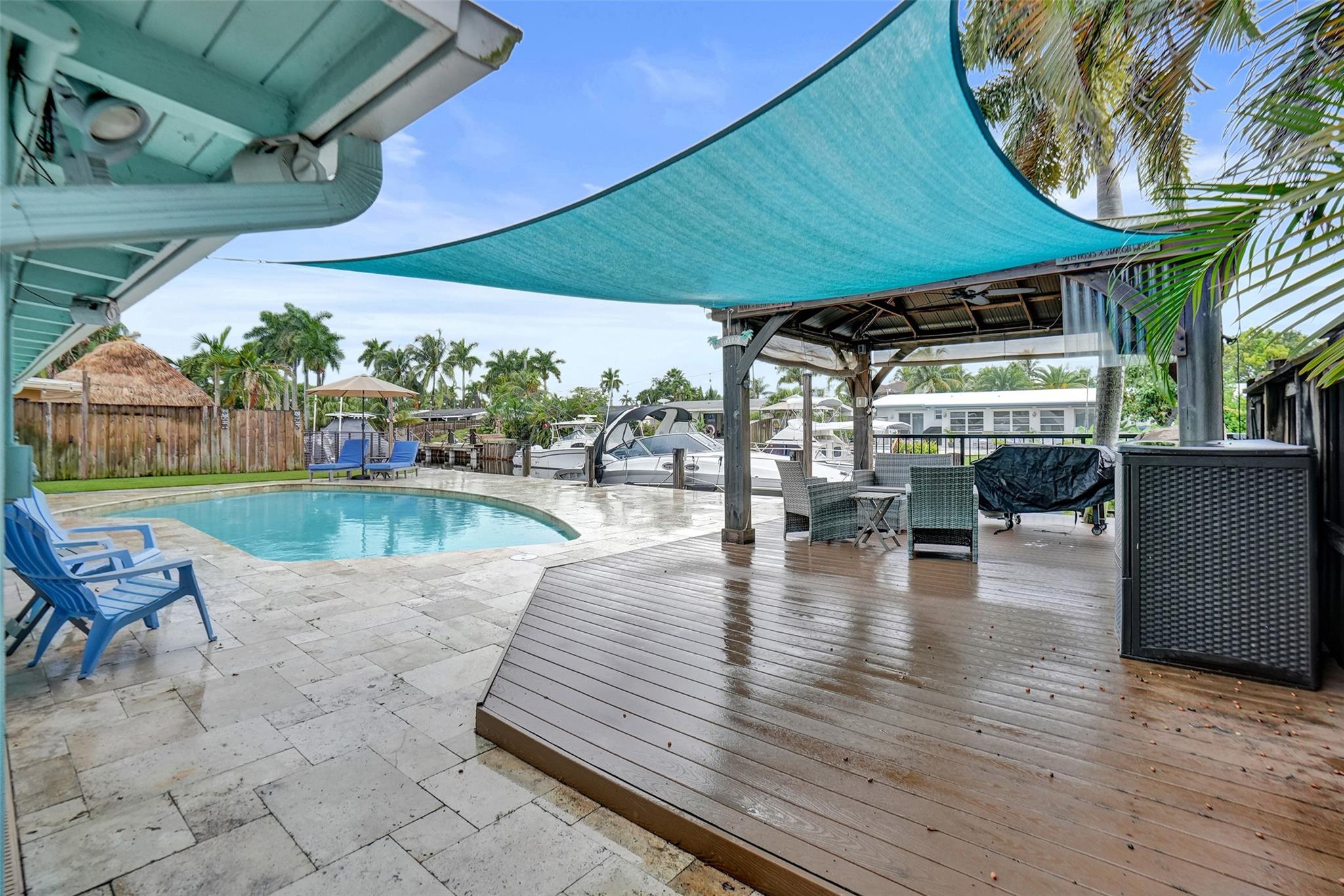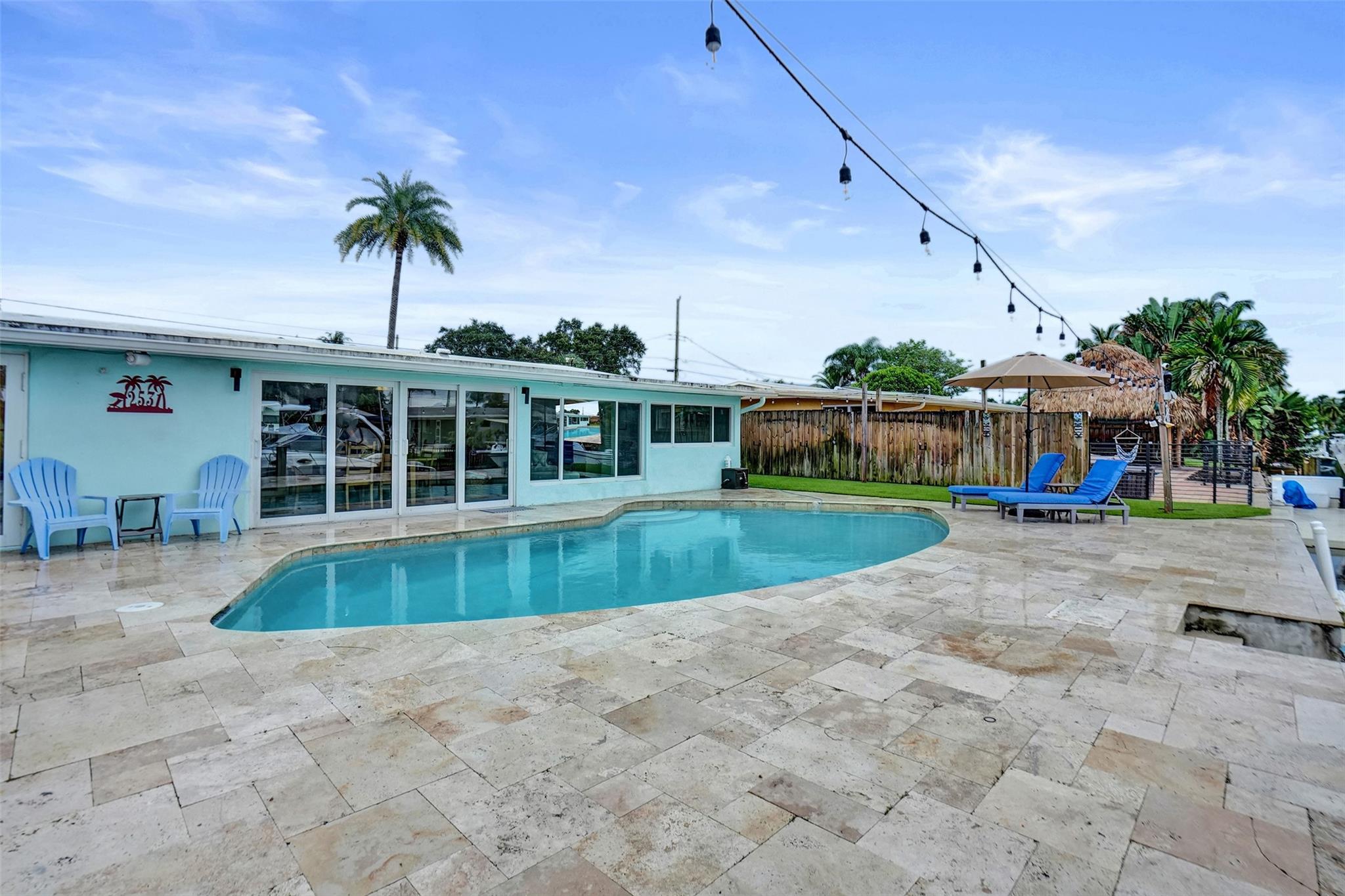 Fabulous 3 bedroom, 2 bath home in the sought after neighborhood of Lauderdale Isles. Home features 65 feet of ocean access, no fixed bridges waterfront, private dock with composite decking, Open floorplan, stainless steel appliances, updated kitchen with breakfast bar, impact windows and doors, 1 car garage, paver driveway with extra parking, pool with Travertine pavers, wood deck, and gazebo for entertaining, large main bedroom with private bath, mini split AC's in every room, separate office area, centrally located to all major highways and shopping.