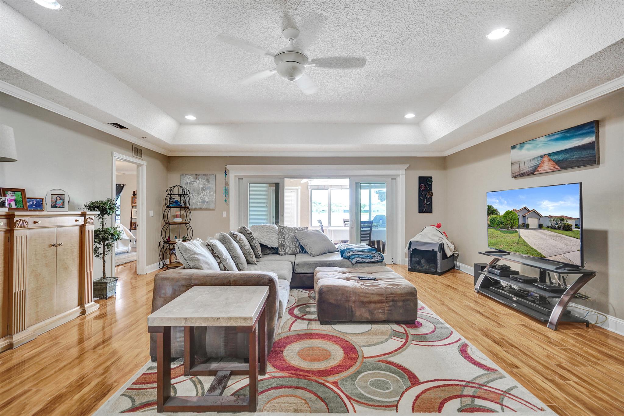 Love to fish, kayak, canoe, or simply enjoy the water right in your own backyard?Then you won't want to miss this fabulous lakefront home with its very own private dock!This 3BR, 2BA home is perfectly situated in the gated enclave of Bonita Isle in Lakes of Sherbrooke. Step inside and you'll be delighted by the thoughtful details--an inviting great room accented with crown molding, 5'' baseboards, and no popcorn ceilings!The kitchen features crisp white cabinetry, granite countertops, and a charming built-in bench nook. A convenient pass-through connects it to the great room, offering versatility to suit your personal design and lifestyle.
