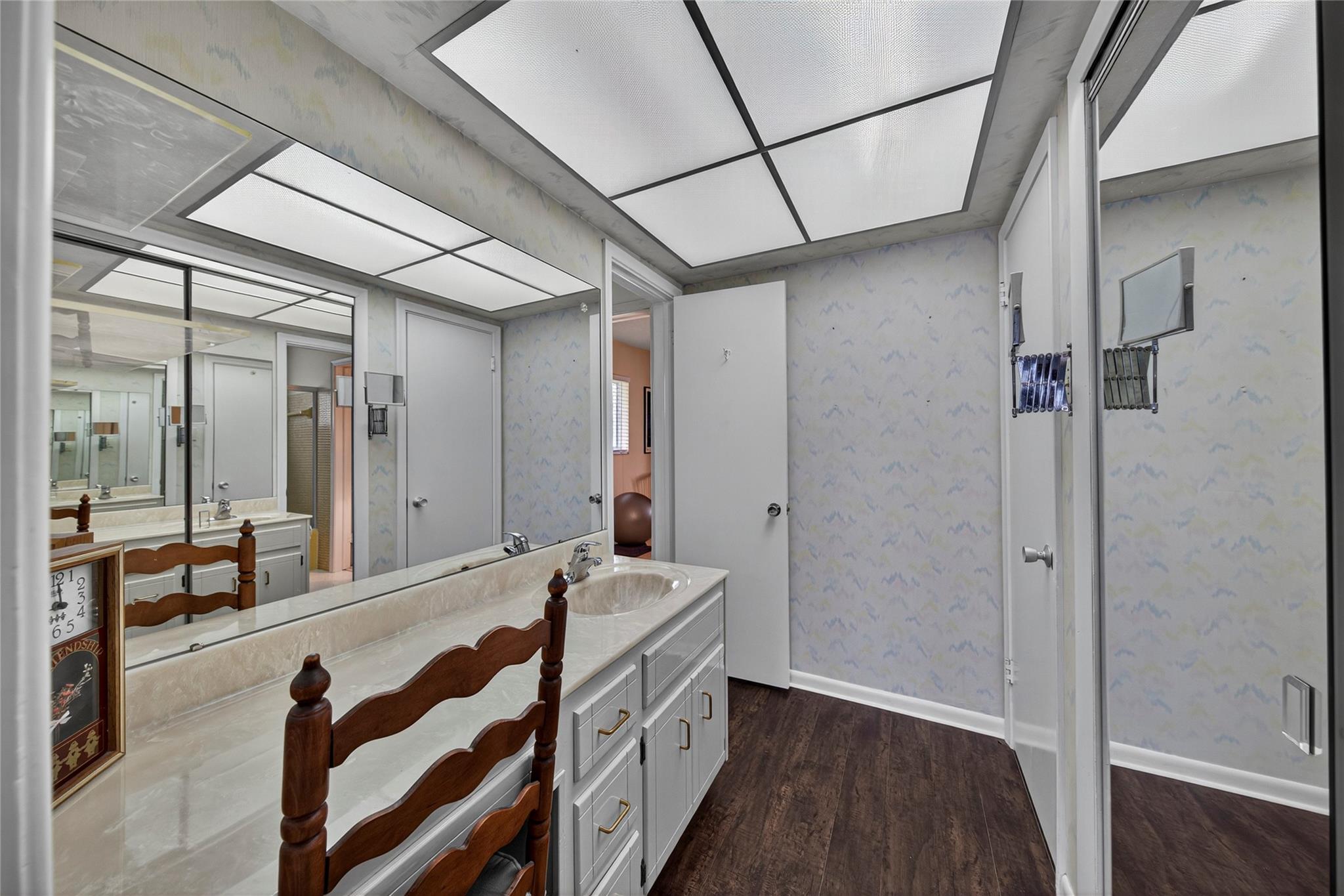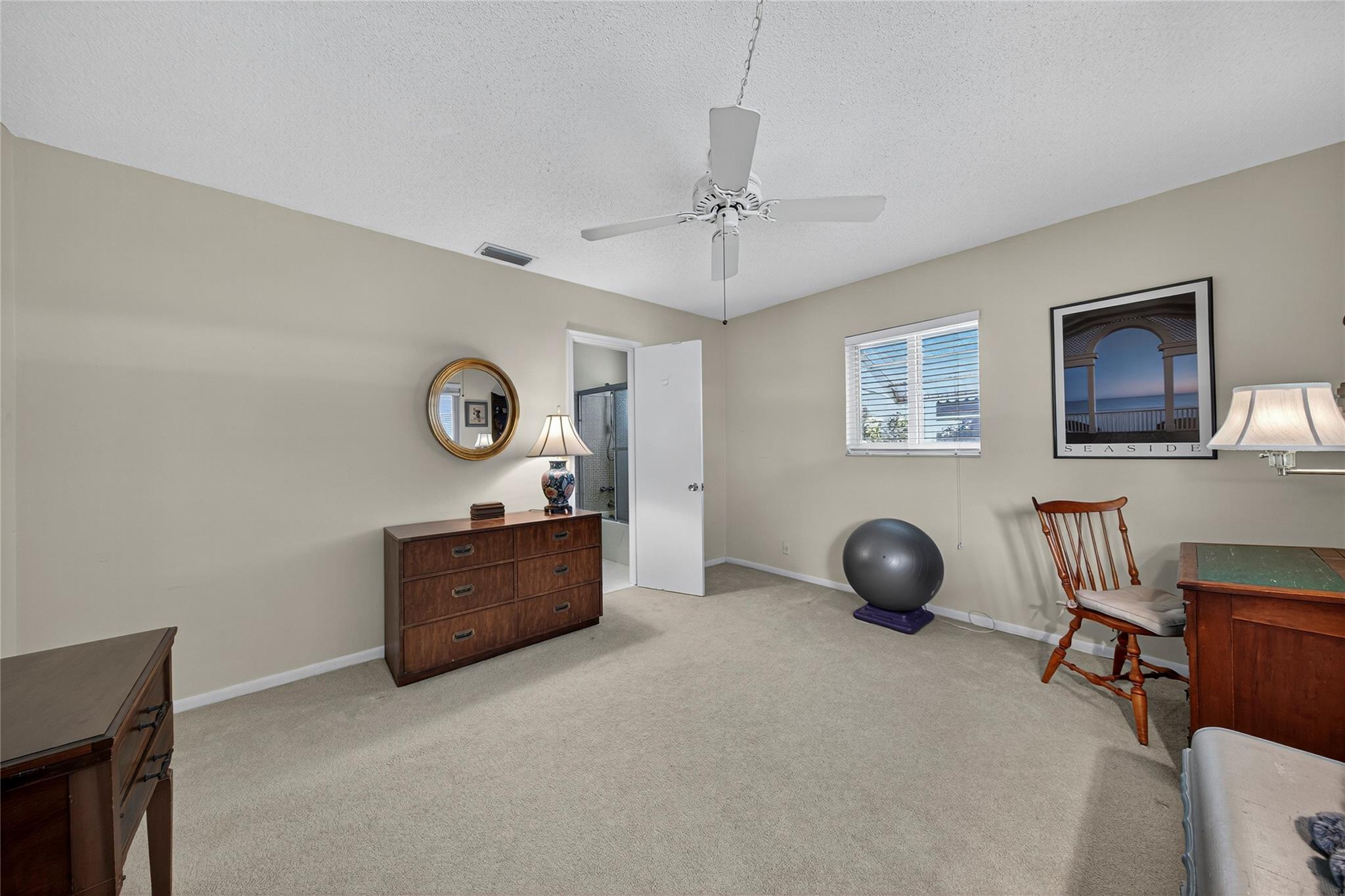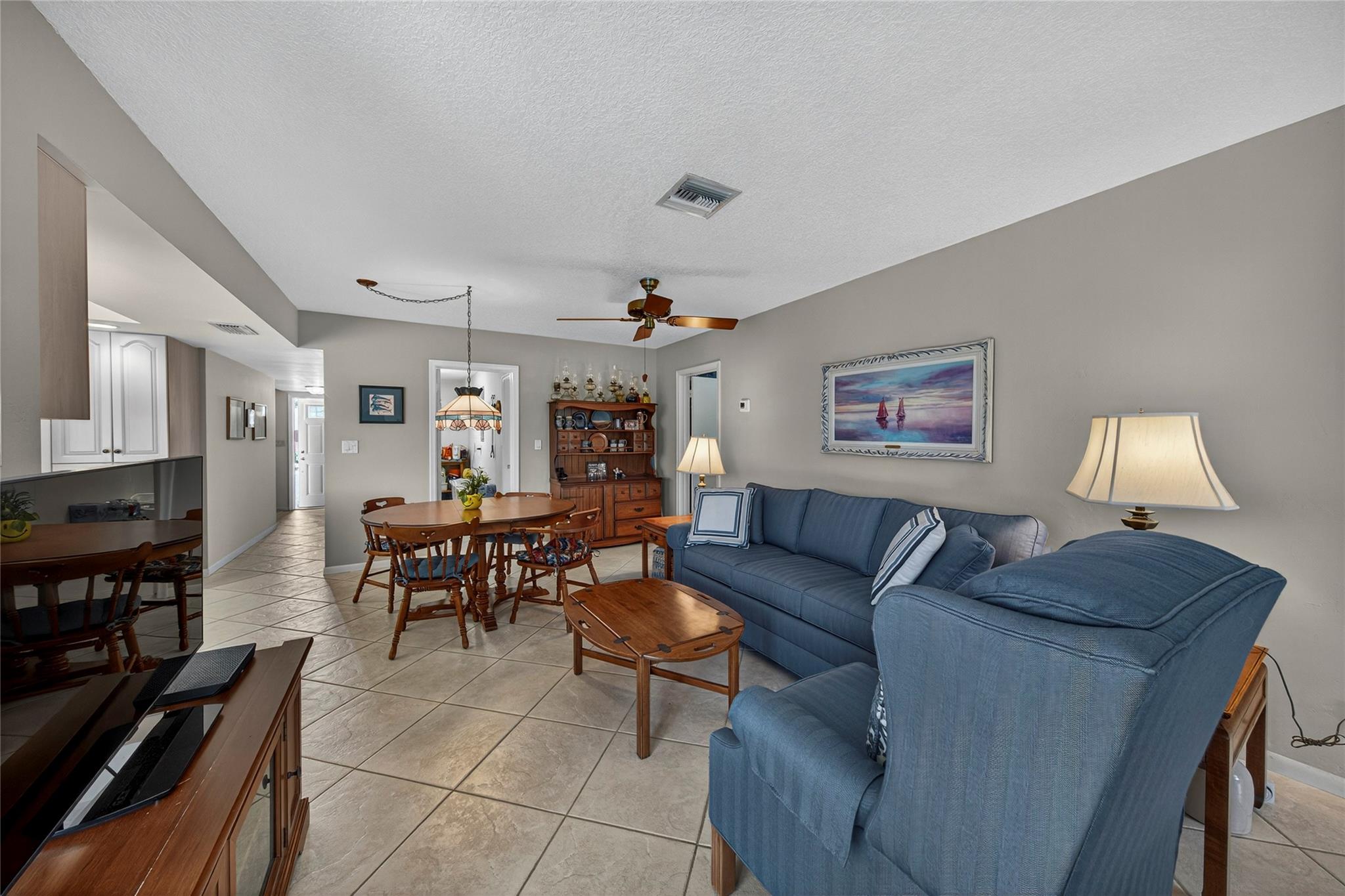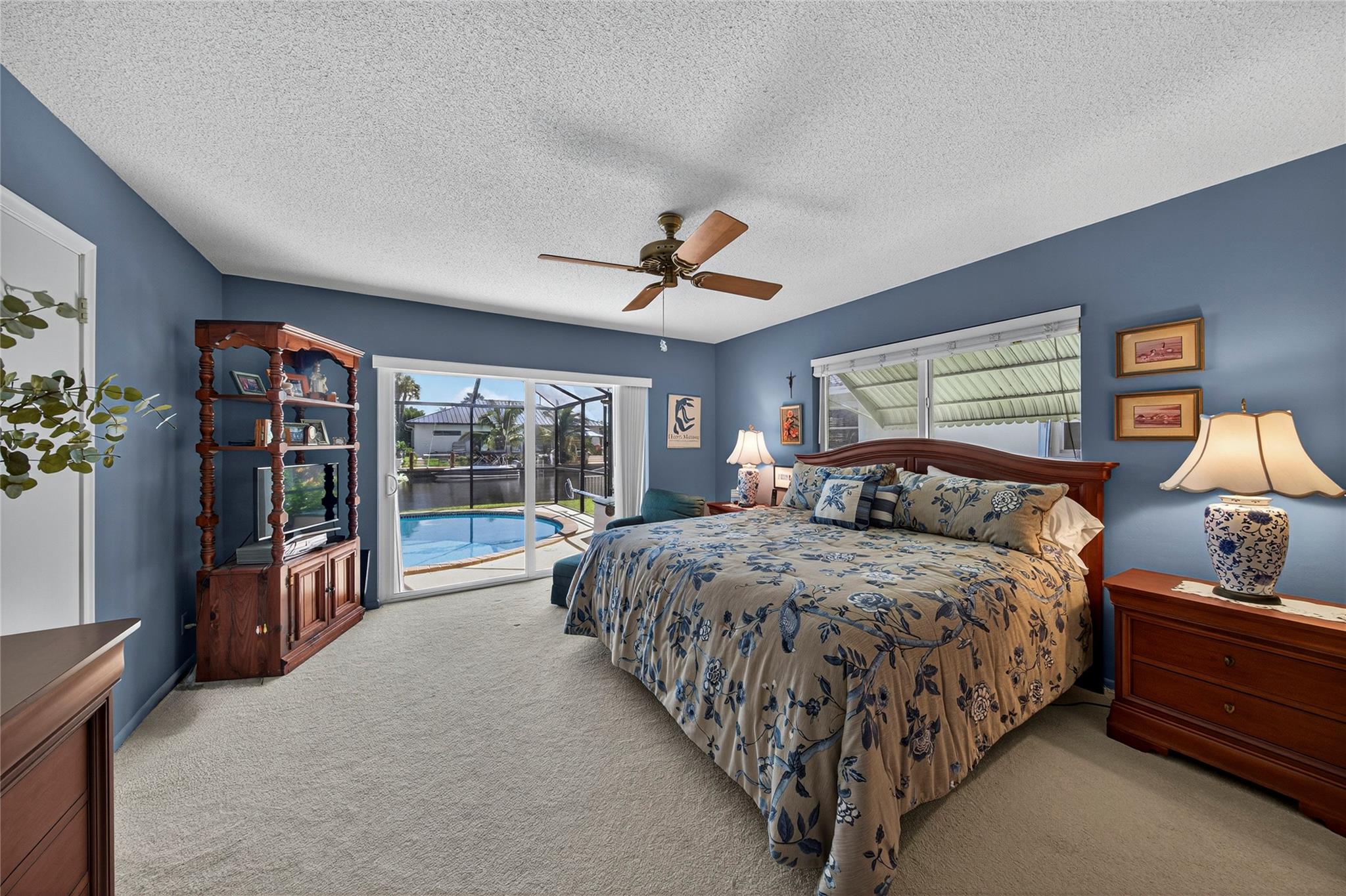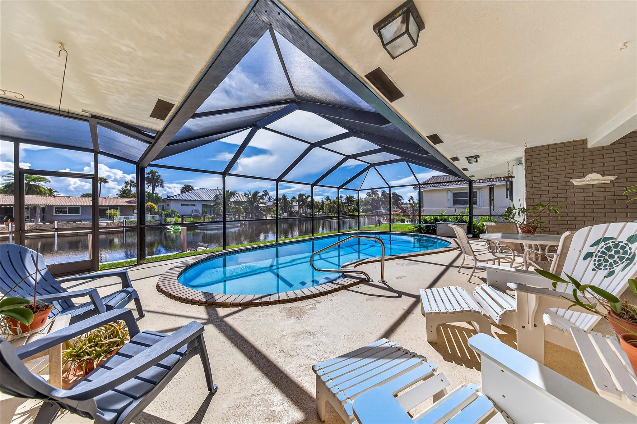 Well maintained 4 bedroom home with 2 original bathrooms, 2 car garage, screened pool and 80 feet of water frontage, one fixed bridge to ICW. Dock is composite and includes boat lift. Roof recently replaced in 2024, split package A/C units. Interior & exterior electric panels updated 2018 including generator hookup. Impact windows and doors. Kitchen is older but not original, opens to family room. Formal dining room in living room. Fourth bedroom connects to primary suite, ideal as an office, gym or nursery.