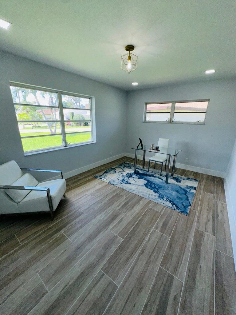**LOW HOA**Wow! Make this your winter home or full-time residence! MOVE-IN ready! Make this 3 bed/2 bath home updated with MODERN TOUCHES. CATHEDRAL CEILIINGS, SPACIOUS KITCHEN open living spaces, WATERFALL QUARTZ COUNTER and SOFT CLOSE CABINETRY. MODERN BATHROOMS with FLOATING VANITIES, PEBBLESTONE SHOWER FLOOR as well as MARBLE-LOOK WALL TILES. Gorgeous WOOD-LIKE TILE FLOORS give the feel of a beach cottage. GLOBE CHANDELIERS and UNIQUE FIXTURES complete this homes elegance. Minutes to shopping, restaurants, beaches and nightlife of Atlantic Ave and Delray Marketplace. Pine Tree Village 55+ is a quiet enclave offering social events, pickleball, clubhouse, pool, fitness center. **FURNITURE NEGOTIABLE**