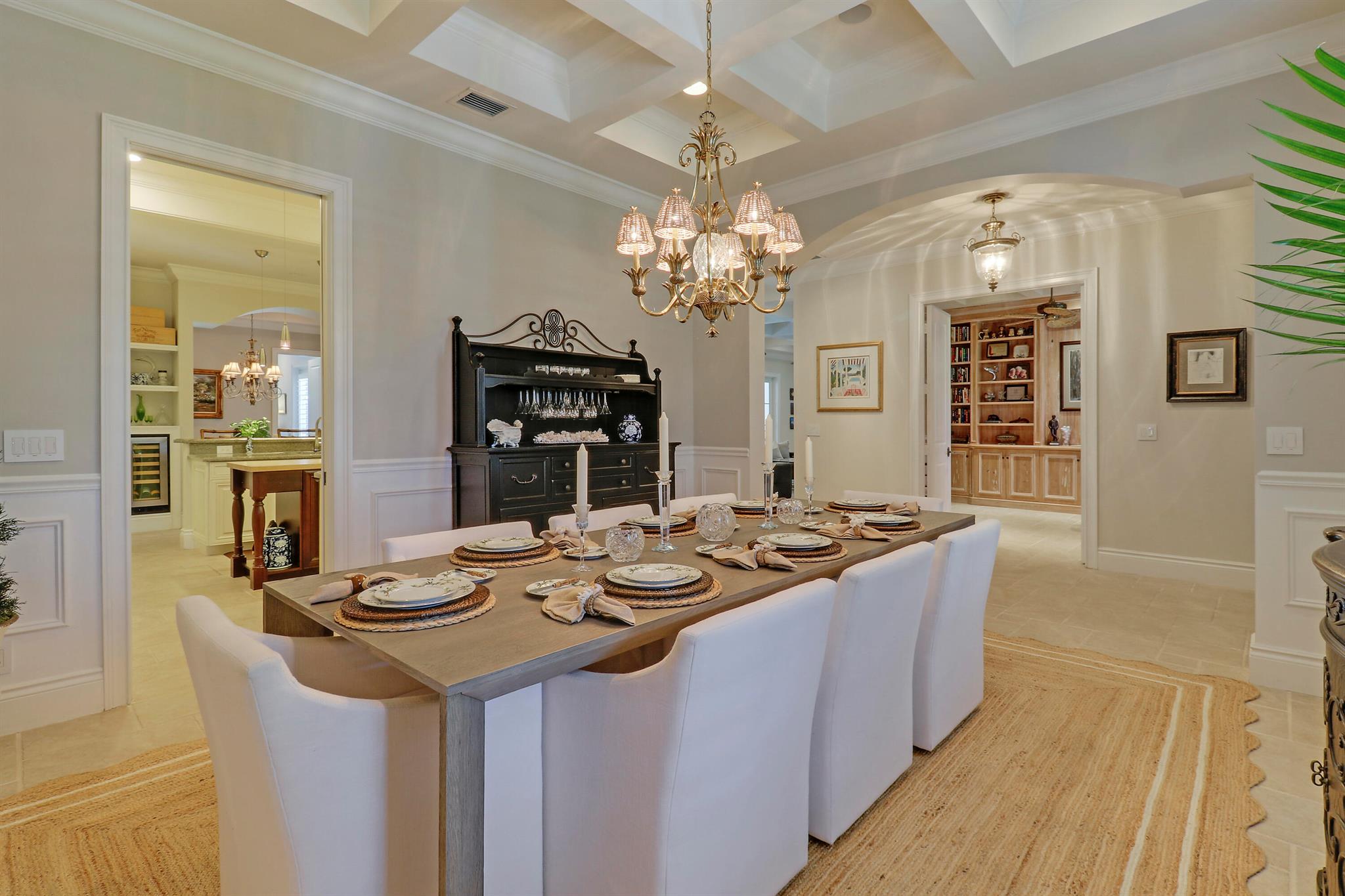 Welcome to 10841 SE Arielle Terrace, an exquisite residence nestled in the exclusive gated enclave of Waters Edge. This elegant 4-bedroom, 3.5-bath home with a private office blends timeless architecture with refined modern comforts. From the moment you step inside, you're greeted by soaring ceilings, custom millwork, and expansive windows that bathe the interiors in natural light. The chef's kitchen features high-end appliances, custom cabinetry, and a spacious island perfect for entertaining. The master suite offers a serene retreat with a spa-like bath and direct access to the lanai. Step outside to your private pool oasis, where spacious outdoor living provides the perfect setting for year-round relaxation and gatherings. Thoughtfully landscaped and meticulously maintained, this home