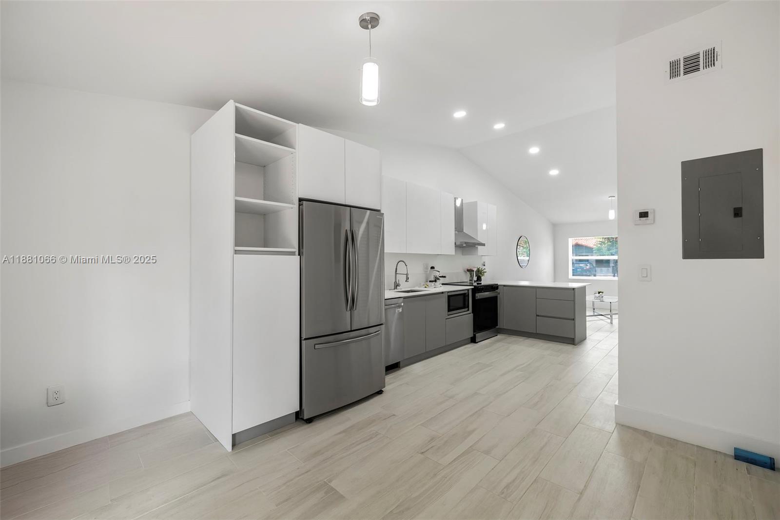Gorgeous 2BR/1BA Hialeah Home – Fully Renovated, Move-In and Relax - Rarely available, this two-bedroom, one-bath gem sits on a quiet, tree-lined street. Fully remodeled with fresh interior/exterior paint, new plumbing and electrical, luxury Spanish tile floors, and vaulted ceilings. The modern kitchen features wood cabinetry, quartz countertops, and stainless-steel appliances are included. The bathroom has contemporary finishes. Spacious backyard perfect for entertaining or gardening. Prime location across from Bucky Dent Waterpark which is a 25-acre park with swimming pools, 30 ft waterslides, sports fields, a recreation center & gymnasium. Close to restaurants, shopping, schools, banks, and expressways—all with no HOA! Send offers to agent email.