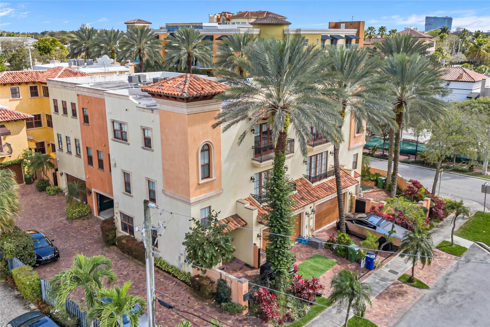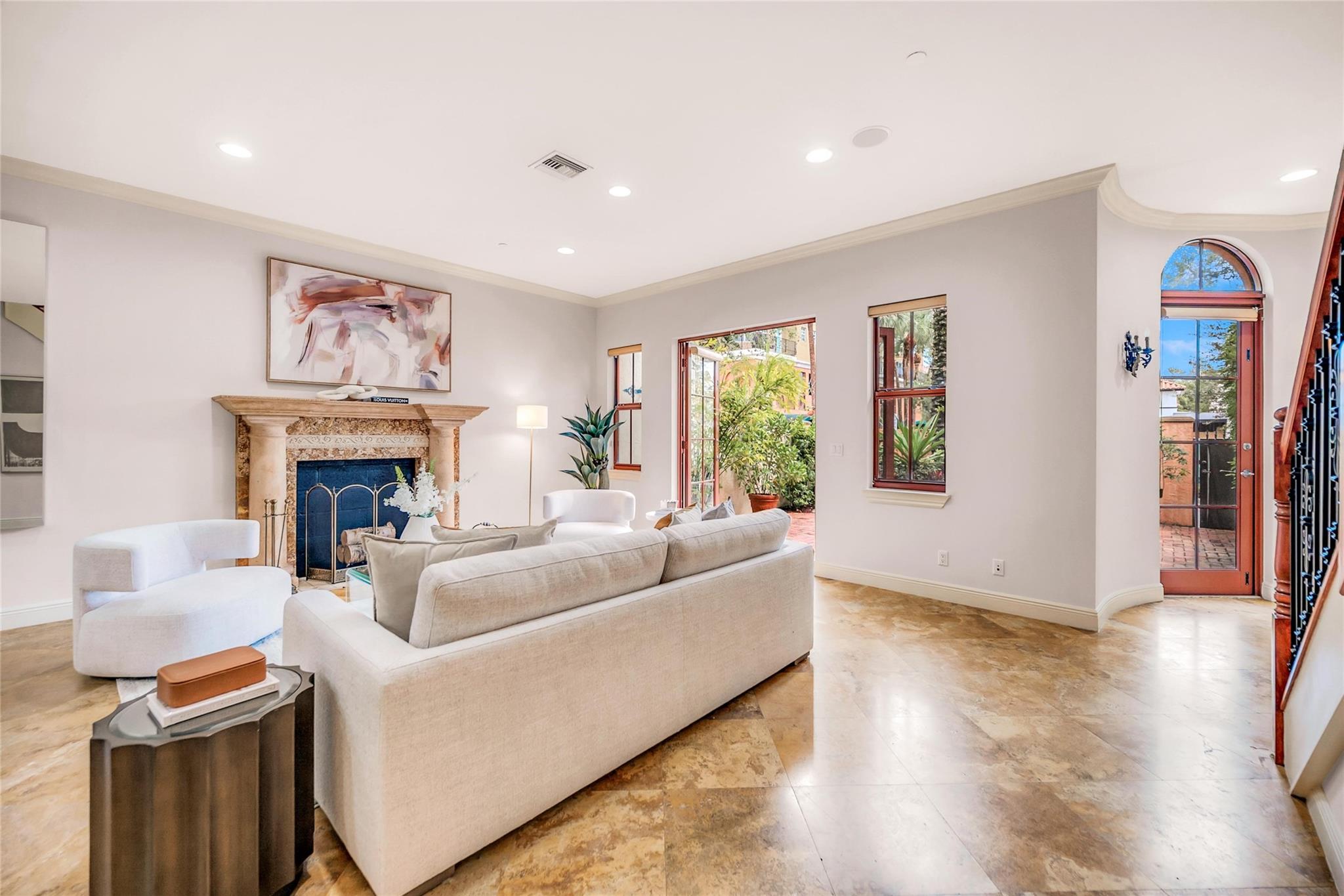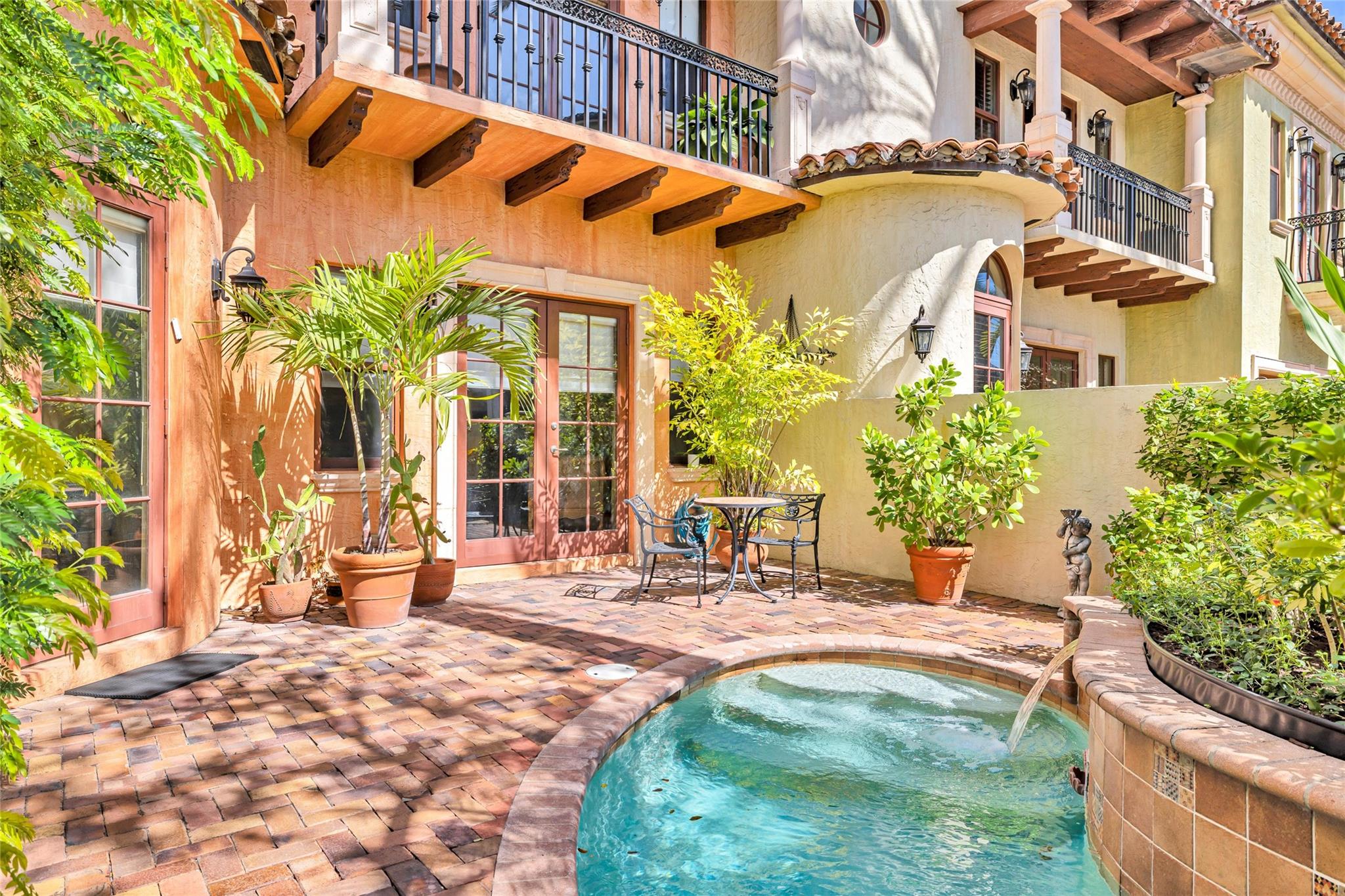 Venetian-Inspired Townhouse in the Heart of Las Olas! Beautiful Venetian-style townhouse, located just steps from vibrant Las Olas Blvd. 1st floor offers open-concept living, with a gourmet kitchen with high end appliances, gas cooking, a spacious living/dining area, powder room, and direct access to a charming walled courtyard with pool. A 2-car garage and private elevator add convenience. The 2nd floor boasts two beds and baths, plus a large family room that can easily be converted into a 2nd primary suite with its own private balcony. 3rd floor has custom built-in office for 2, ideal for working from home, and a large primary suite with spa-like bath, walk-in closet, and large veranda for morning coffee The ultimate in walkability, w/ world-class dining, shopping, at your doorstep.