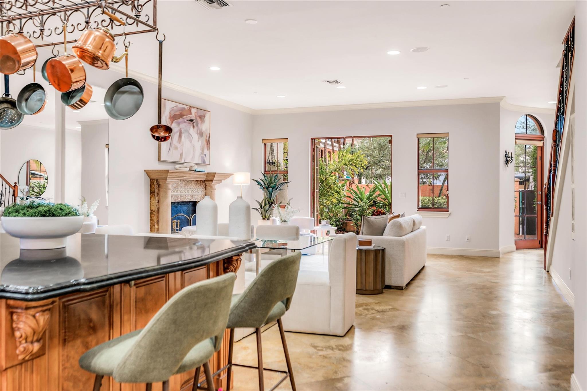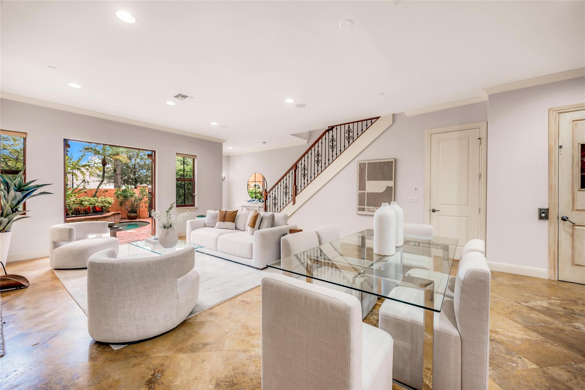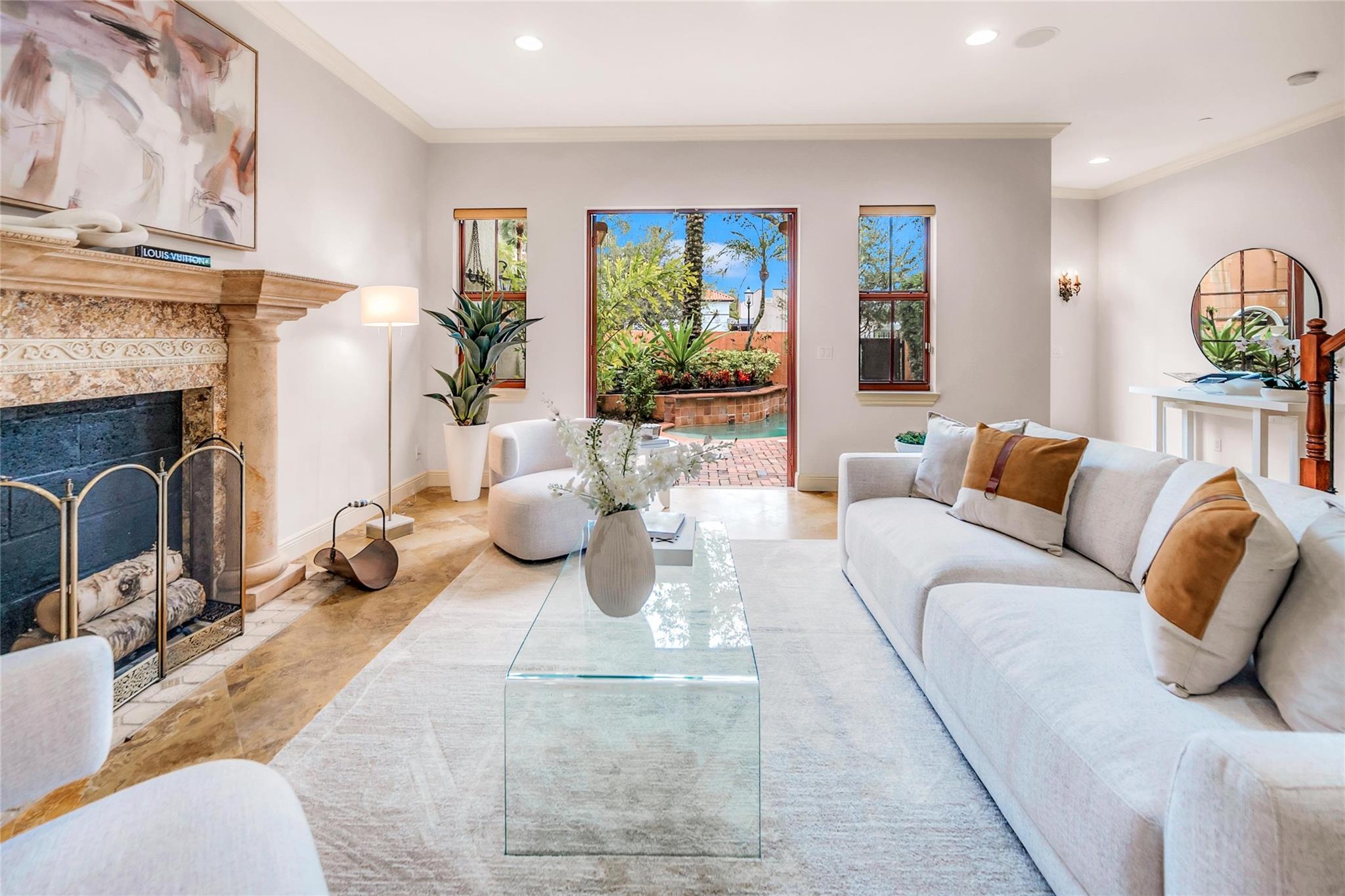 Venetian-Inspired Townhouse in the Heart of Las Olas! Beautiful Venetian-style townhouse, located just steps from vibrant Las Olas Blvd. 1st floor offers open-concept living, with a gourmet kitchen with high end appliances, gas cooking, a spacious living/dining area, powder room, and direct access to a charming walled courtyard with pool. A 2-car garage and private elevator add convenience. The 2nd floor boasts two beds and baths, plus a large family room that can easily be converted into a 2nd primary suite with its own private balcony. 3rd floor has custom built-in office for 2, ideal for working from home, and a large primary suite with spa-like bath, walk-in closet, and large veranda for morning coffee The ultimate in walkability, w/ world-class dining, shopping, at your doorstep.
