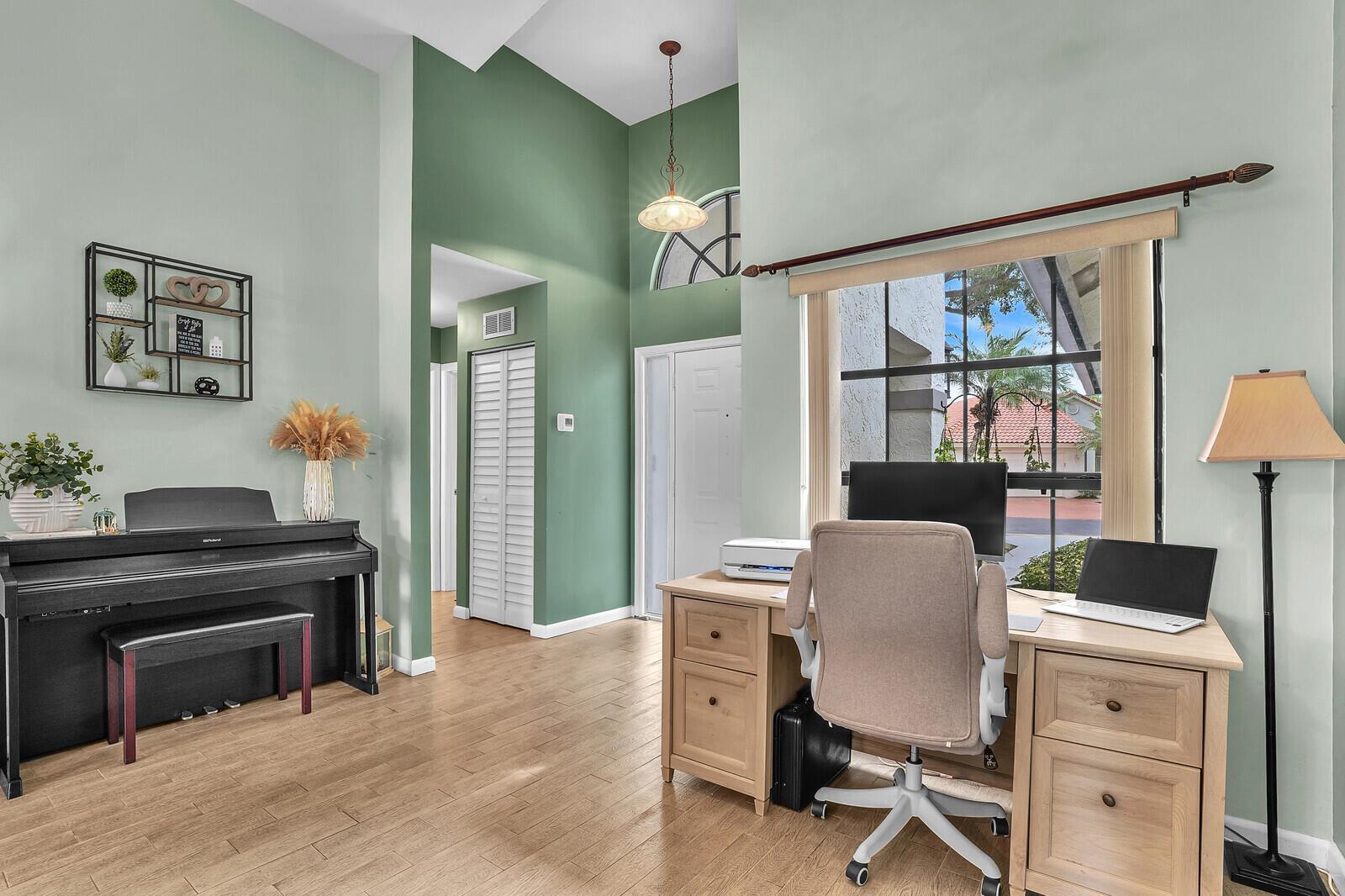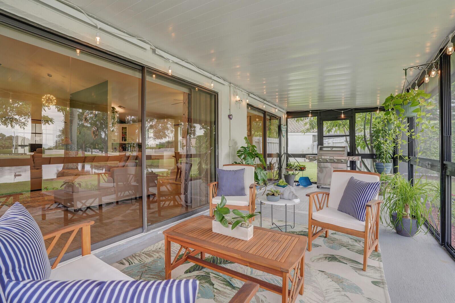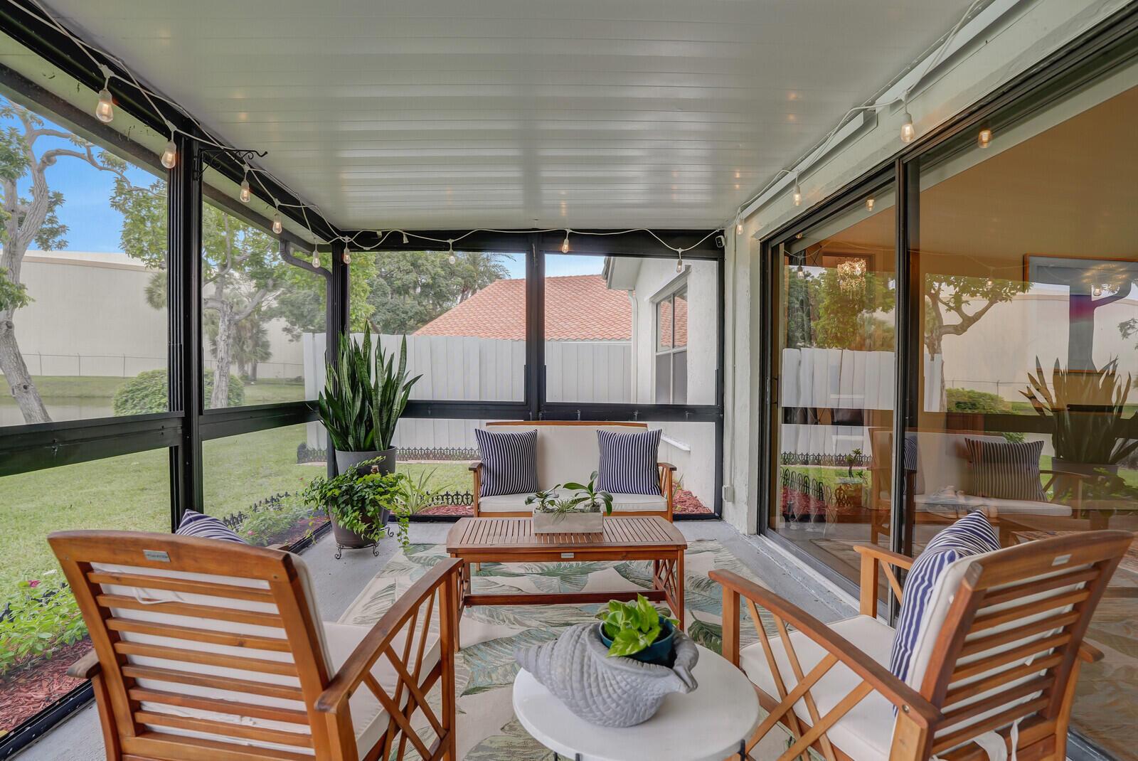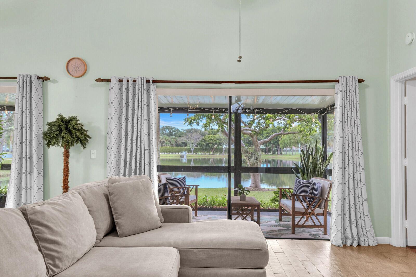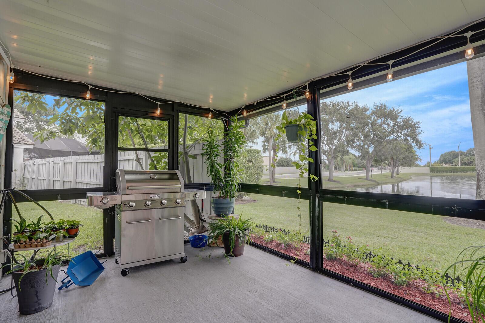 Meticulously Maintained 2-Bedroom Home with Water Views in Gated CommunityEnjoy peace of mind with a newer roof, A/C, and water heater in this beautifully maintained 2 bedroom, 2 bathroom home, ideally situated on a rare oversized lot with tranquil water views from the living room, dining room, and primary bedroom. This thoughtfully designed home features a split-bedroom layout, offering enhanced privacy with each bedroom enjoying access to its own living space -- ideal for guests, a home office, or multi-generational living.The updated kitchen and stylish flooring create a warm and elegant atmosphere throughout. Step outside to your private screened-in patio, perfect for relaxing or entertaining while taking in the peaceful water views. Also has a shed out back for extra storage