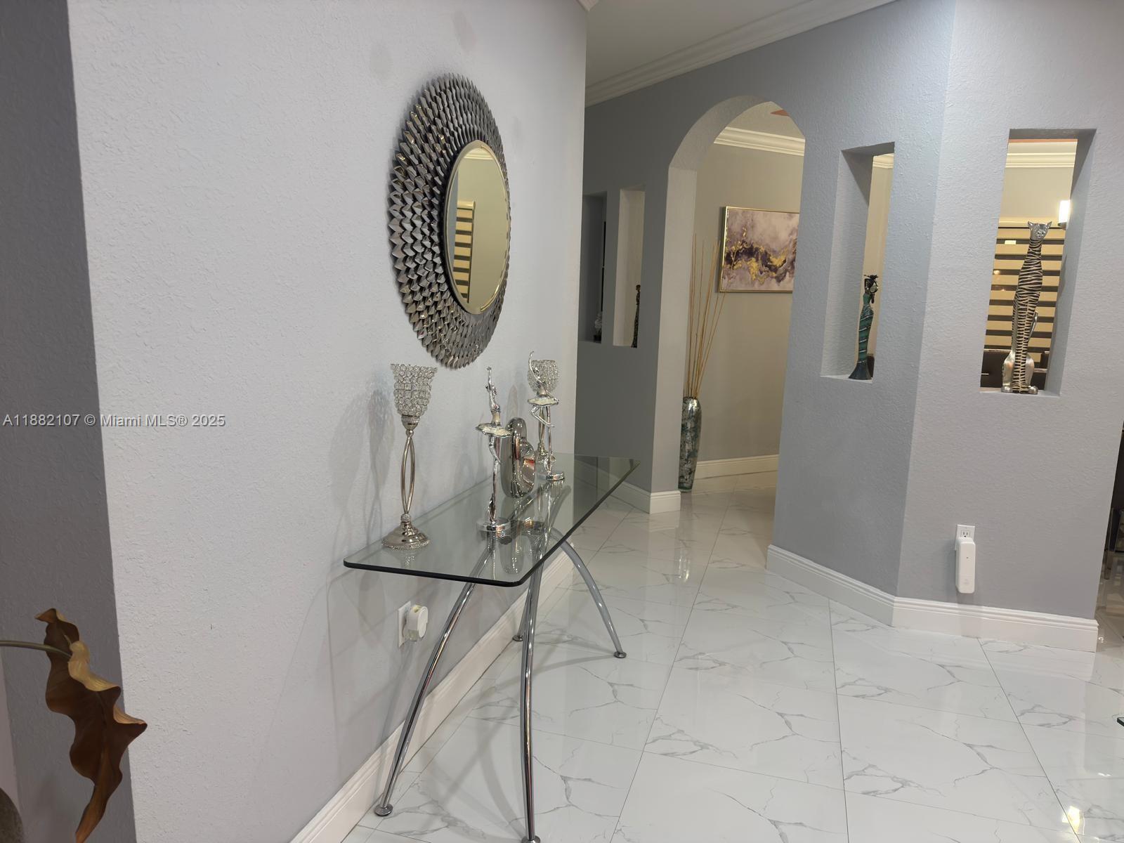 << Sellers are ready to relocate, MOTIVATED to sell>> Corner lot Home NO HOA. It features 4 Beds 2.5 baths, and a 2-car garage. Porcelain tile throughout home, new modern sleek kitchen cabinets and stainless steel appliances. A spacious primary room with high ceilings adding elegance, freshness, and walk-in closet. Bathroom with modern finishes and a European touch glass stand-up glass shower door. All the bathrooms have been remodeled. Impact windows and doors, CUSTOM zebra window treatments. 5 tons A/C unit approx. 2024. Garage has been divided as man's cave, office or room but it can be converted back. Travertine-tiled throughout the entire backyard. Spacious outdoor kitchen perfect for entertaining. Room for a pool and also for boat lovers.