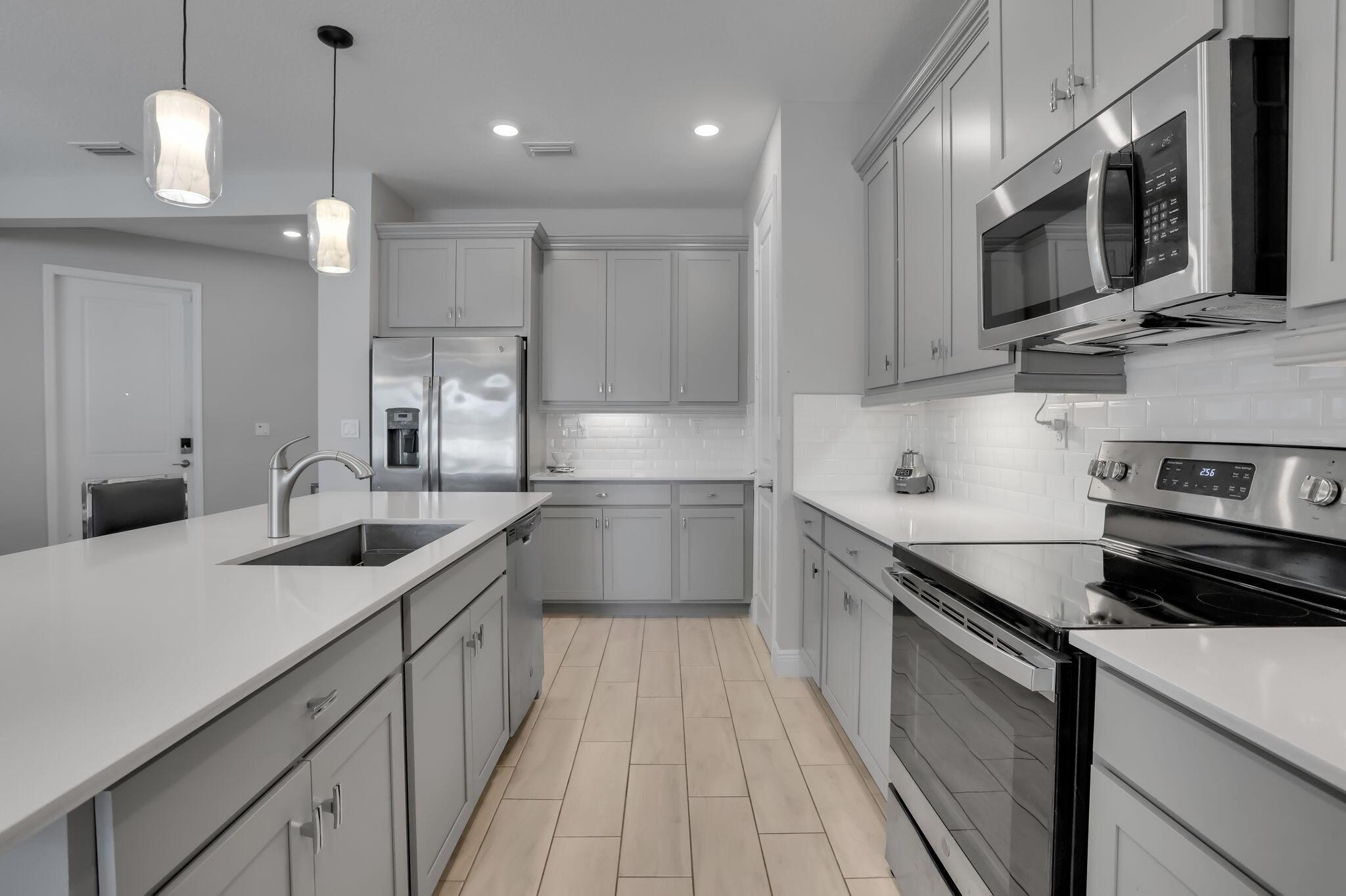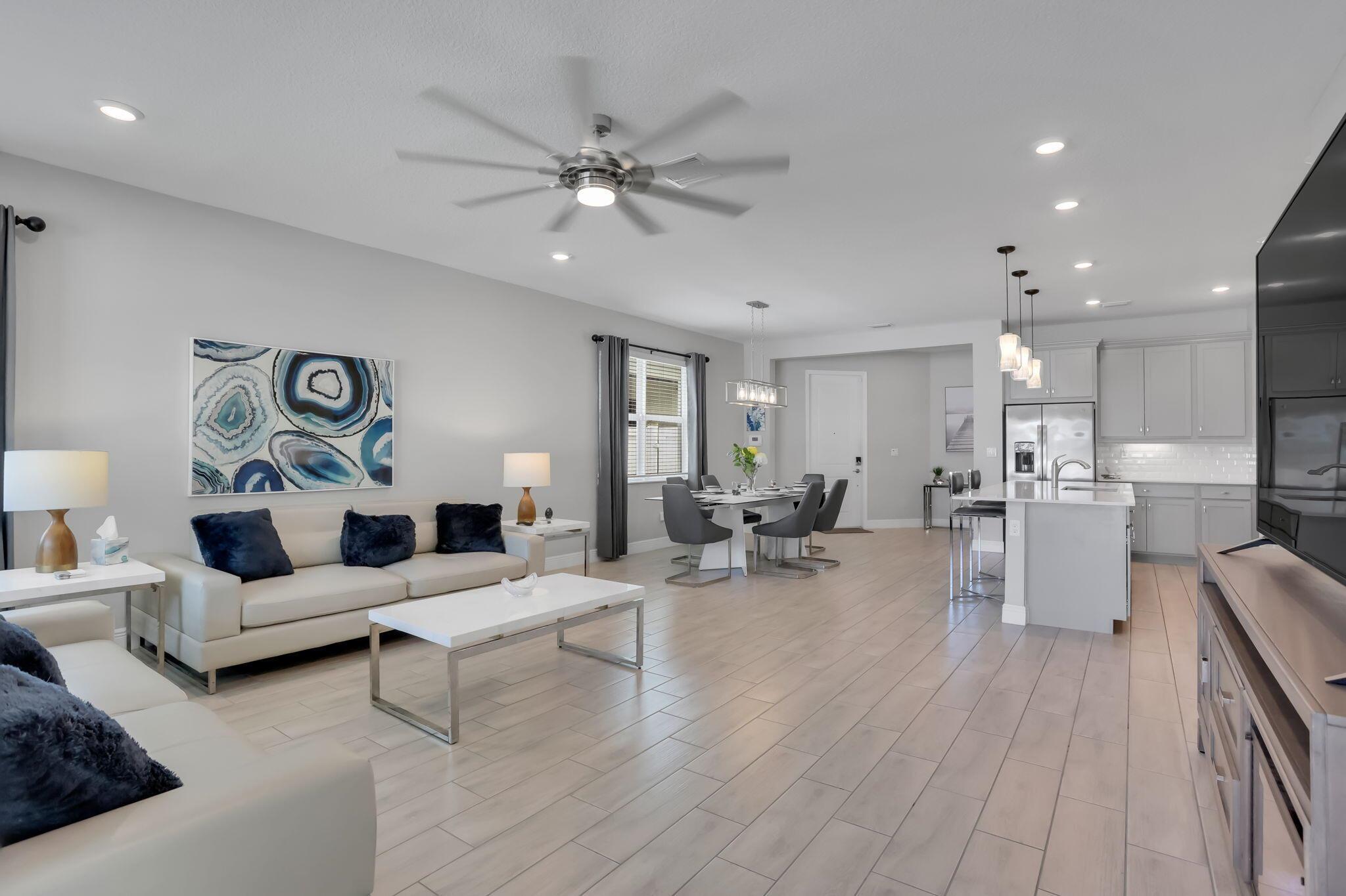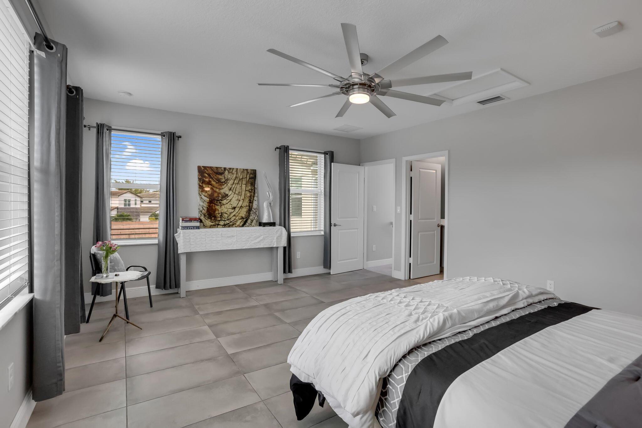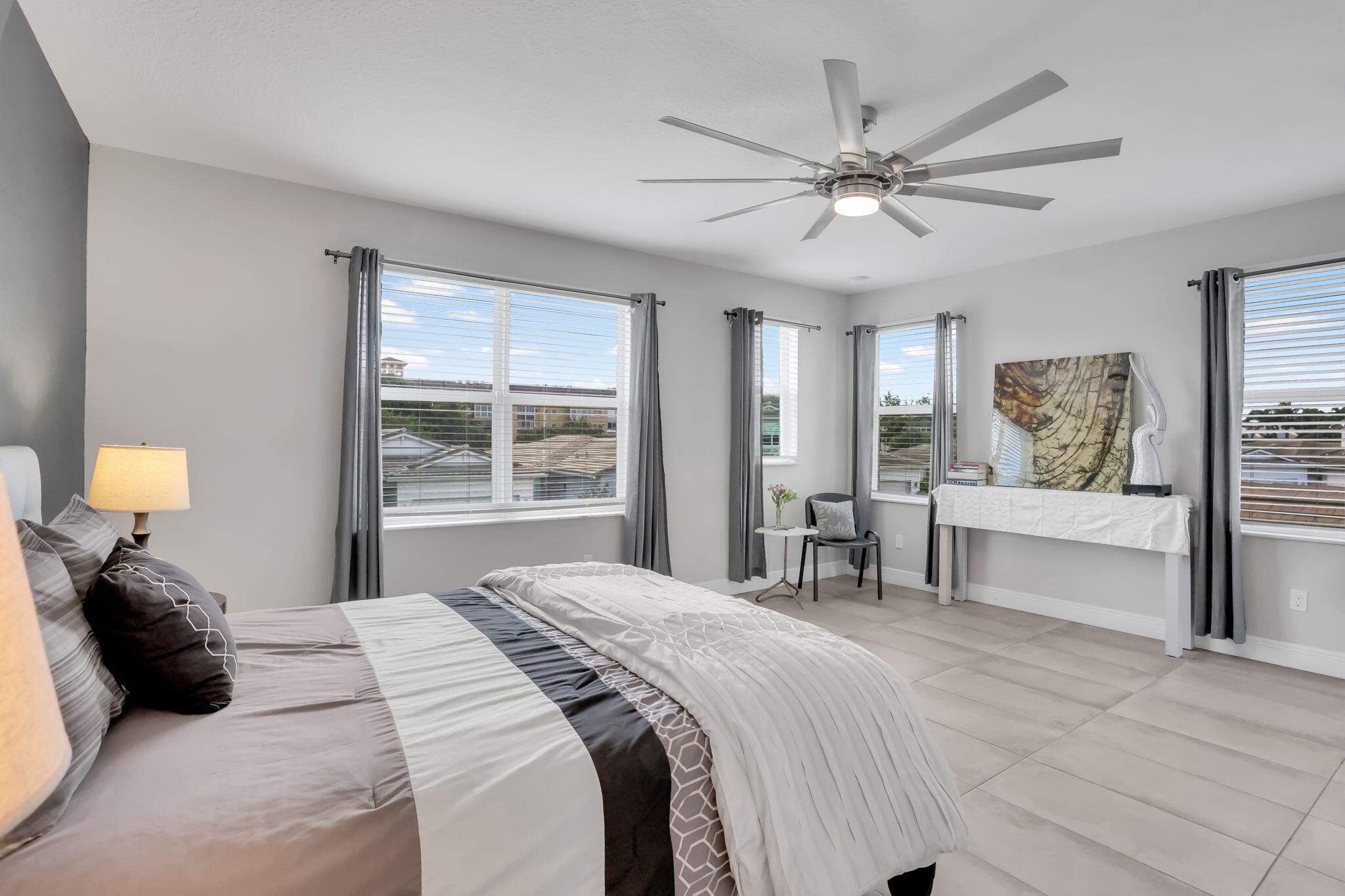 The desirable Cisne model features 4 BR, 3 BA, and a highly sought-after dual-Primary Suite layout. The main level features an open floor plan with stainless steel appliances, quartz countertops, pantry, and 42'' wood shaker cabinets with crown molding. A split design places the primary suite on one side of the home, while the opposite wing includes 2 BR, a full bath, and laundry room. An expanded driveway, fully fenced private backyard, professionally applied 3M window tinting, and full impact protection. Upstairs, a massive second primary suite with walk-in closet and full bath provides exceptional flexibility as a guest retreat, playroom, office, or media lounge. Veleiros gated community offers resort-style amenities: Clubhouse, Pool, Fitness Center, Playground. BUYERS AGENTS WELCOME!