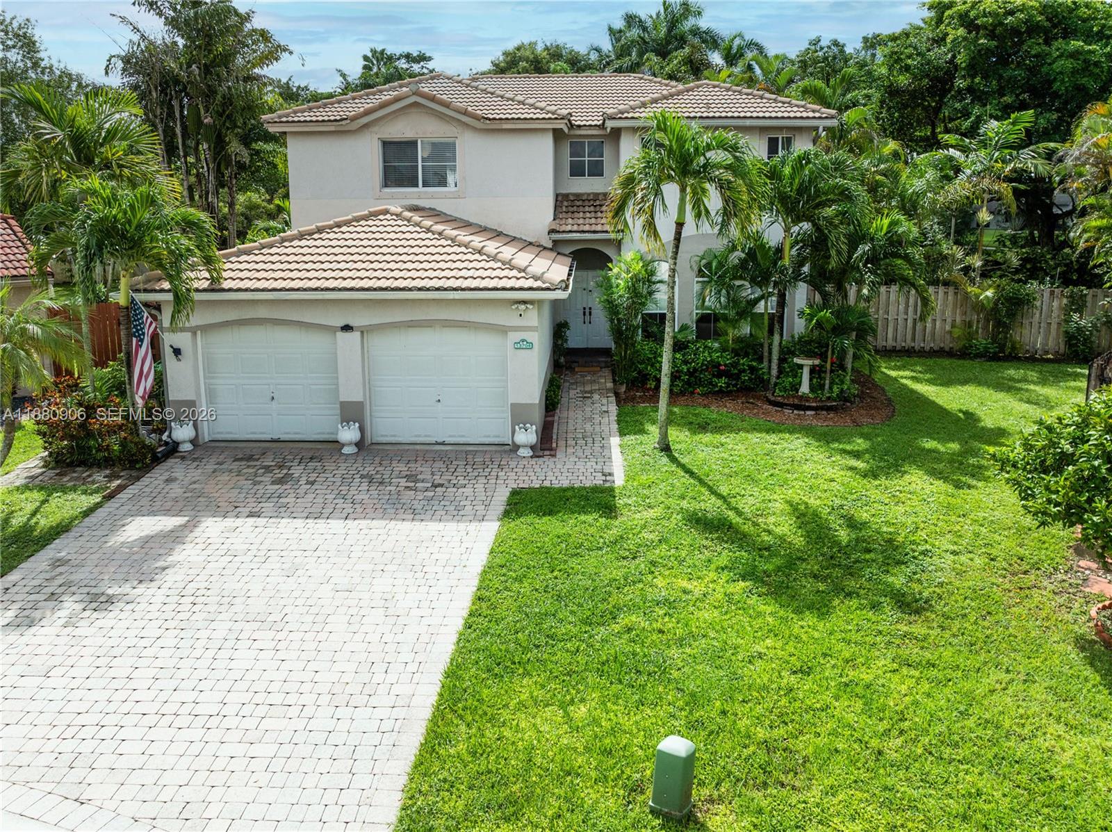 Beautiful 2-story residence 4 bedrooms, 3 full baths, and 2,466 sq. ft. of comfortable living space. Desirable gated community of Poinciana Parc, one of the largest lots at 10,148 sq. ft. of lush tropical beauty. A thoughtful layout includes 1 bedroom, 1 full bath on the first floor, a spacious loft upstairs can easily be enclosed to a 5th bedroom. Volume ceilings and abundant natural light enhance an open, airy feel throughout. Eat-in kitchen overlooks sparkling pool and garden, ideal setting for the nature lover seeking peace and privacy. Step outside to your private backyard oasis, perfect for entertaining or simply relaxing in a serene, tropical escape. Enjoy the convenience of living in the Shenandoah area, just minutes from major highways, shopping, dining, and top-rated schools.