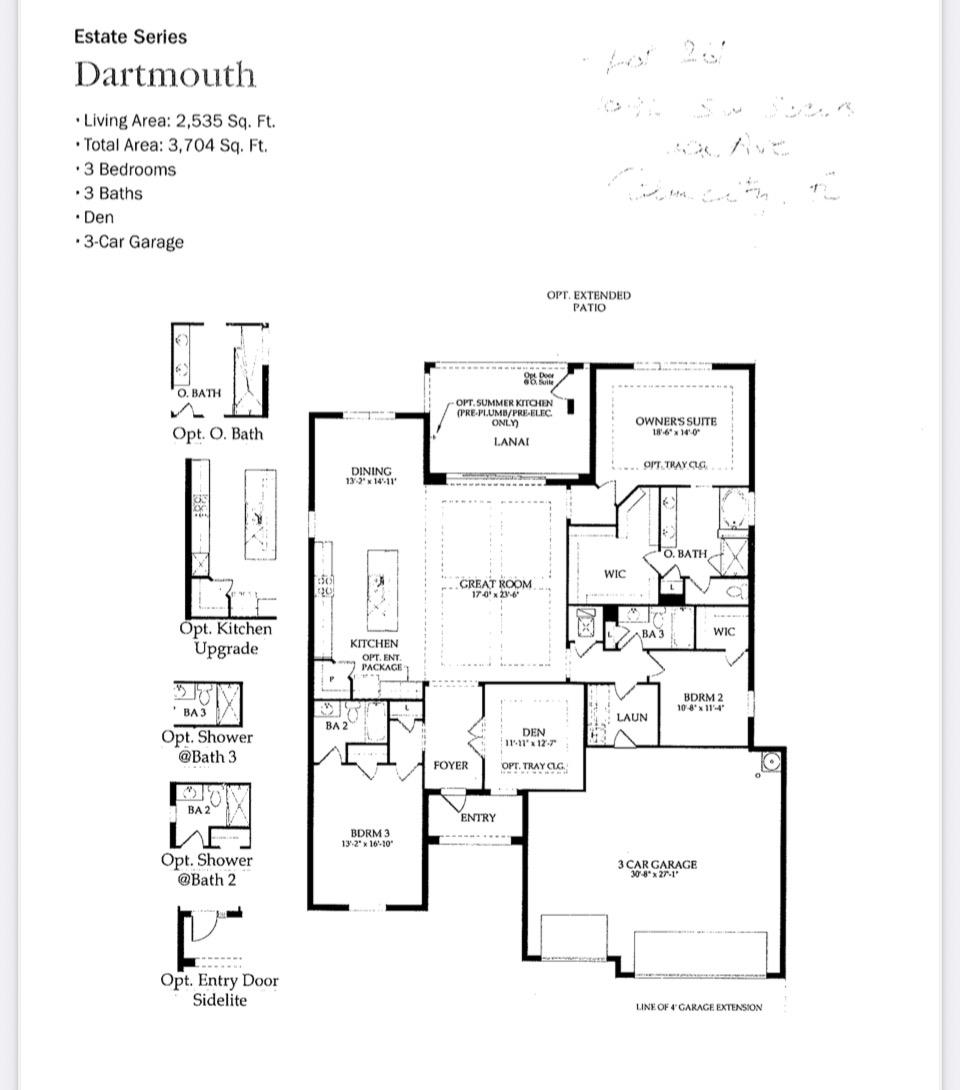 Located in the desirable Copperleaf community with an updated clubhouse! This Estate Series Dartmouth Model offers 3 beds, 3 full baths, a den, and a spacious 3-car garage. Enjoy volume ceilings and a coffered ceiling in the great room, which opens to a chef's kitchen with wall oven, microwave, under-cabinet lighting, large pantry, and a generous breakfast bar. French doors open to a versatile den--ideal as an office or library. The private 3rd bedroom with ensuite bath is perfect for guests. Retreat to the master suite with a huge walk-in closet. Outdoor living shines with a large screened lanai, brick paver patio, and fenced yard. New A/C, new stovetop, and new dryer add modern comfort.