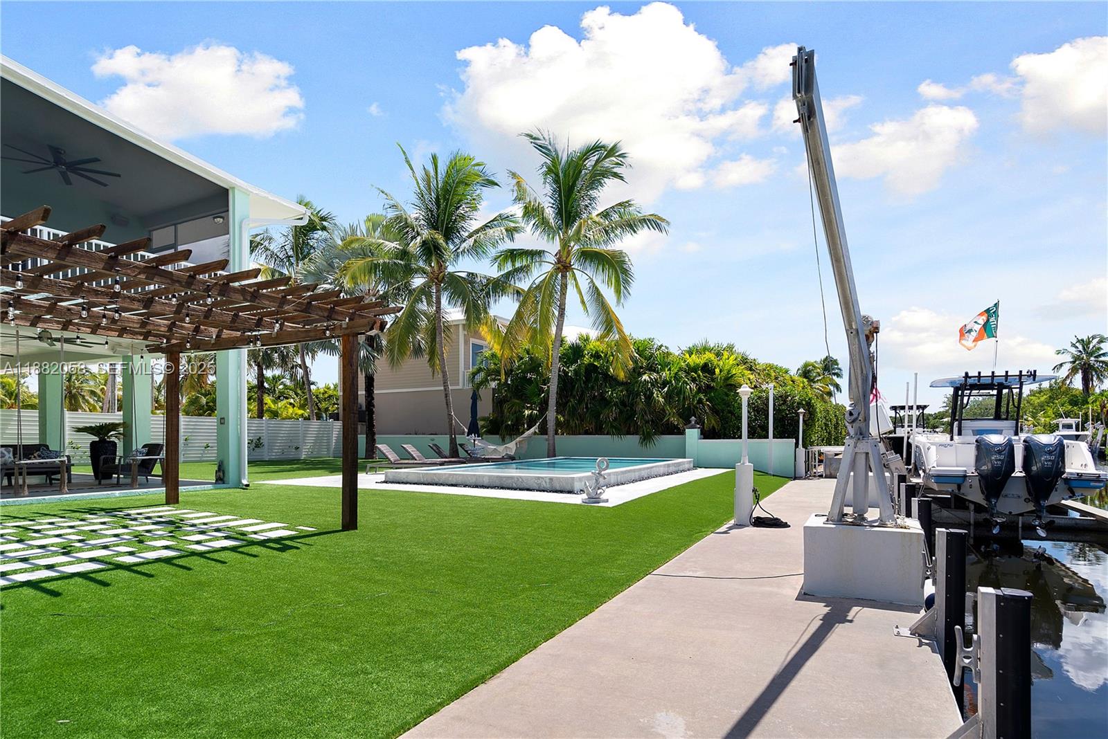 Welcome to your very own Florida Keys compound Set on an oversized 13,000 sq ft Key Largo lot, this private oasis blends style, space, and tranquility perfectly. Dive into the large swimming pool, outfitted with vibrant LED lighting, and a heater/chiller system. This 3-bedroom, 2-bath retreat thoughtfully updated and decorated with coastal flair, featuring a wraparound balcony and a large screened patio overlooking the peaceful 70 ft wide canal. Downstairs, you’ll find a 1/1 approx 720 Sq Ft—ideal for guests and entertaining. The property boasts 100 feet of waterfront frontage along a wide canal, anchored by a solid concrete deep-water dock equipped with a convenient 10K elevator boat lift. This lot spans 100 feet wide by 130 feet deep, fully secured behind two electric gates.