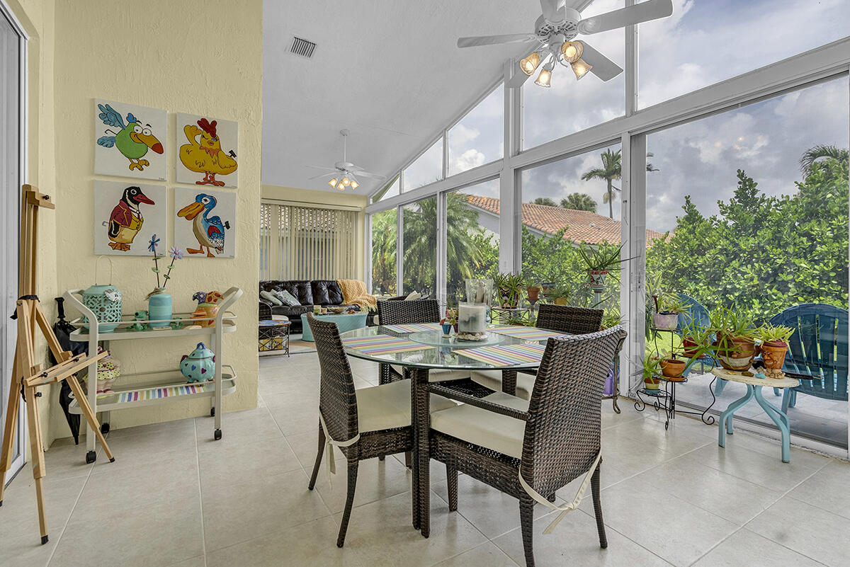 Welcome to this 3-bedroom, 2-bathroom home, where comfort meets style. Fully renovated bathrooms and a beautifully updated kitchen give this home a fresh, modern feel. The chef's kitchen boasts sleek new appliances, upgraded cabinetry with convenient pull-out shelves, and an open layout perfect for entertaining.Enjoy year-round comfort in the spacious lanai, now under air, ideal for relaxing or hosting guests. The high ceilings and strategically placed high hats create a bright, airy ambiance throughout the main living areas. A charming decorative wood wall in the family room adds warmth and character.