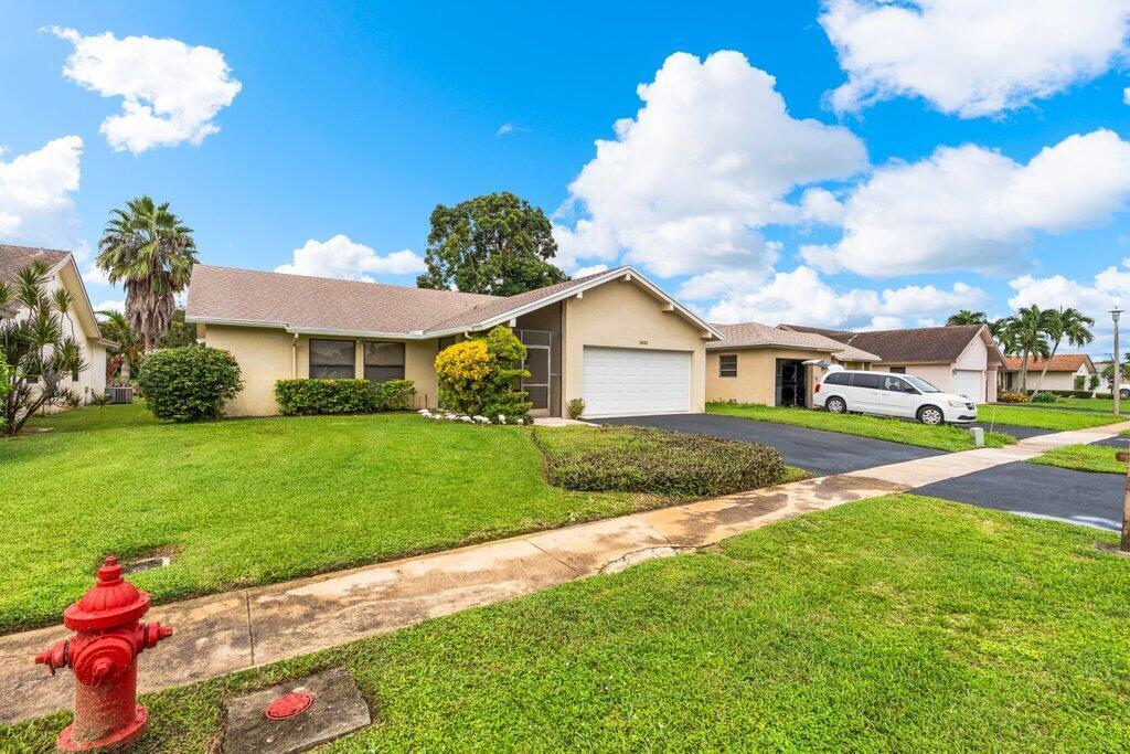 Welcome to this charming well-maintained 3-bed, 2-bath, single-family home in Greenbriar, Boca Chase (55+). This home offers 1,697 interior sqft of comfortable living space + a spacious 2-car garage. Step inside to find a bright and open layout with vaulted ceilings and tile flooring throughout. The updated kitchen connects seamlessly to the formal dining area, making it ideal for everyday living and entertaining. The primary suite features generous closet space and a private en-suite bath. A large Florida room opens to the backyard, where lush landscaping and serene canal views create the perfect setting to relax or host guests year-round. Additional highlights include a 3-year-old roof, low HOA fees, and a prime location just minutes from shopping, dining, golf, and parks.