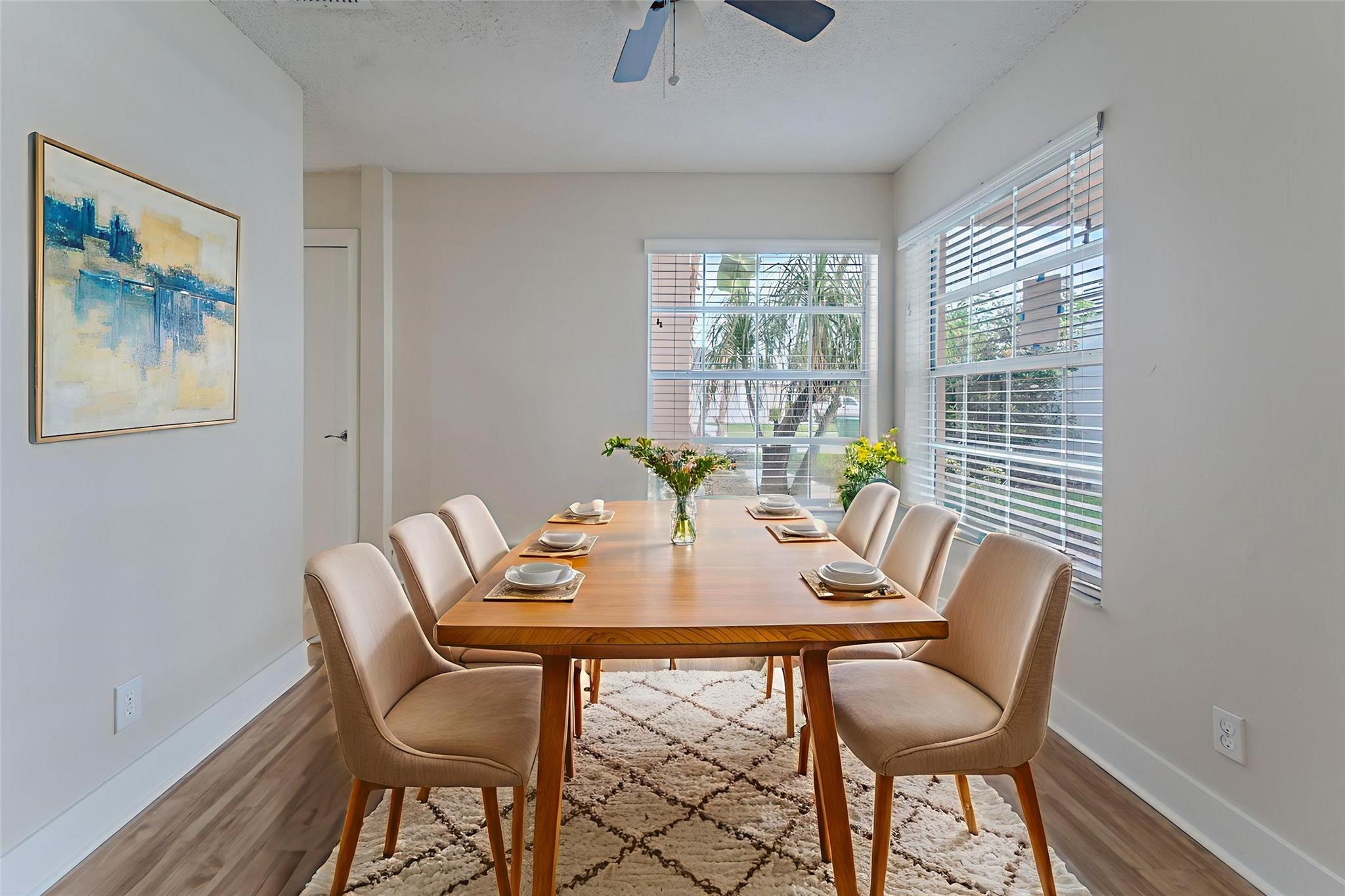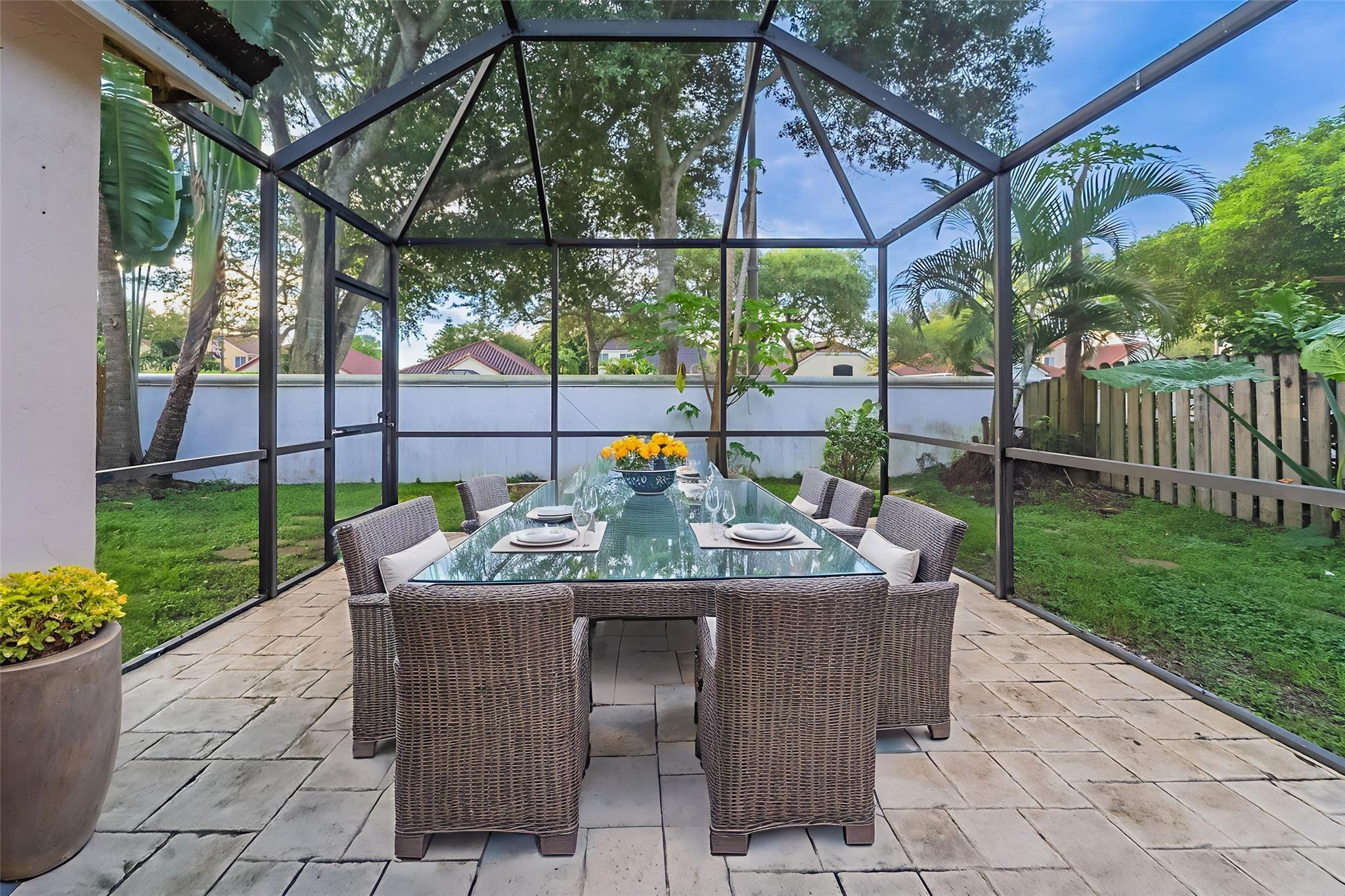 This beautiful two-story home offers 3 bedrooms and 2.5 bathrooms with a 2-car garage. The kitchen features a convenient bar and a breakfast area with a bay window, perfect for casual dining. French doors from the living area open up to a fenced backyard, while the enclosed back lanai provides additional space for relaxing or entertaining. Schedule a showing today!