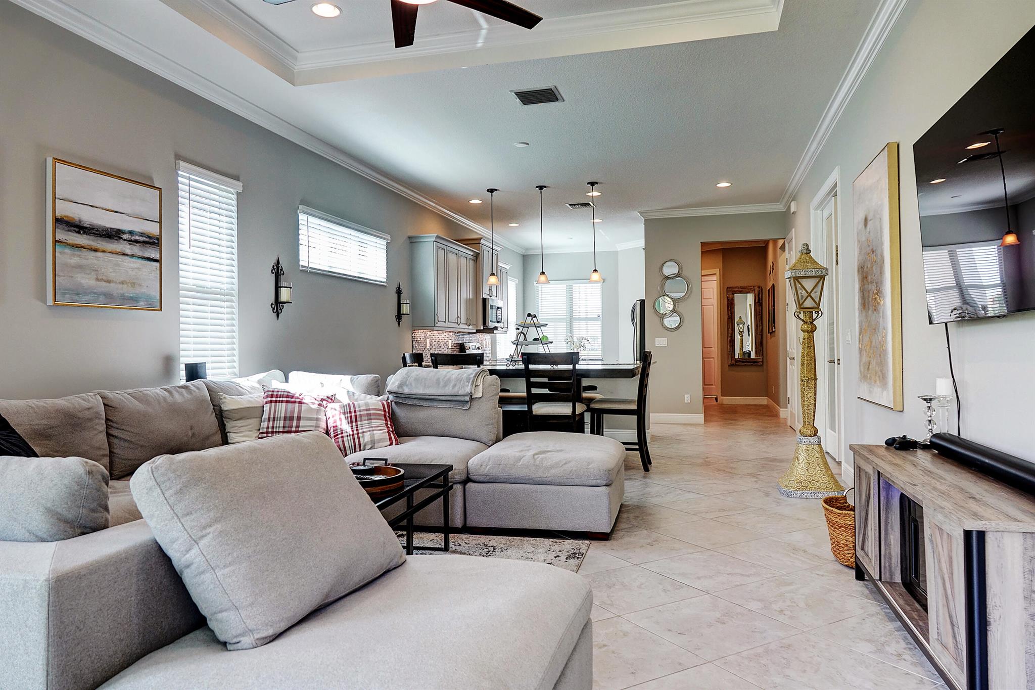 This single story newer home built in 2021 is located in the highly sought after community of PGA Verano located just off of Crosstown Parkway in St Lucie West. Very private backyard with lake views from your front door and kitchen. Upgrades galore including crown moldings, French door to separate den/3rd bedroom, tiled flooring in living areas, chef's kitchen with granite countertops, 42'' cabinets, & stainless appliances with eat-in area, and paved lanai. Move-in condition. Furnishings available separately.