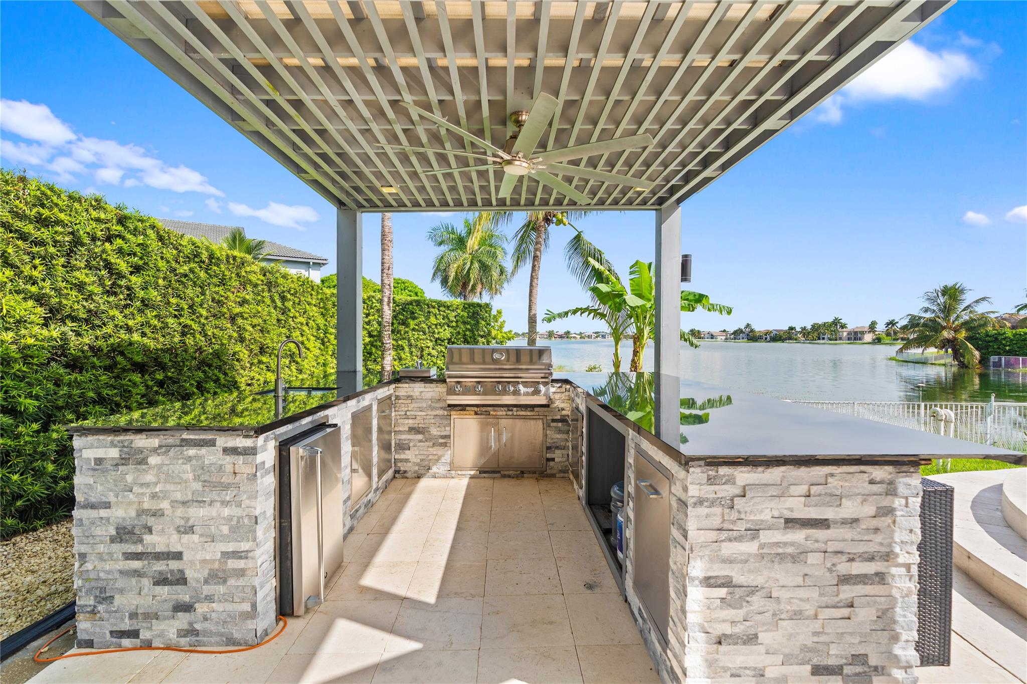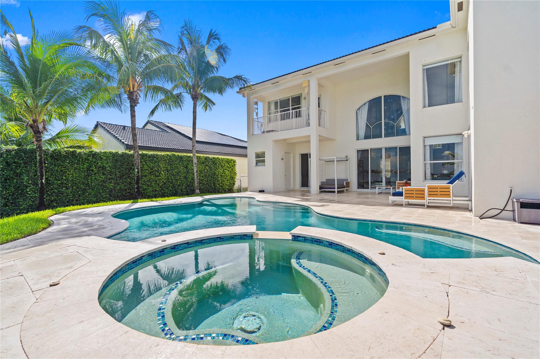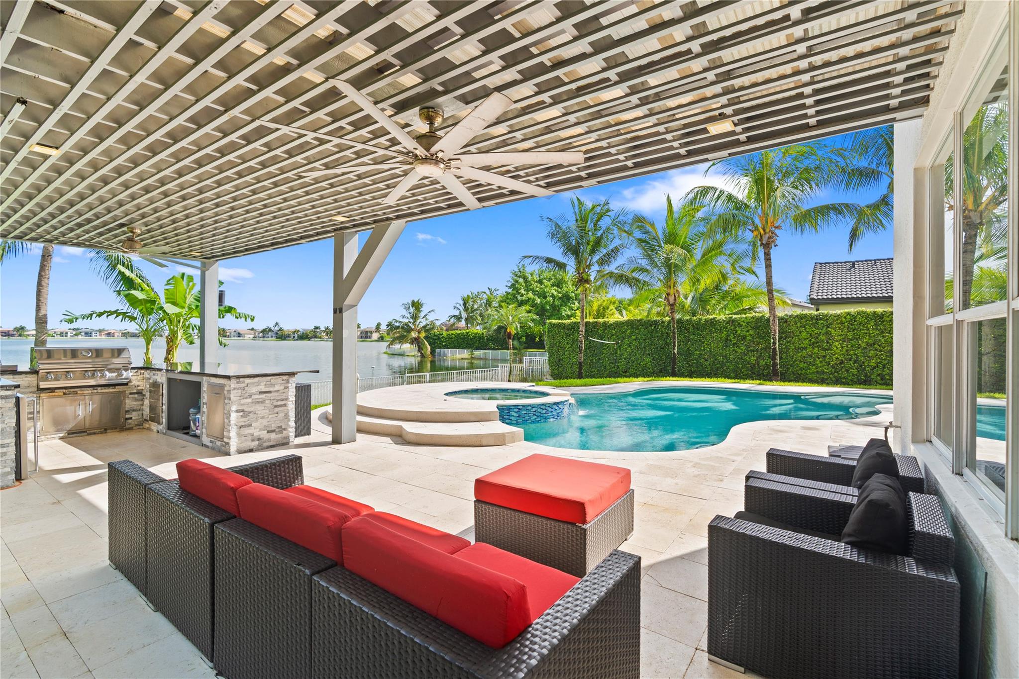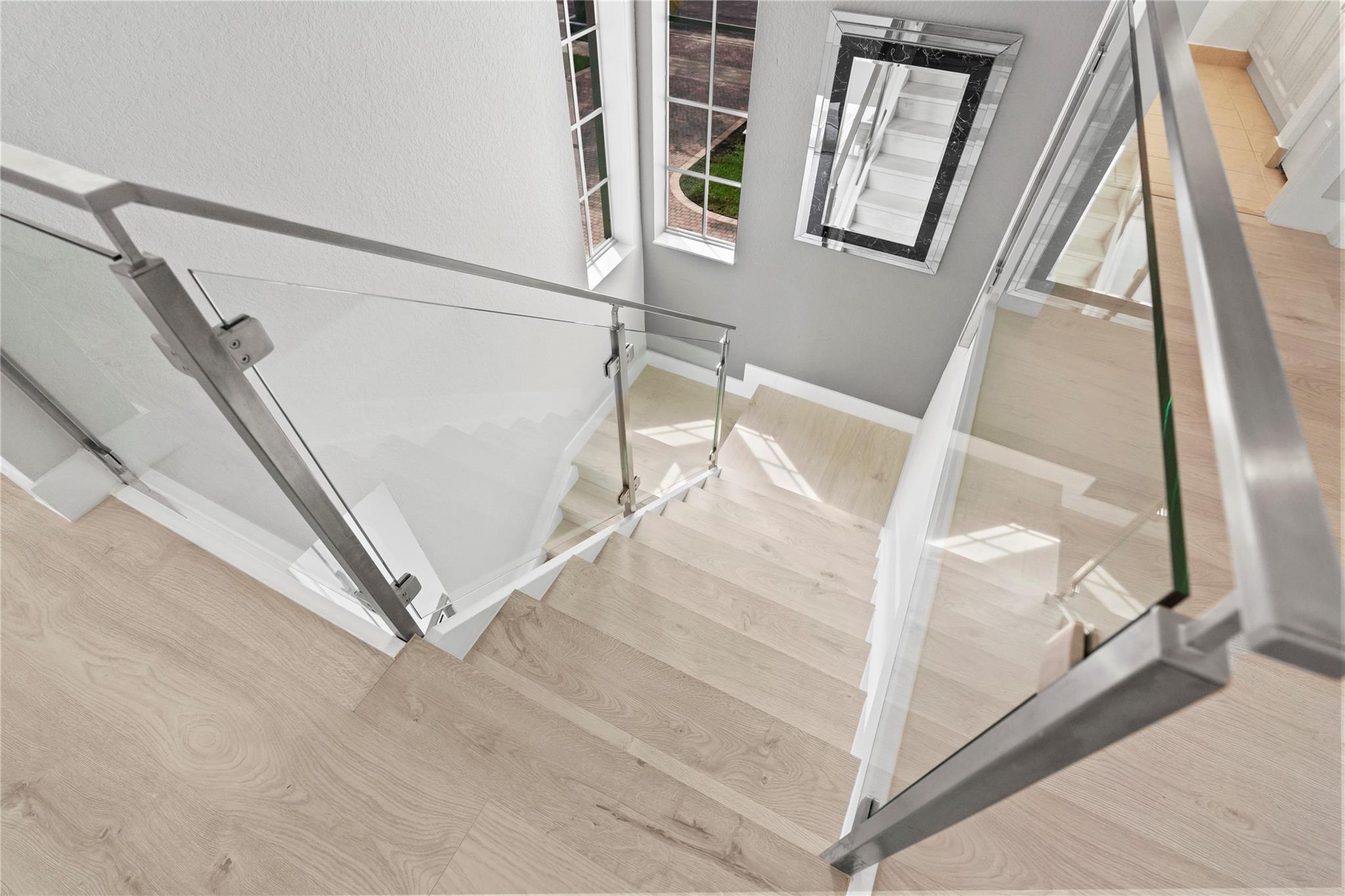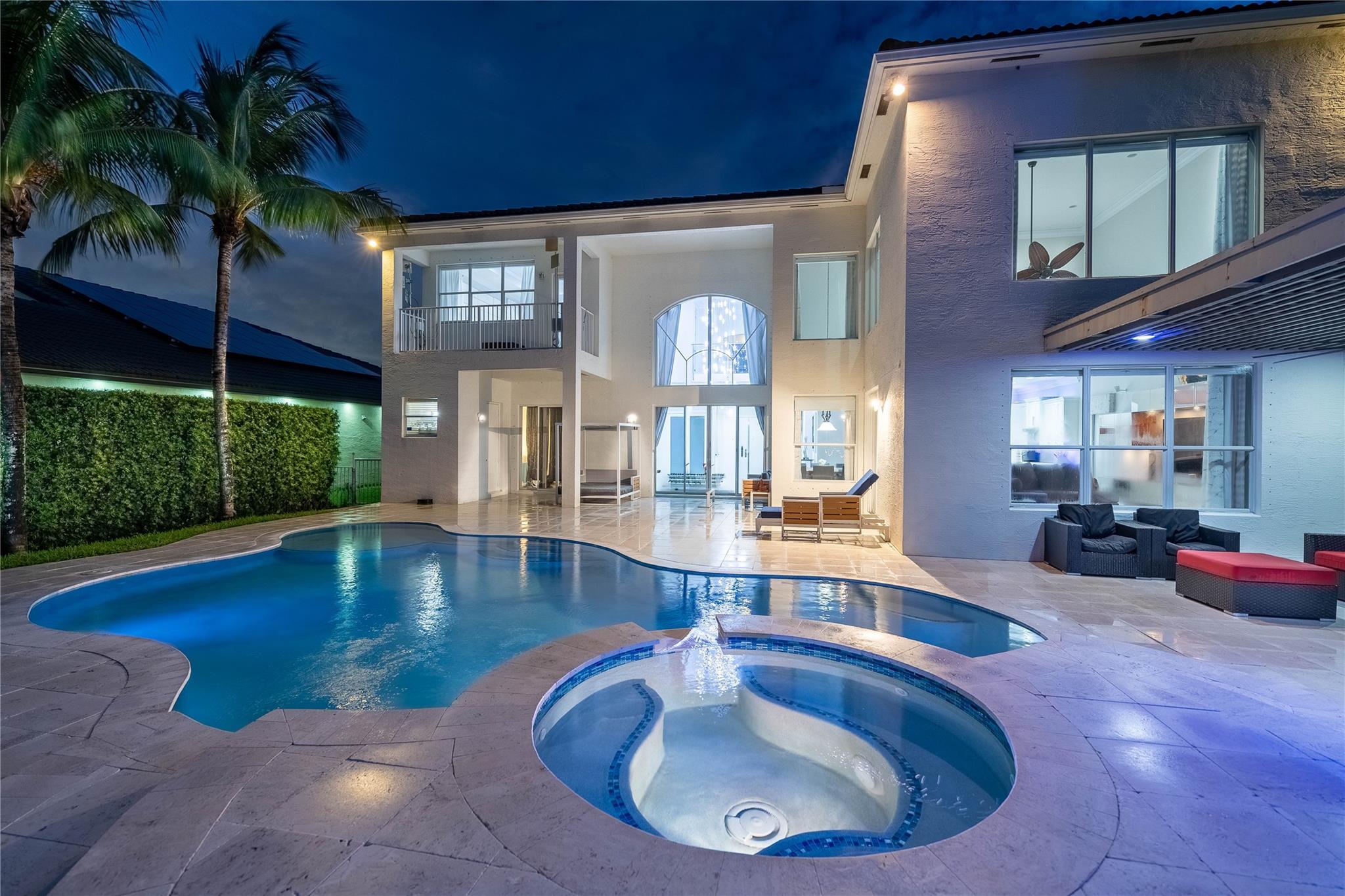 Step into contemporary elegance with this beautifully remodeled modern home, featuring 5bedrooms, 3.5 bathrooms plus den, one bedroom downstairs with a private bathroom and office, sleek vinyl flooring throughout and a glass staircase, new A/C unit and modern lighting,remodeled kitchen with quartz countertops, remodeled master bath. Enjoy outdoor living with a custom pergola, full outdoor kitchen, and oversized pool with travertine decking, moving ready and perfect for entertaining.