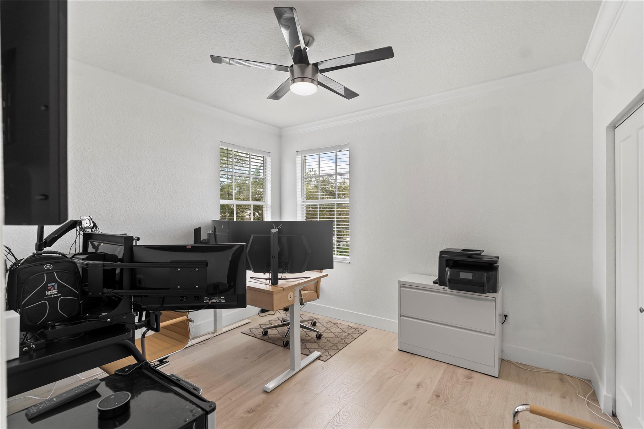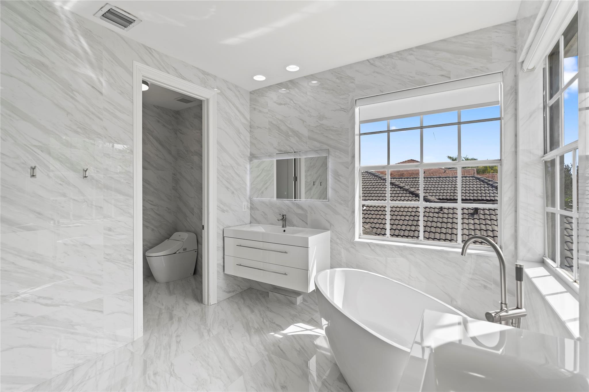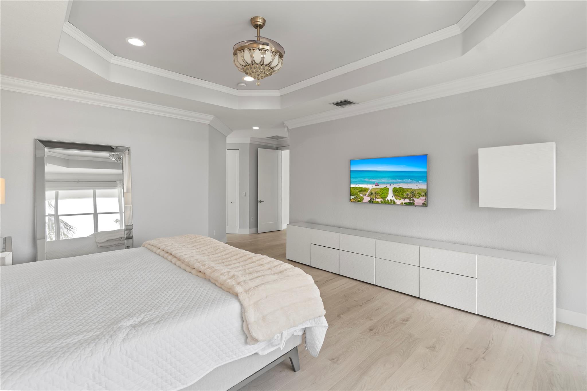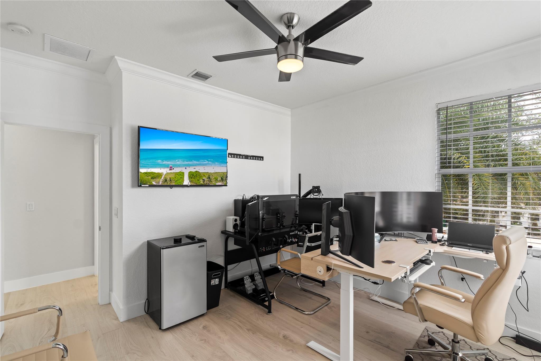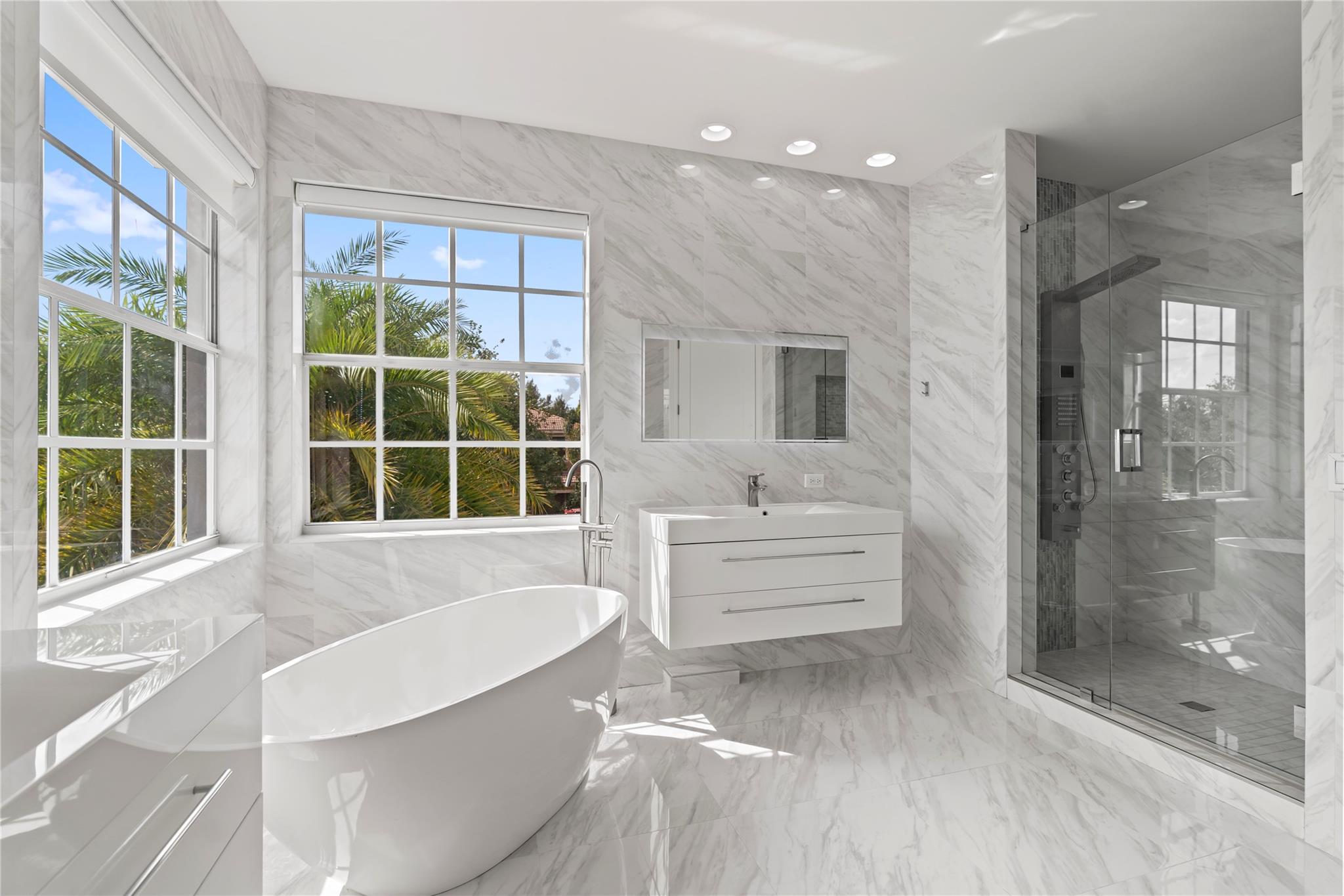Step into contemporary elegance with this beautifully remodeled modern home, featuring 5bedrooms, 3.5 bathrooms plus den, one bedroom downstairs with a private bathroom and office, sleek vinyl flooring throughout and a glass staircase, new A/C unit and modern lighting,remodeled kitchen with quartz countertops, remodeled master bath. Enjoy outdoor living with a custom pergola, full outdoor kitchen, and oversized pool with travertine decking, moving ready and perfect for entertaining.