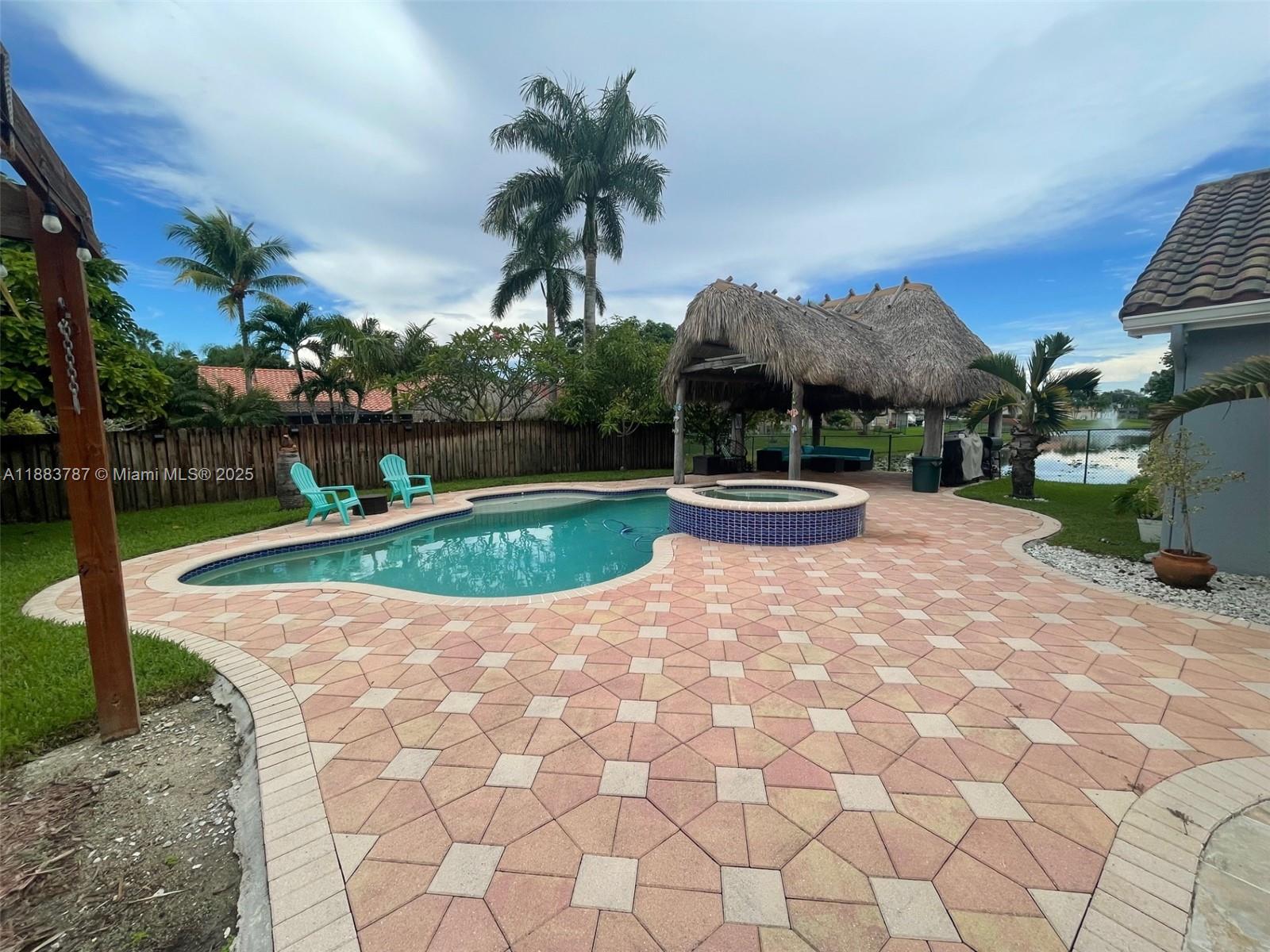 Beautifully maintained 4br/2.5 bth split floor plan on a very large and desirable corner lot. Home features huge front and back yard with a pool, tiki hut and fire pit area. Large tile through, open and remodeled kitchen with quartz counter tops, remodeled bathrooms, recently purchased appliances and washer and dryer in a separated room, vaulted ceilings and customs cabinetry. Great location to raise a family with excellent schools and easy highway access. 5 minutes away from Sawgrass Mills and plenty of restaurants in the area.