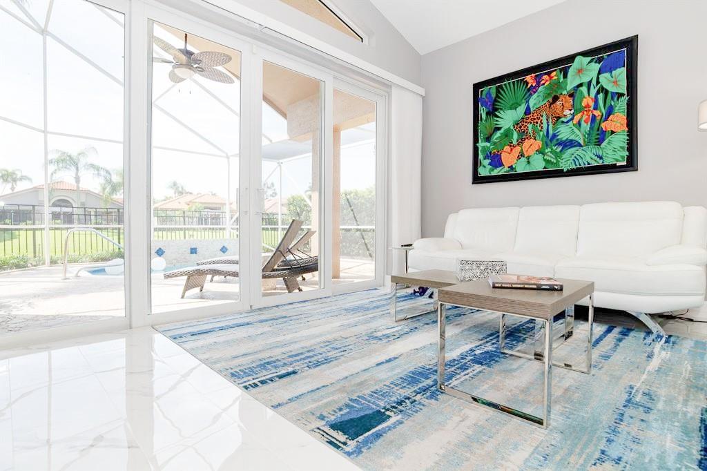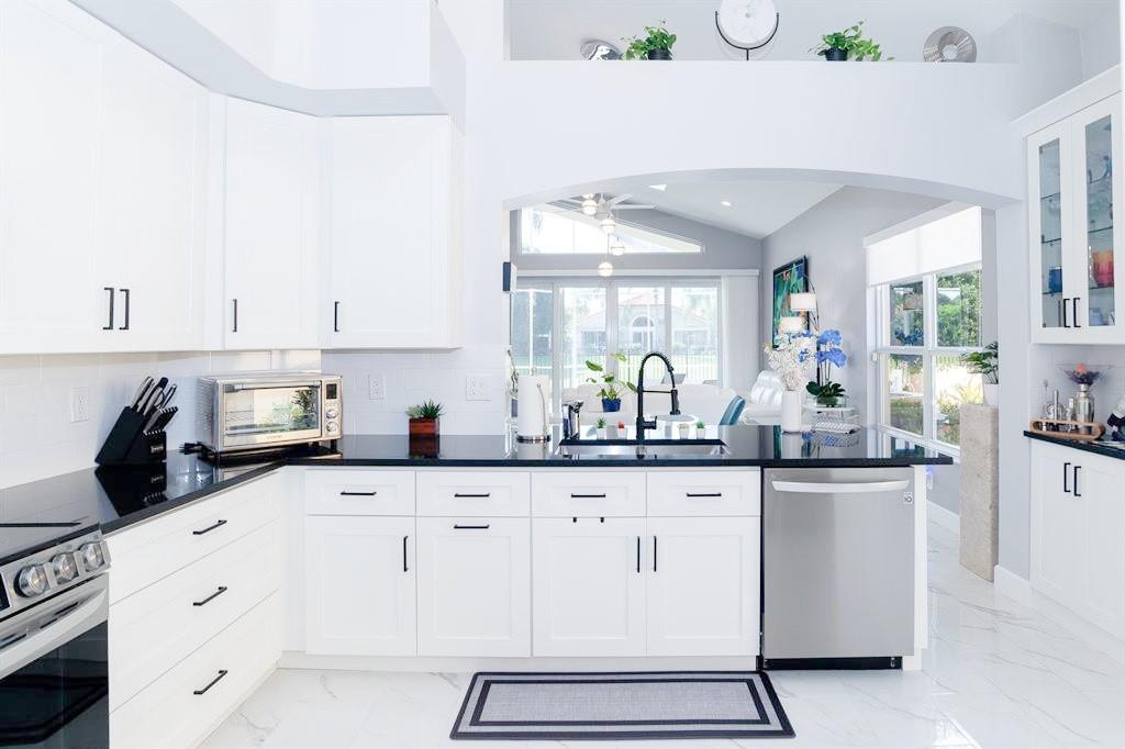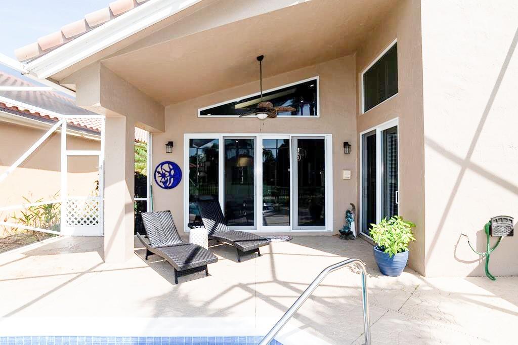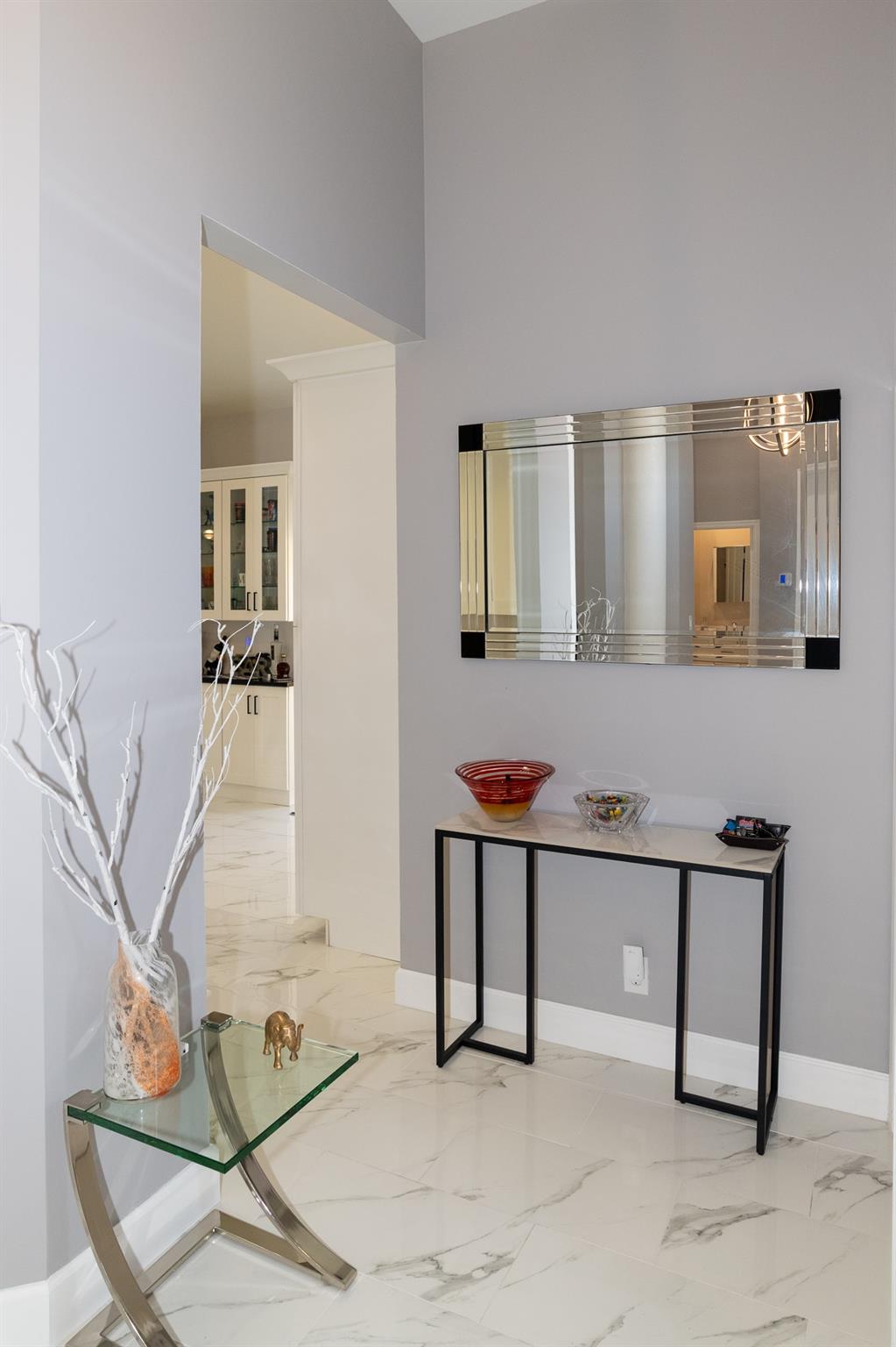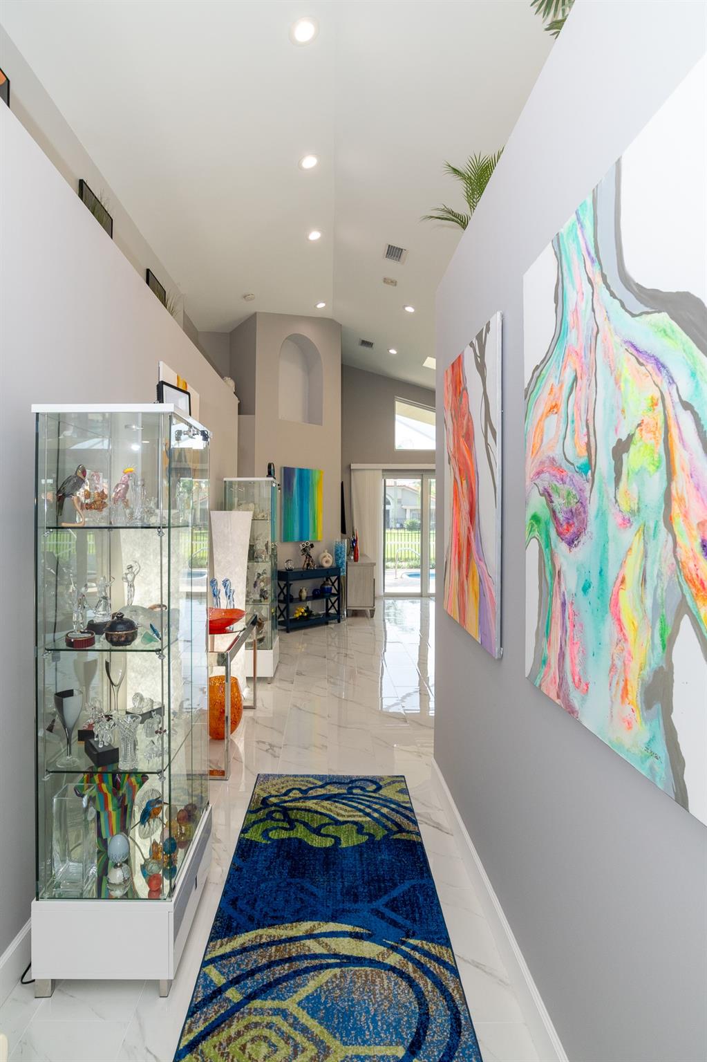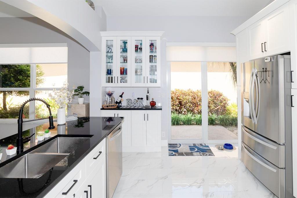 Like the crystals on a chandelier, this sparkling light bright remodeled single story home on the water shines in the daylight and glows at night. Remodeled kitchen with new cabinets, new counters, new appliances. Three new baths. Porcelain floors and impact glass throughout. Even the master closet has been redesigned, the pool has been resurfaced, and the garage has been carpeted. If you don’t know Santa Barbara, this gated community has a spectacular, expansive clubhouse with all the amenities you could desire. Across the road from Town Center mall, minutes to Whole Foods and Publix with easy access to I-95 and the Florida Turnpike. DISCLOSURE: The dog pictured in Photo #7 is not up for SALE or ADOPTION!