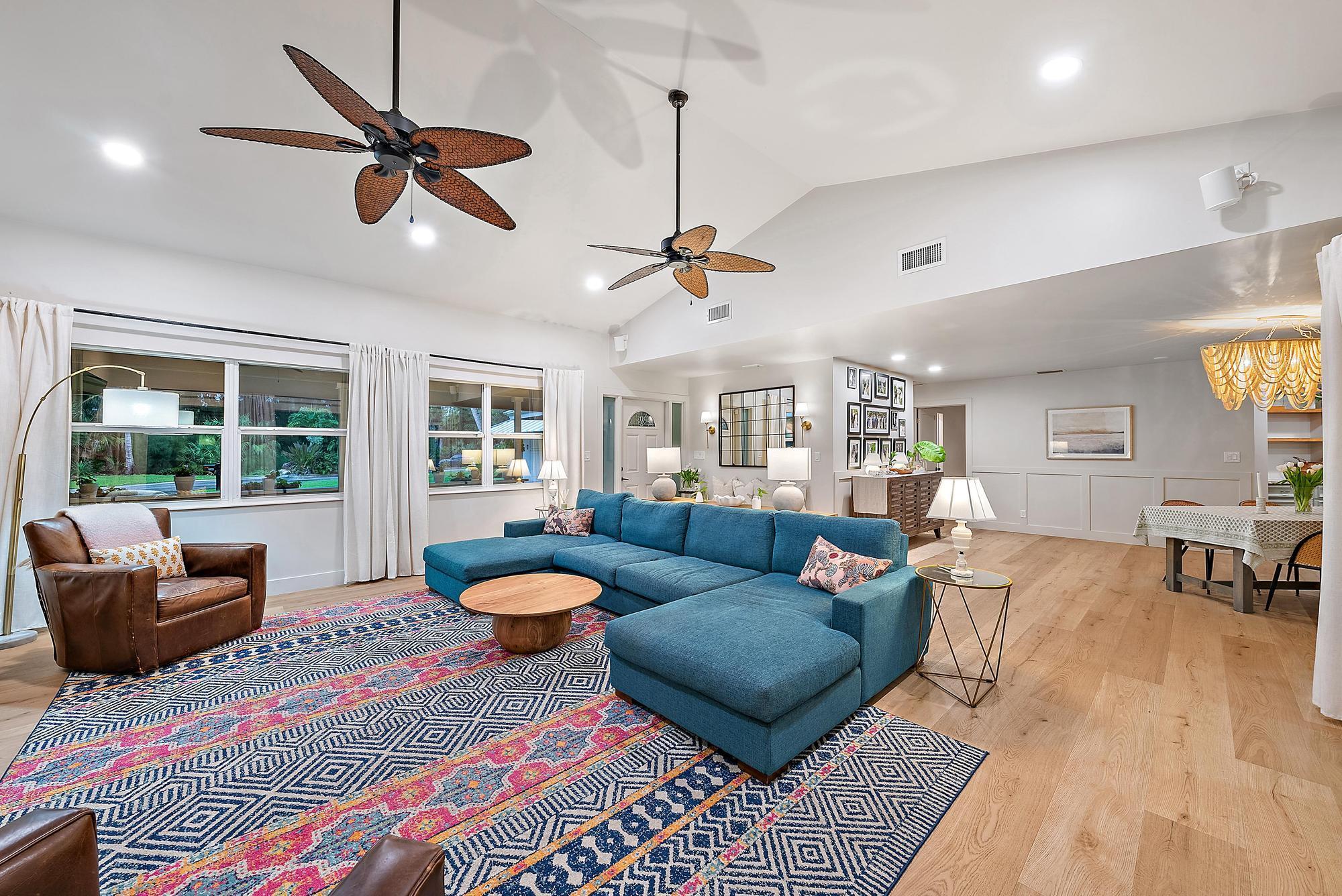 Beautifully renovated home in the heart of Jupiter, in a quiet and private neighborhood. This 3 bedroom, 3 bath home has been refinished, top to bottom, including a new roof in 2024. The open living area features vaulted ceilings and overlooks the covered patio deck and private backyard. The community consists of only 8 homes and features a community dock that is ~300 ft into the Loxahatchee River, with 2 shared boat slips to enjoy. The backyard features plenty of room, decorated with mature tropical landscaping, and features a dedicated dog run. Schedule your private showing to see all that this home has to offer.