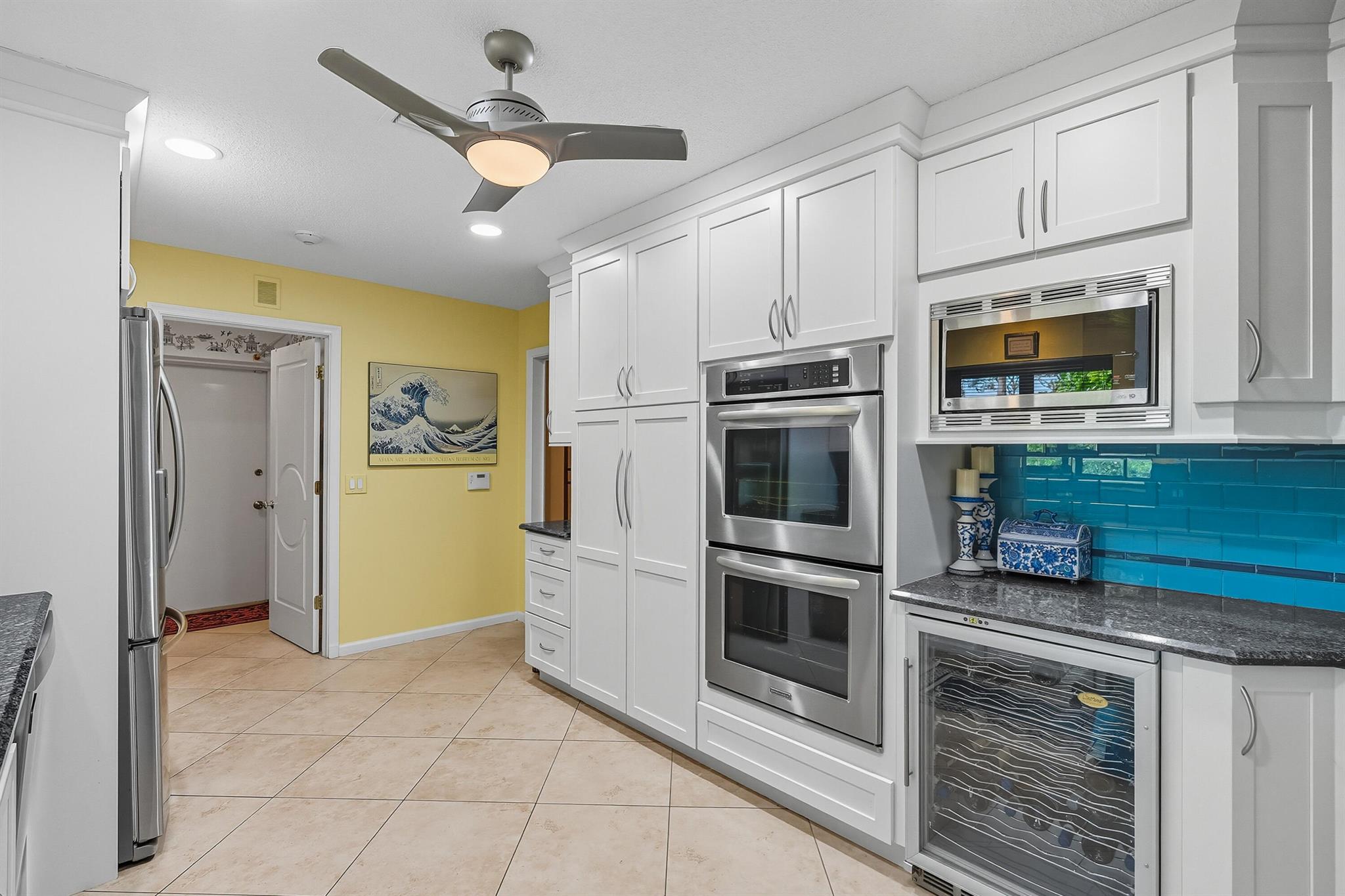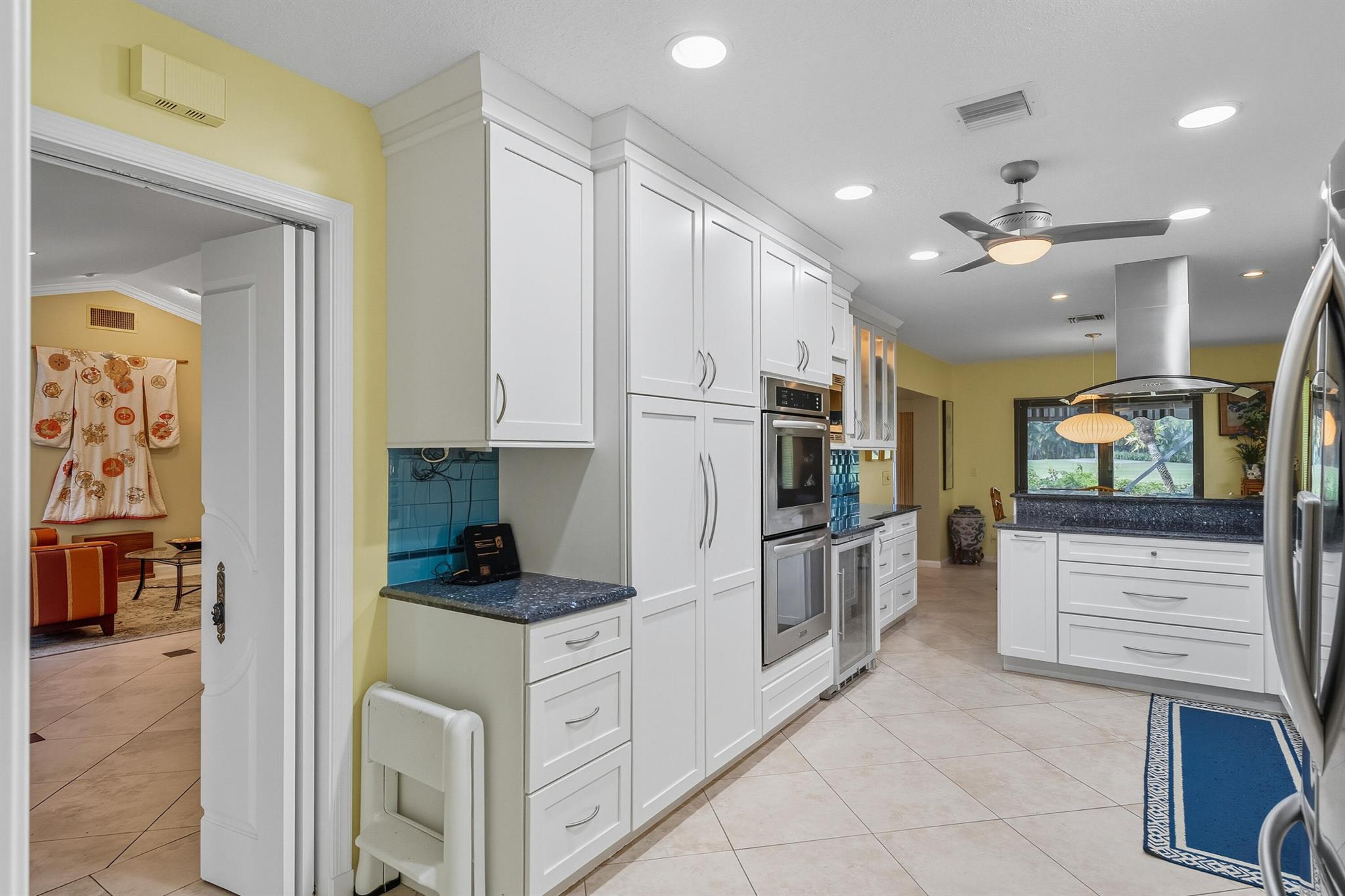 Tucked away on a private cul-de-sac, this beautiful home sits on an oversized lot and comes with impact windows for peace of mind. From every window, you can enjoy panoramic views of the golf course and the sparkling pond, creating a setting that truly feels like a retreat.Inside, soaring cathedral ceilings enhance the spacious living and dining rooms, while the bright eat-in kitchen is filled with natural light and offers plenty of space for casual dining. The home features tile flooring throughout, plantation shutters on the windows, and a screened lanai with a beautiful awning, offering the perfect spot to relax outdoors.The air-conditioned garage, provides extra comfort and includes dedicated space for a golf cart, making it ideal for the Florida lifestyle !