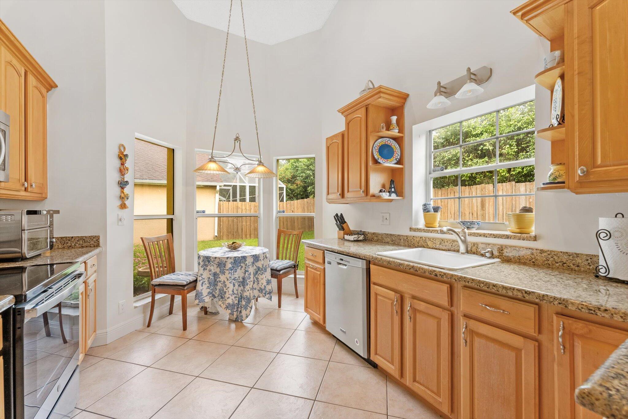 This is the one you've been waiting for! Welcome to this beautifully maintained, move-in ready 3 bed, 2 bath home in Boca Landings featuring a Brand-NEW 2025 Roof, AC-2022, & full storm shutter protection. Inside, enjoy 13 ft vaulted ceilings, tile floors in the main living areas, laminate wood in bedrooms, and two tastefully updated bathrooms. Bright & charming kitchen boasting granite counters & wood cabinets. Screened lanai/patio overlooking the fully fenced backyard which offers privacy and plenty of space to play or entertain. Spacious layout with living room, formal dining room and family room connecting the open kitchen. Formal dining room can also be used as a den, office or even converted into a 4th bedroom. Low HOA Fees cover cable package, amenities and common areas.
