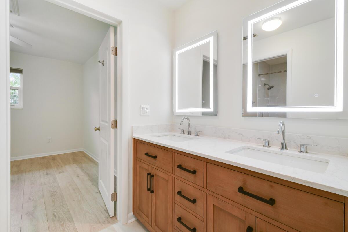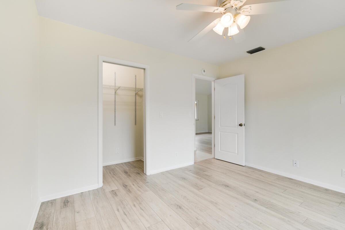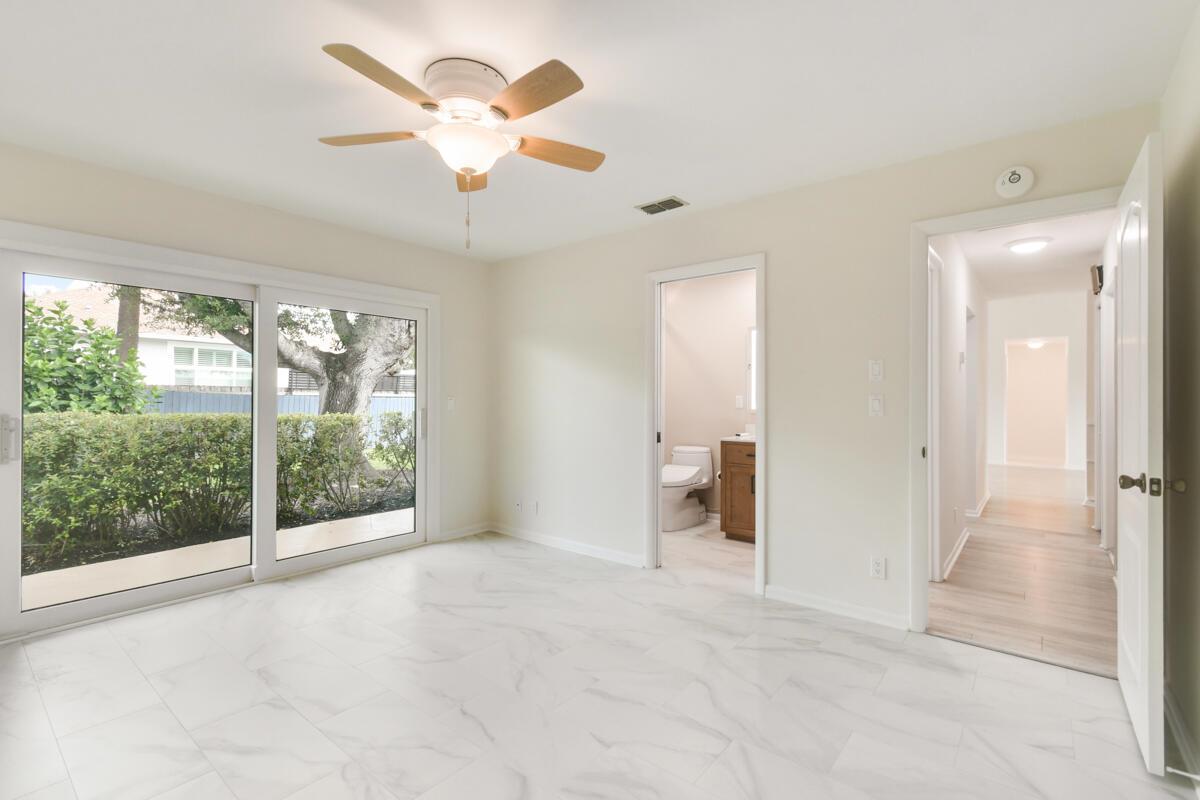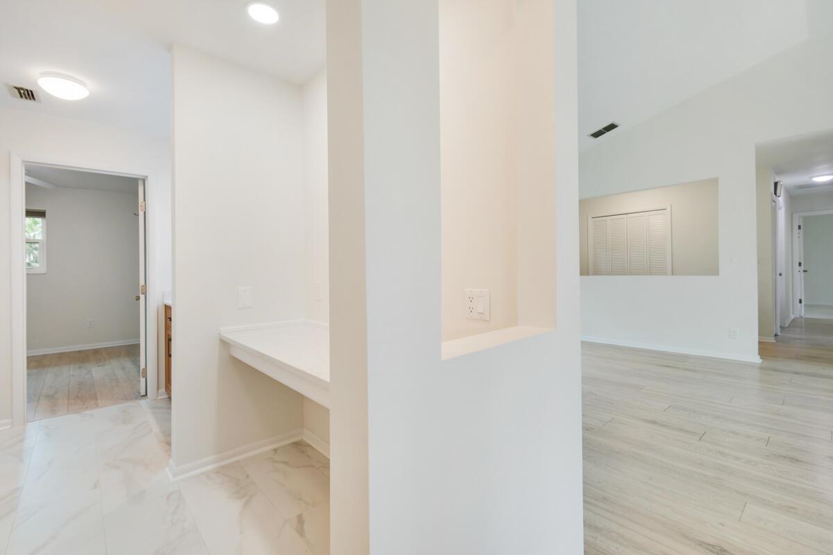 Completely Remodeled & Move-In Ready! This Light & Bright 3 bedroom, 2 bath home offers modern coastal living just 3.7 miles from Hobe Sound Beach and Downtown. Step inside through the covered entry to find an open floor plan filled with natural light, new light wood laminate flooring, and a spacious living/dining area that flows seamlessly to the outdoors. The fully remodeled kitchen boasts Quartz countertops and backsplash, Shaker-style cabinetry, stainless steel appliances, and a large island with seating perfect for entertaining. Both bathrooms have been beautifully updated with wood vanities, tile flooring, and lighted fog-free mirrors. Enjoy indoor-outdoor living with impact sliding glass doors leading to a private, fenced backyard with tropical landscaping and generous patio