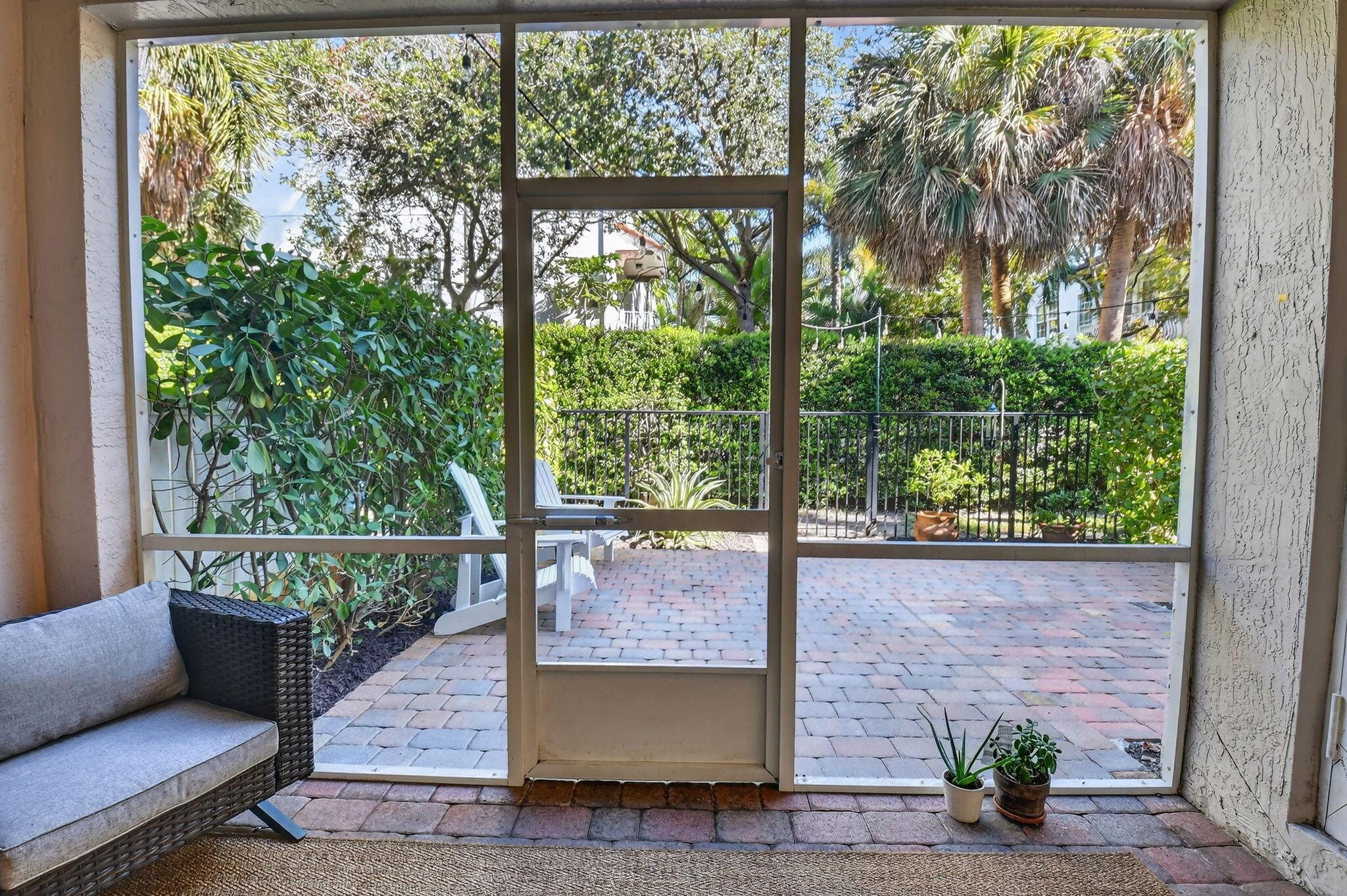 This dreamy, zen-like home offers an unparalled lifestyle, located just steps from the picturesque Intracoastal Waterway with PRIVATE BEACH access & resort style pool! Outstanding features include gleaming white lacquered kitchen cabinets with custom refrigerator panel that blends seamlessly, french doors,a screened lanai to enjoy coastal breezes, plus NEW ROOF & impact glass to provide security in a storm. Relax in the cozy den or use as an office. Enjoy your morning coffee on the private, lush fenced patio. The breathtaking Primary bedroom boasts a soaring ceiling, sitting area, closet the size of a small bedroom, & a bathroom with ''his and hers'' vanities, deep whirlpool tub & separate shower. All this is conveniently located near the shops, restaurants & cultural activities of