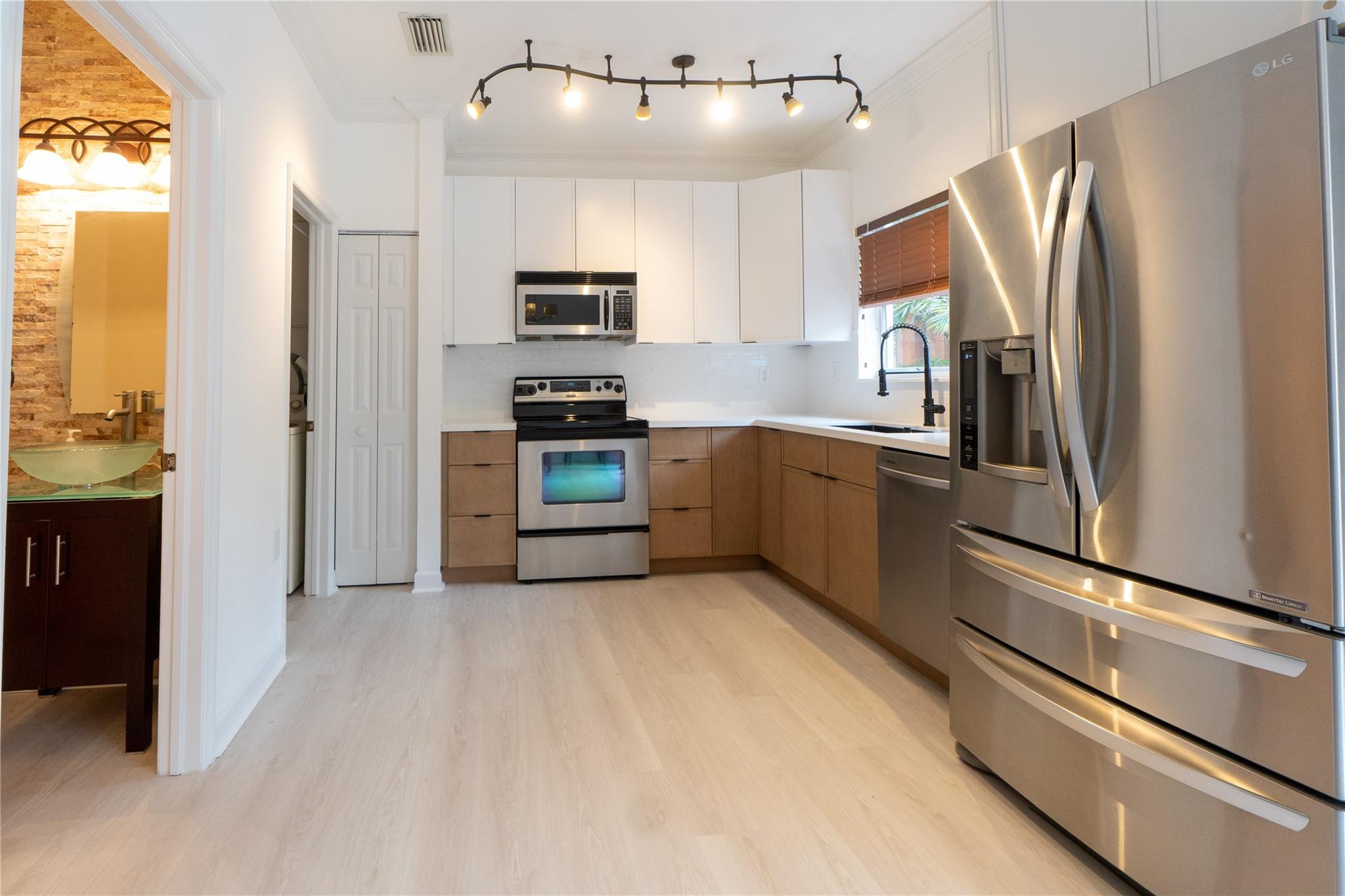 Newly renovated and modernized 3/2.5 with open first floor and fenced backyard in Santorini at Vizcaya’s guard-gated enclave. Built in 2005, the redesigned main level connects kitchen/dining/living to private outdoor space; kitchen features newer stainless appliances. Additional highlights include a 1-car garage with guest parking, panel hurricane shutters, and a spa-like primary bath. Community amenities include a pool, fitness center, and clubhouse. HOA covers 24/7 guarded entry, lawn maintenance, and cable. Minutes to shopping, dining, major highways, and Vizcaya Park.