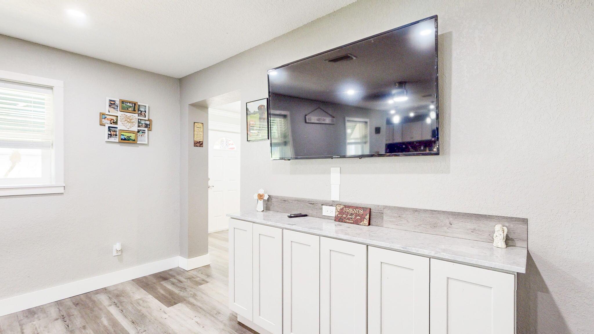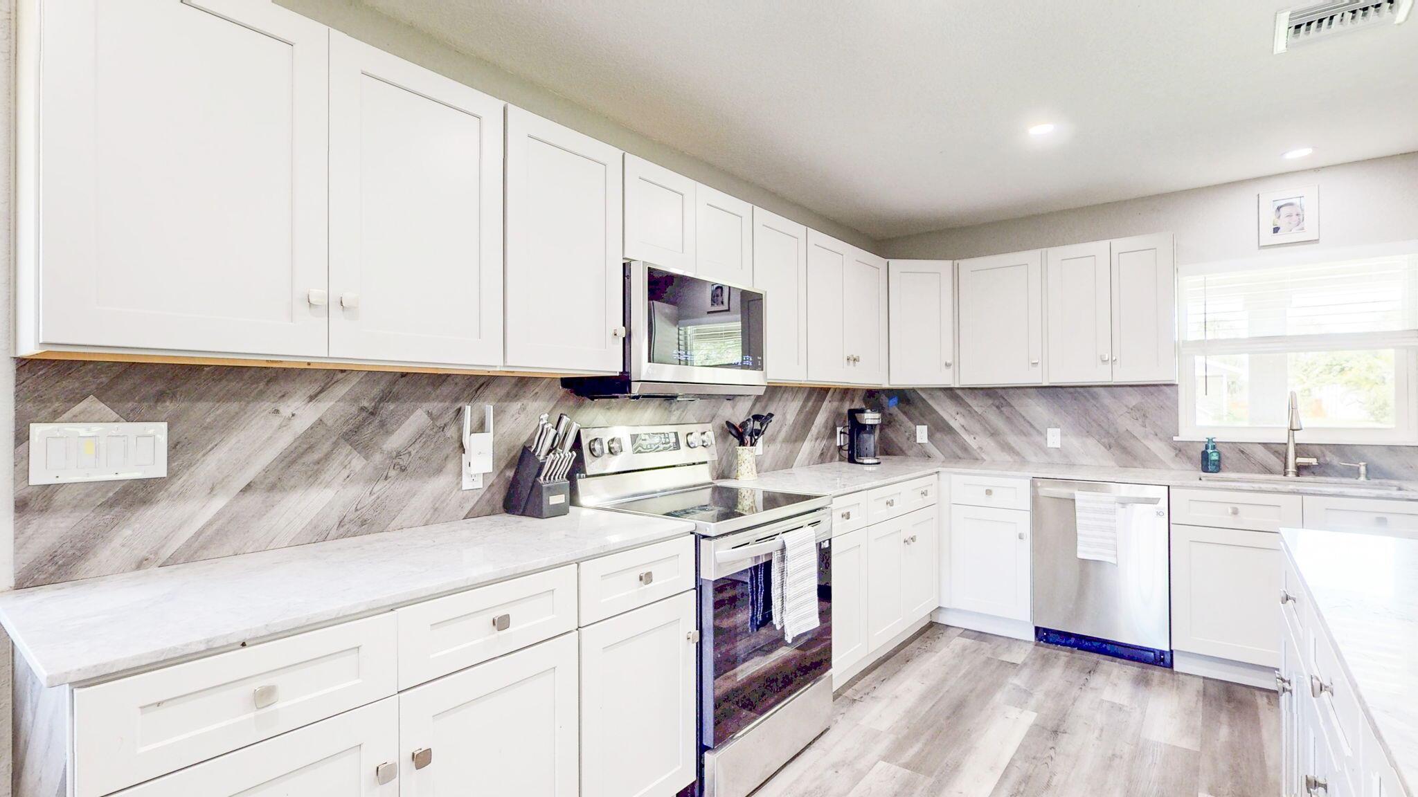 Price Drop! Welcome to this beautifully remodeled 4-bedroom, 3-bathroom home. Designed for both comfort and functionality, the property offers a spacious layout and a wide range of modern enhancements. Inside, you'll find luxury vinyl flooring throughout, two new air conditioning systems and two new hot water heaters, The guest bathroom features a jacuzzi tub, and impact windows and doors provide energy efficiency and storm protection. The home is also equipped with a setup for a whole-house generator. The kitchen, baths, and living spaces have all been completely remodeled, creating a fresh and move-in ready environment. Outdoor living is maximized with a wrap-around porch finished with Trex decking, a fire pit in the front yard, a carport, and a detached garage. The expansive
