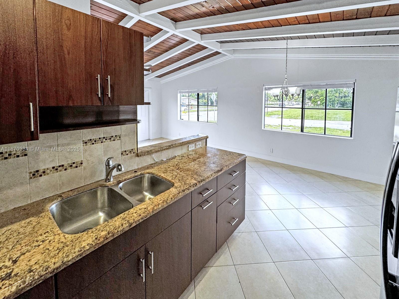 Step into this bright and welcoming 3 bedroom, 2 bath home with mid-century modern updates throughout set on a premium 7,737 sq ft lot. Home features include vaulted ceilings with exposed beams, rich wood paneling and windows that fill the space with natural light. The kitchen offers modern wood look cabinetry, granite countertops, and plenty of storage. Both bathrooms have been tastefully updated. Recent improvements include a newer A/C unit and water heater. Spectacular fully fenced backyard with a covered patio ideal for outdoor living. No HOA. Conveniently located near shopping, downtown Fort Lauderdale, and the beaches.