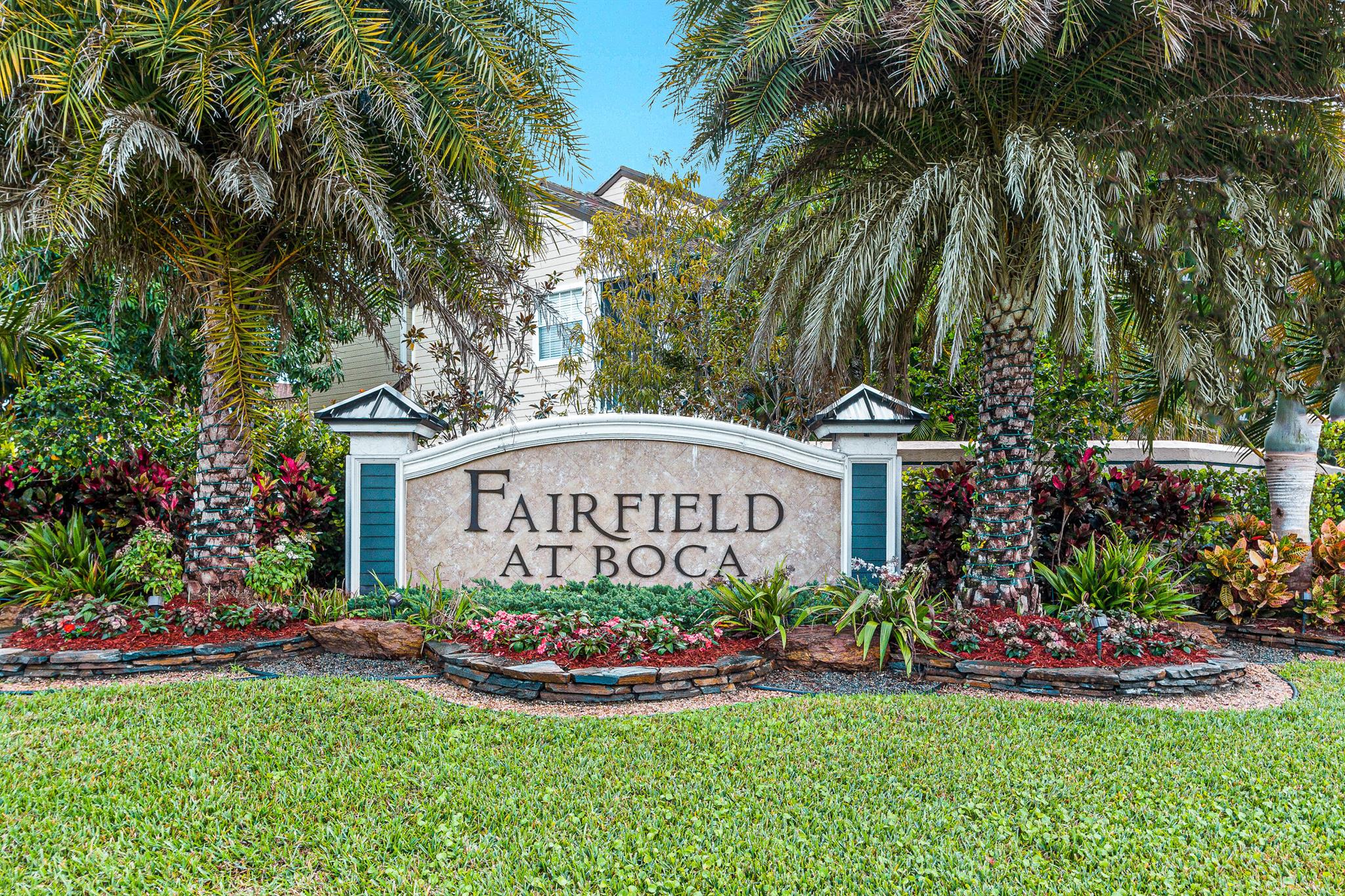 Welcome to this well designed, well maintained townhouse. A corner unit with 3 bedrooms, 2 and a half baths and a screened in patio ideally situated in the desirable Fairfield Community in Boca Raton. Excellent schools, 24 hour manned security gate, 2 pools, basketball and tennis courts, playground and lake walking path.