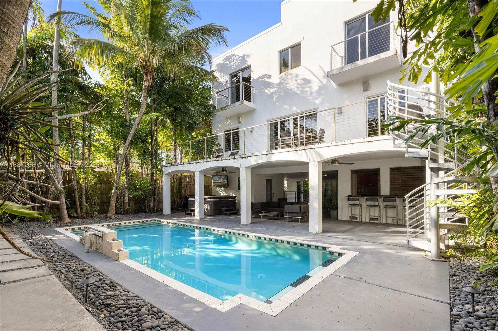 Welcome to your private sanctuary in the heart of Coconut Grove—where modern luxury meets tropical serenity. Enter through custom stainless steel gates into this spacious 4/3.5 home that seamlessly blends indoor elegance with outdoor allure. Soaring 10ft ceilings and grand 8ft doors create an airy, open feel, complemented by exquisite Brazilian hardwood and sleek porcelain tile flooring. Impact windows and expansive sliding doors flood the home with natural light and invite you out to a lush terrace, complete with a pool, outdoor bar, and private shower—perfect for entertaining or unwinding. Just minutes from downtown, Midtown, Wynwood, and the airport, best restaurants, shops, and parks Miami has to offer. This is more than a home—it’s a lifestyle