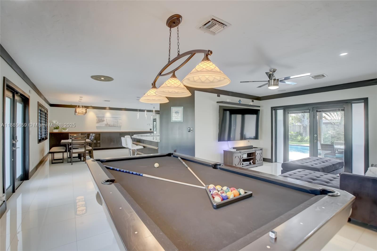 Step into elevated coastal living in Coral Ridge Country Club Estates with this 3-bedroom plus enclosed den (currently styled as a guest suite), 3-bath residence and air-conditioned 2-car garage. An open layout flows into a chef’s kitchen with double ovens, granite counters, wine cooler, and a cooking island with a pass-through bar to the covered veranda, designed for seamless indoor outdoor entertaining. Two private primary suites offer custom walk-in closets and French doors opening to the pool. Nearly every room overlooks the outdoor oasis featuring a cabana, hammock lounge, and spacious fenced yard. Located one block from the golf course and minutes to the beach, premier dining, and top private schools. Arrive by golf cart and live the Fort Lauderdale lifestyle.