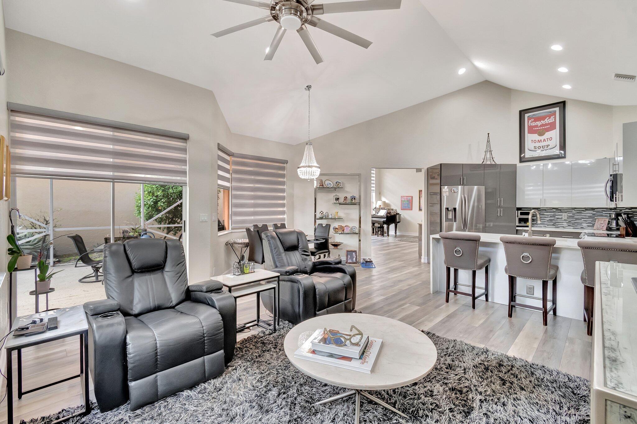 Come see this spacious and updated single family home in the well sought after subdivision of The Glades. This home brings tons of natural lighting, Vaulted ceilings, split bedroom plan and great entertaining spaces. The kitchen appliances 2022, A/C & water Heater (both mid 2021), garage door opener 2024 and many other upgrades. Main Bedroom has 3 walk-in closets all with built-ins, den/3rd bedroom has built in desk and closet, kitchen has a modern look, main bathroom has a walk-in shower, dual sinks and vanity area. This home comes with tons of storage space and built-in cabinets in the garage! Walking distance to the community pool & clubhouse. Membership in INDIAN SPRINGS COUNTRY CLUB is available, but NOT mandatory. Property is close to house of worship